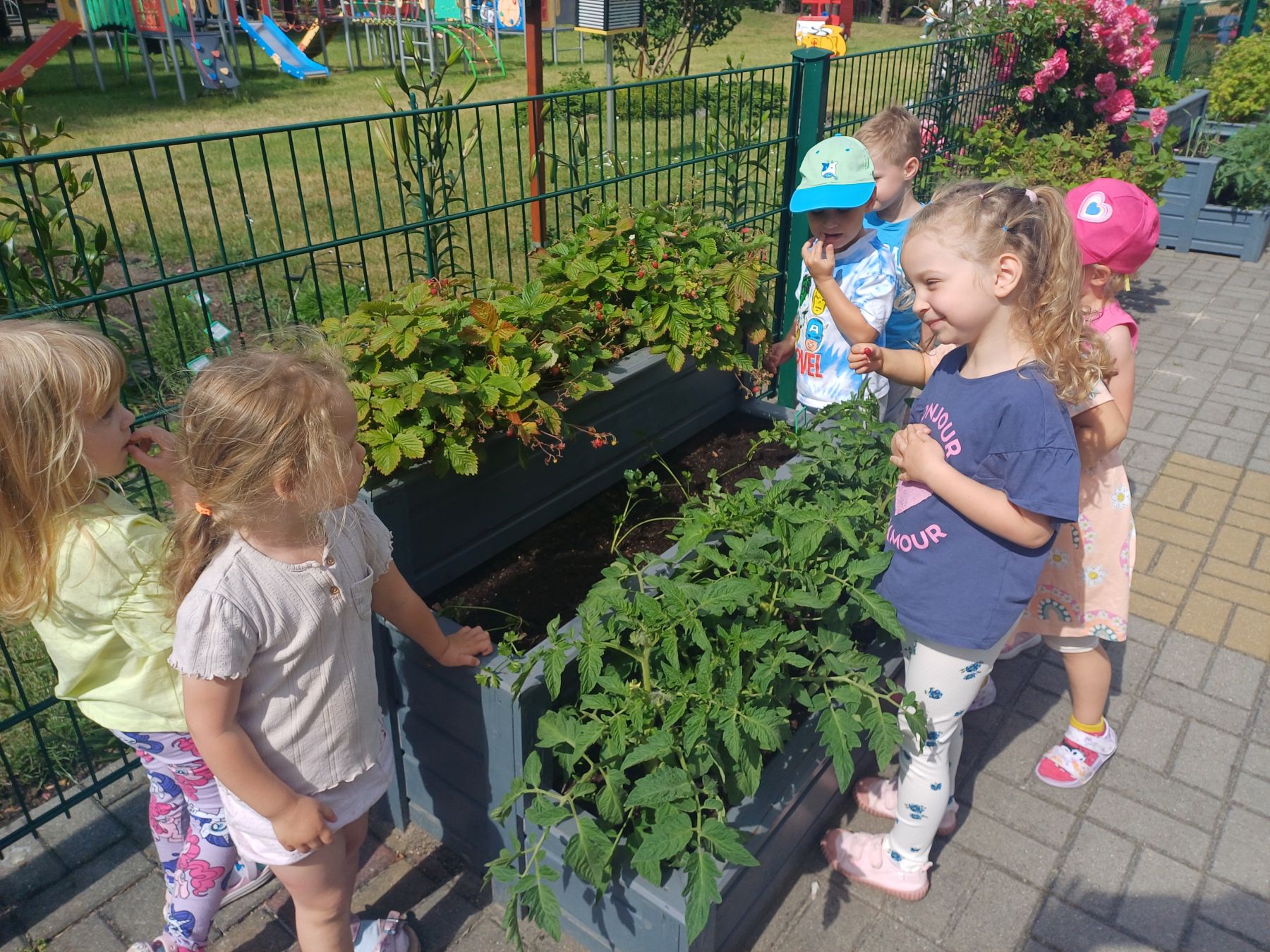 KĄCIK WARZYWNY: w którym dzieci sadzą i sieją, a następnie pielęgnują różne warzywa min. sałaty, rzodkiewki, selery, ogórki, papryki itp. oraz obserwują ich kolejne etapy rozwoju i zbierają plony swojej pracy. Dzieci nauczyły się jeść plony swojej pracy i robią to nie tylko z dumą ale i z dużym smakiem.