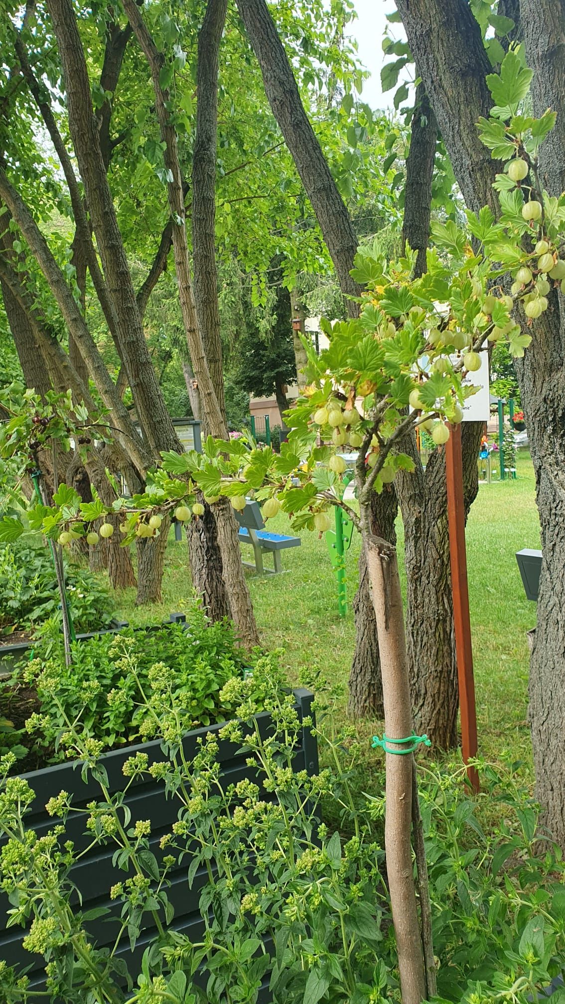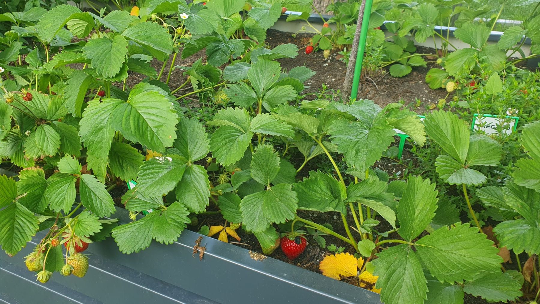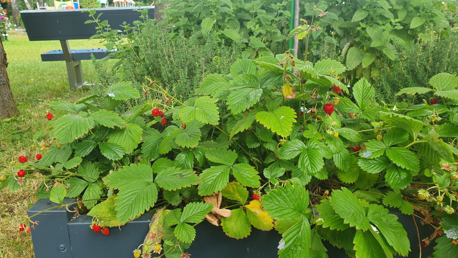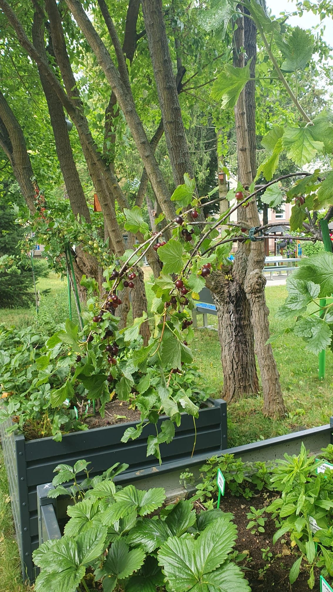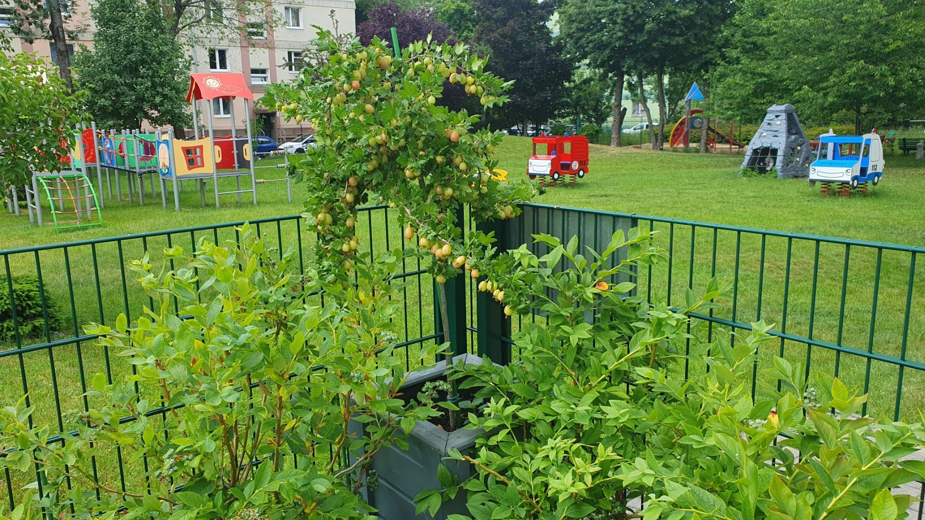 KĄCIK OWOCOWY: w którym dzieci mogą obserwować posadzone przez siebie min. truskawki, poziomki, maliny, borówki, porzeczki, agrest itp. oraz systematycznie je pielęgnować i kosztować ze smakiem owoce swojej wytężonej pracy.