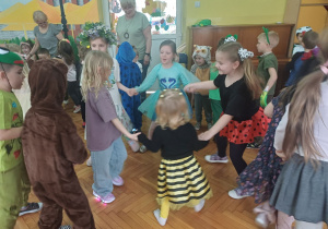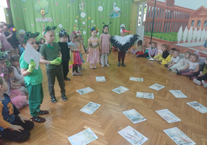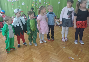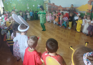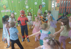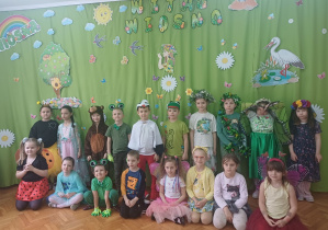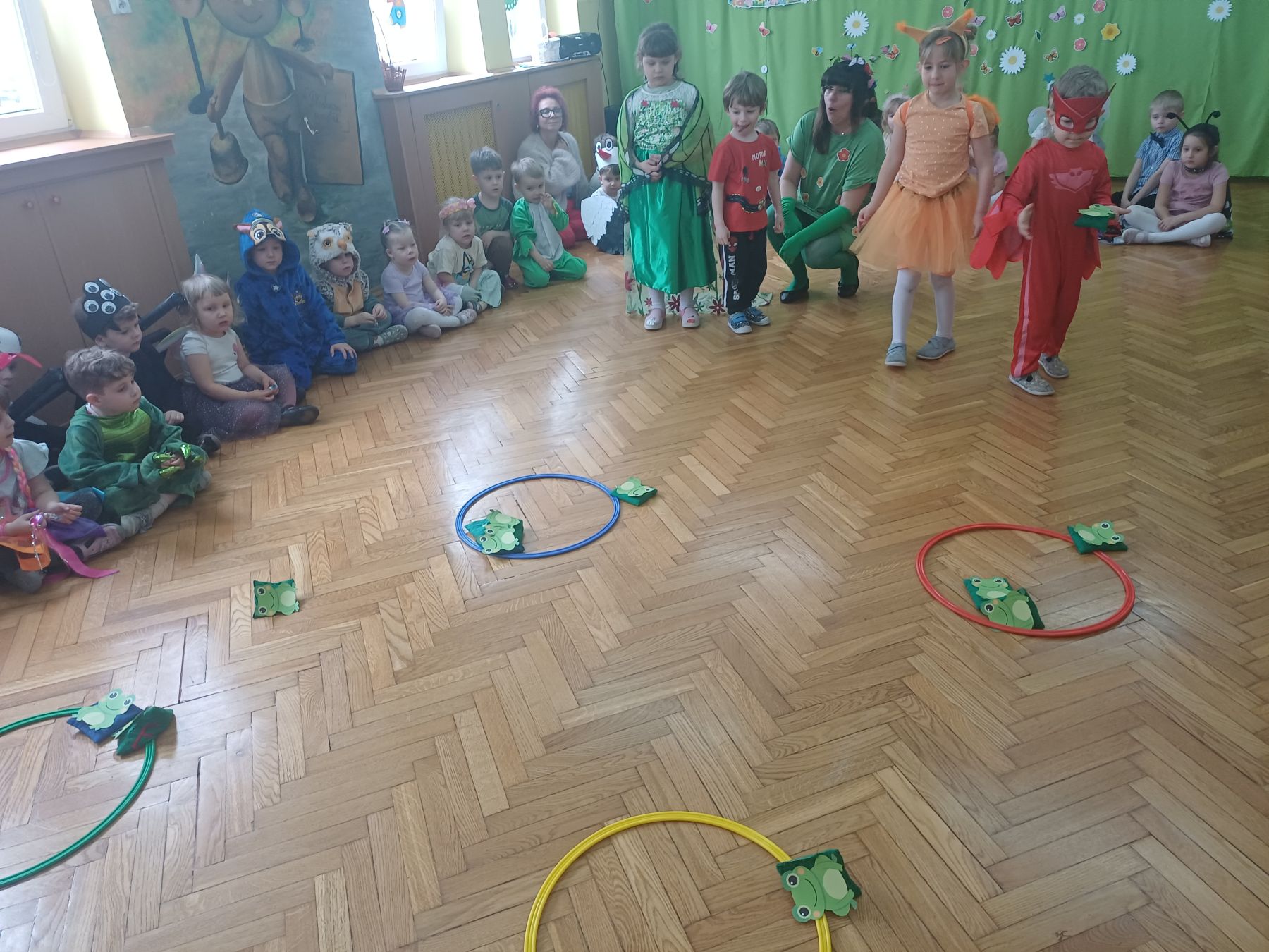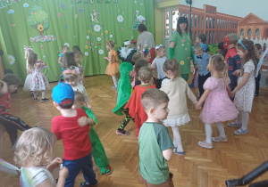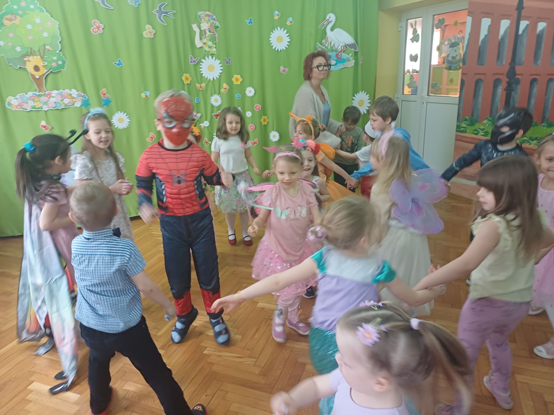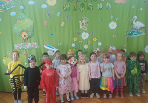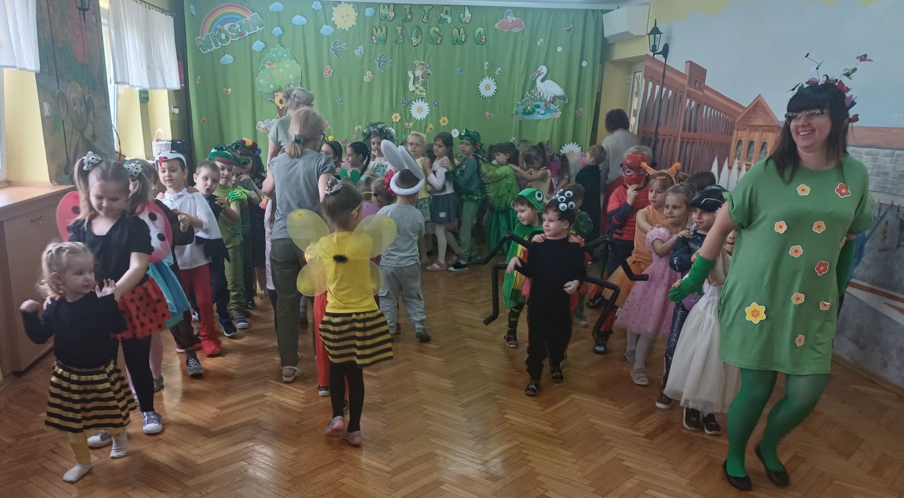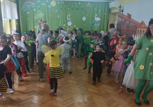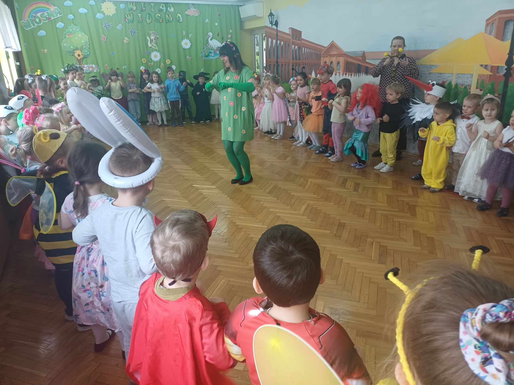 W tym dniu dzieci przybyły do przedszkola przebrane w stroje związane z ta piękną porą roku. Wśród nich można było spotkać Panią Wiosnę, żabki, bociany, motylki, biedronki, pszczółki i kolorowe kwiaty. Sala była barwnie przystrojona. Odbywały się różne wiosenne tańce, zabawy, konkurencje, konkursy, które przysparzały dzieciom wielu wrażeń i zadowolenia. W tym dniu wszędzie królowała Pani Wiosna, a na dziecięcych twarzach gościły przepiękne uśmiechy.