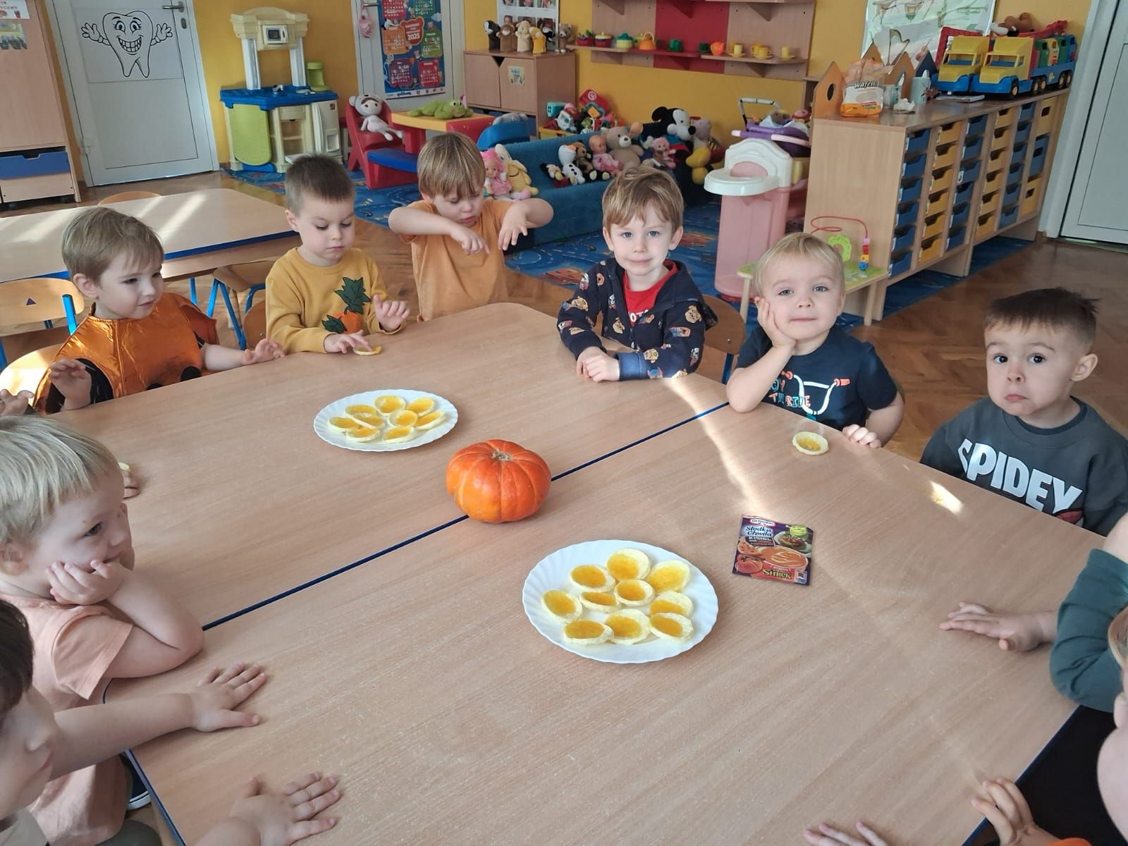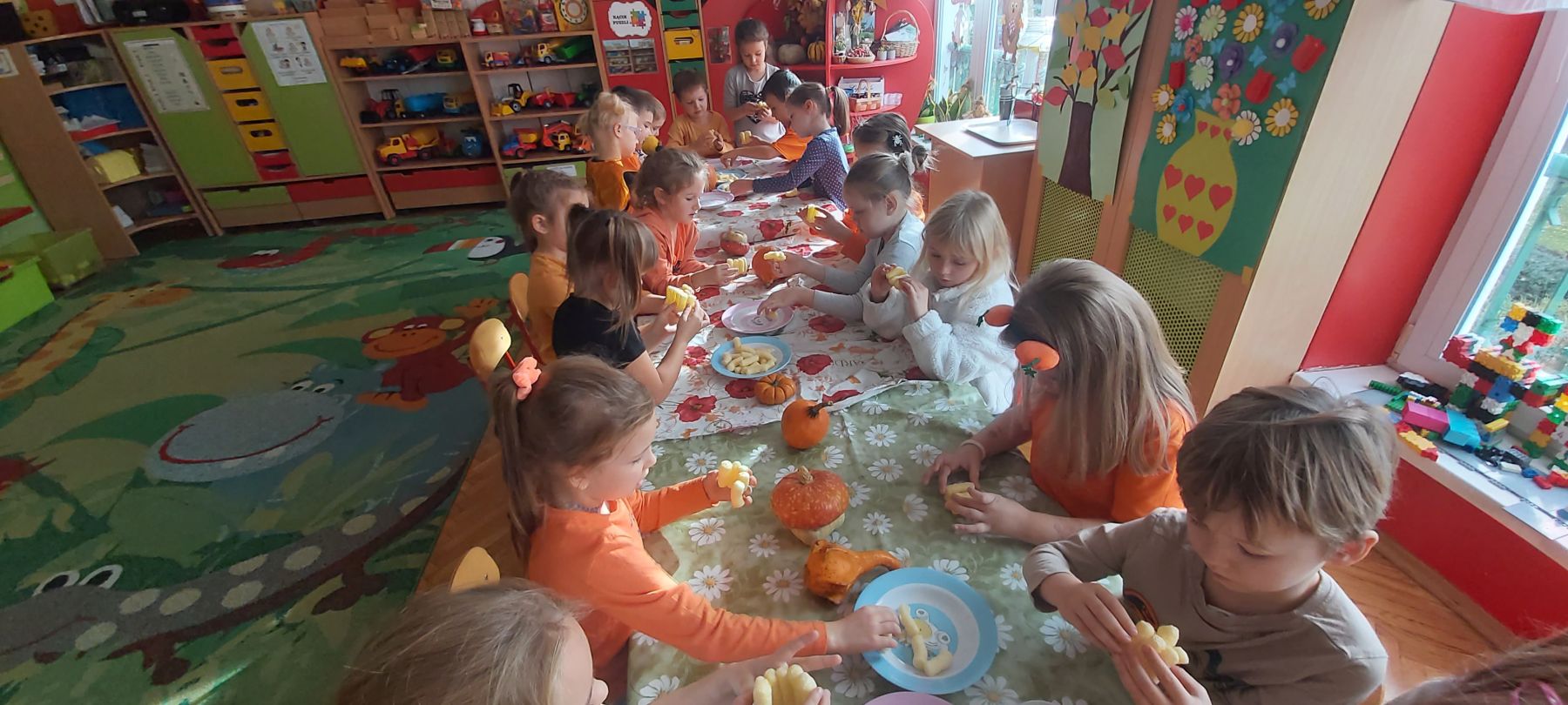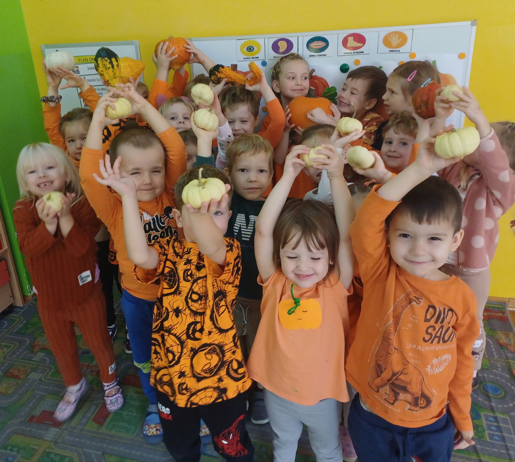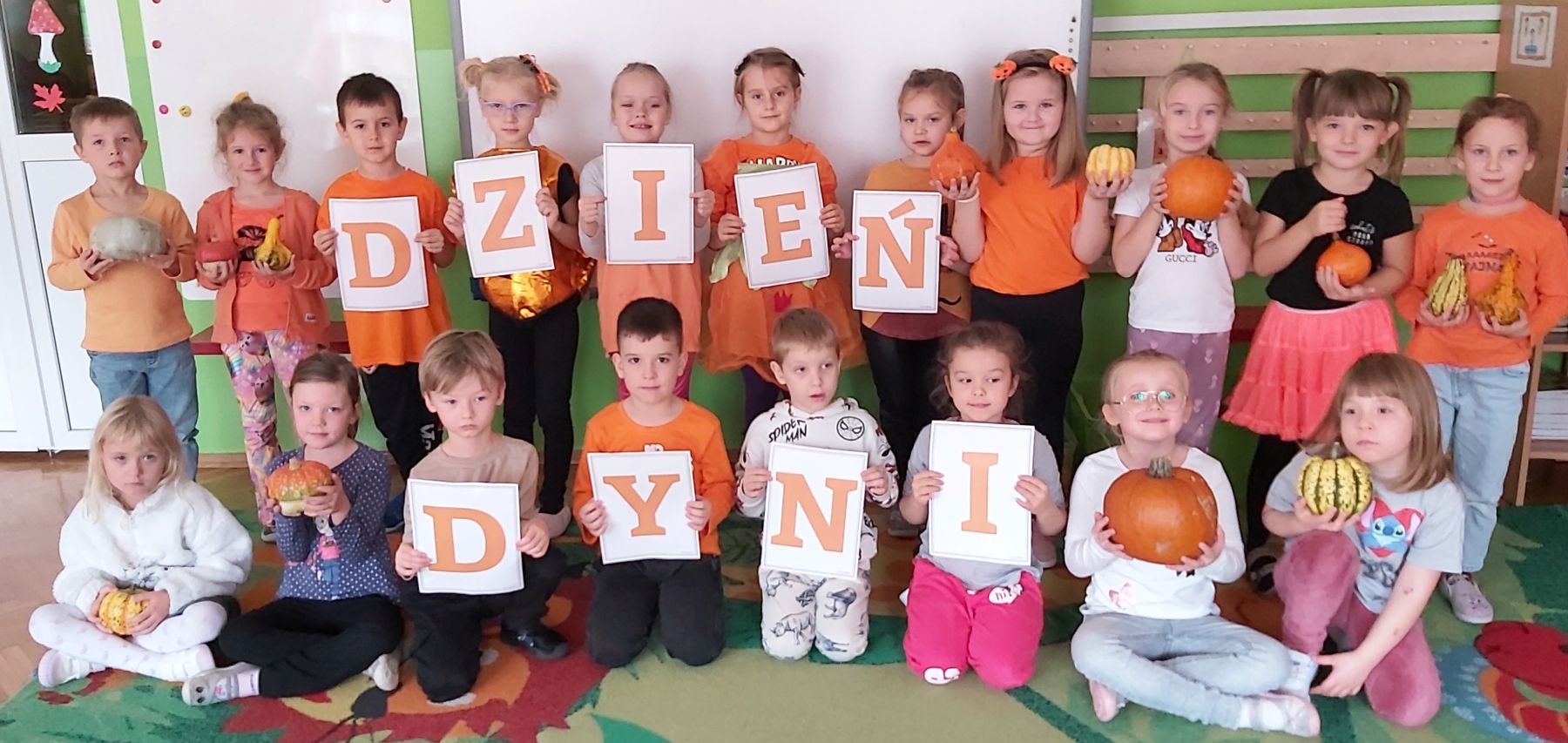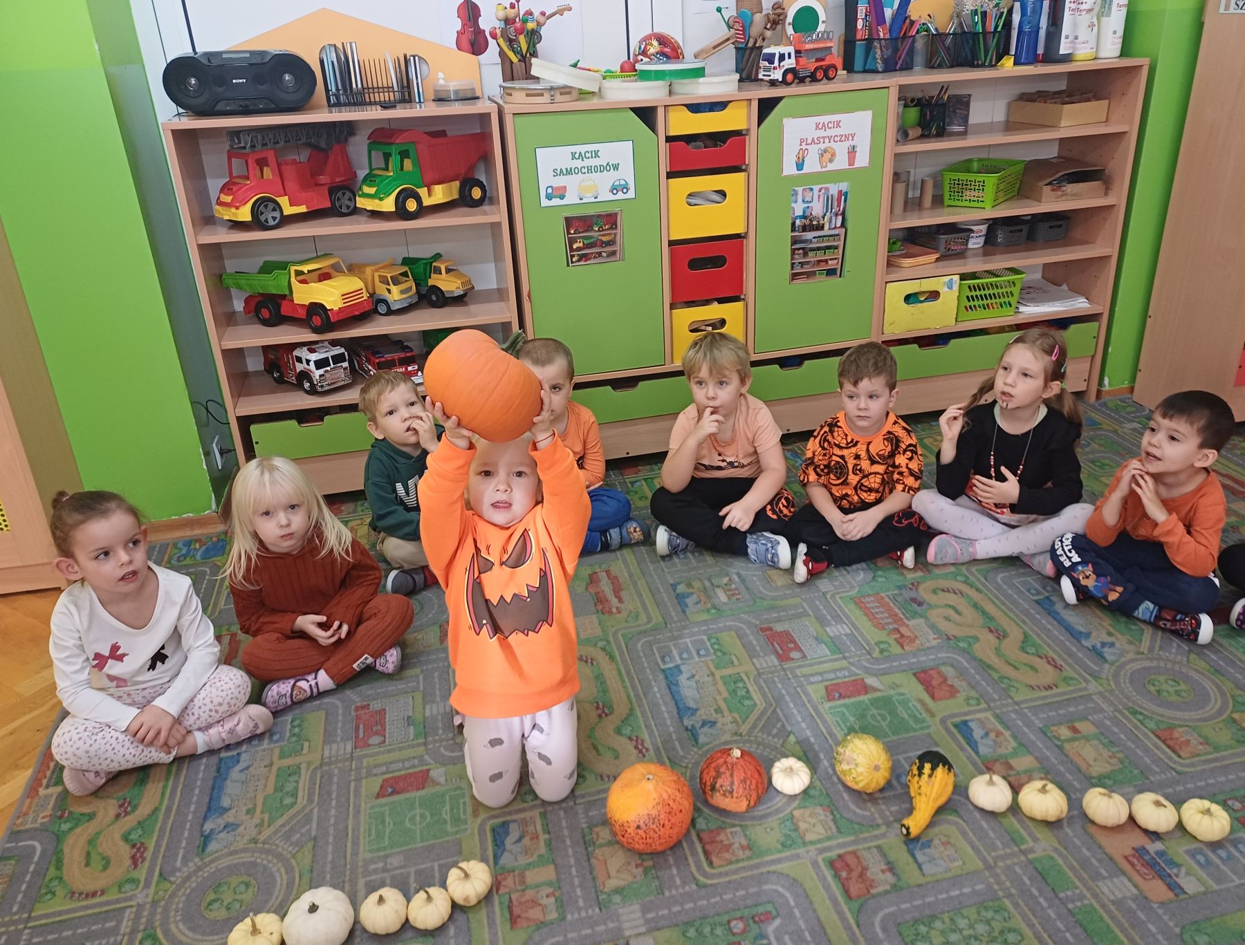 Dnia 30 października 2025 r. obchodziliśmy w naszym przedszkolu Dzień Dyni! Dzień ten upłynął nam w ciepłej, jesiennej atmosferze pełnej dyniowych uśmiechów i pomarańczowych barw! Podczas zajęć dzieci poznały ciekawostki o dyniach, wykonywały różnorodne zadania oraz tworzyły fantastyczne prace plastyczne inspirowane tym jesiennym warzywem. nie zabrakło również przepysznego ciasta dyniowego. To był dzień pełen radości, kreatywności i wspaniałej wspólnej zabawy!