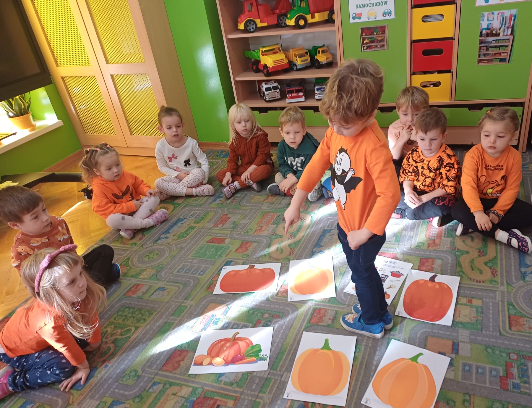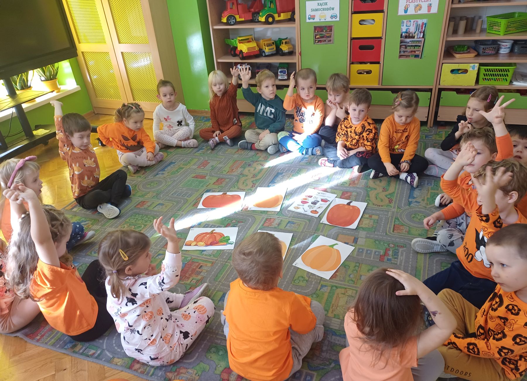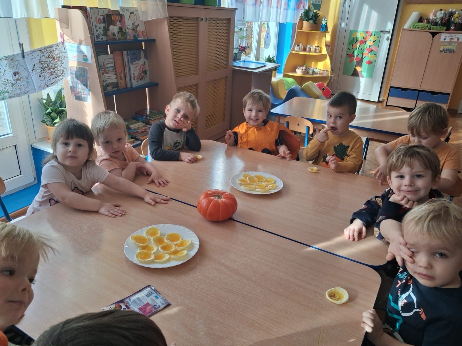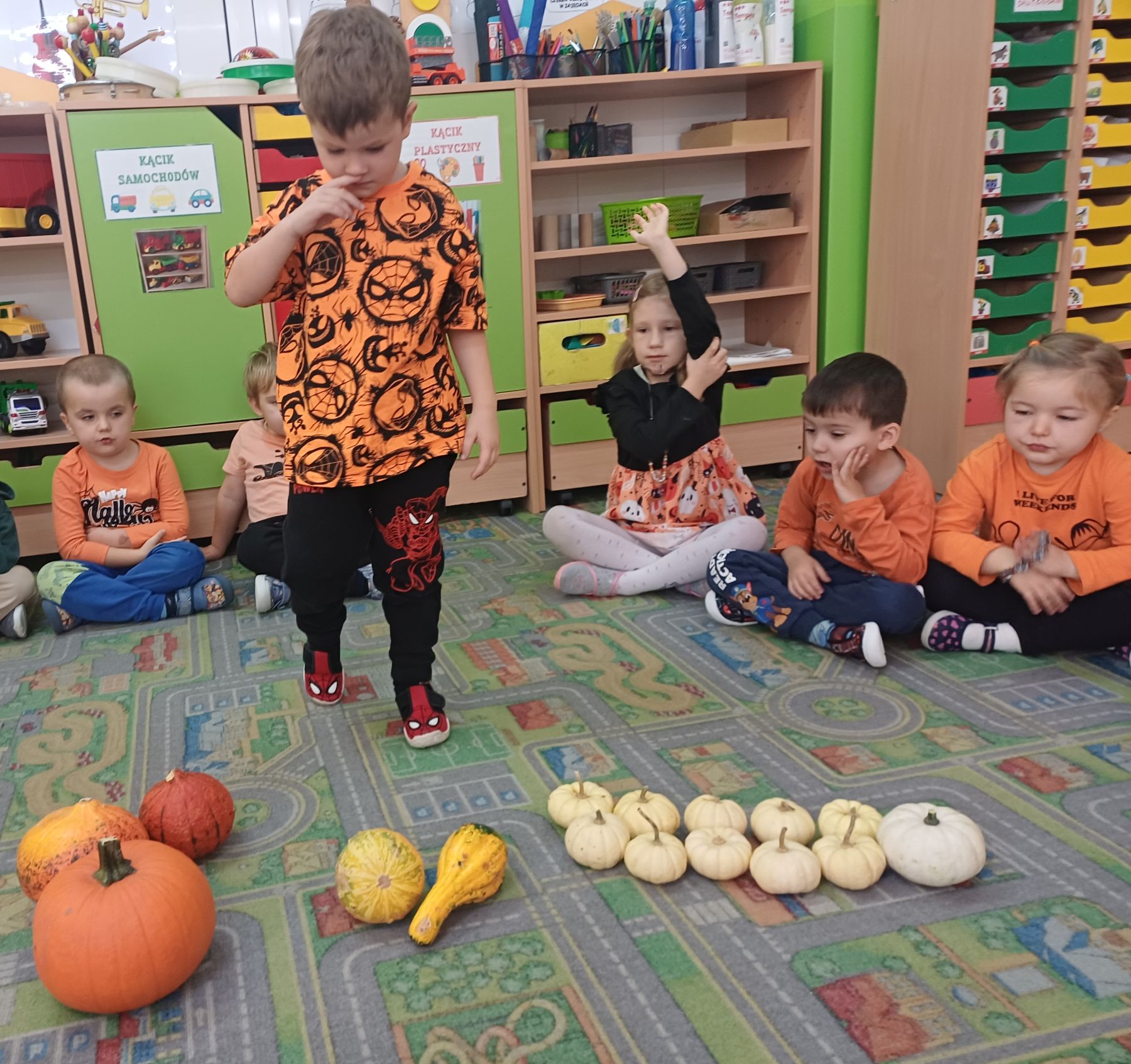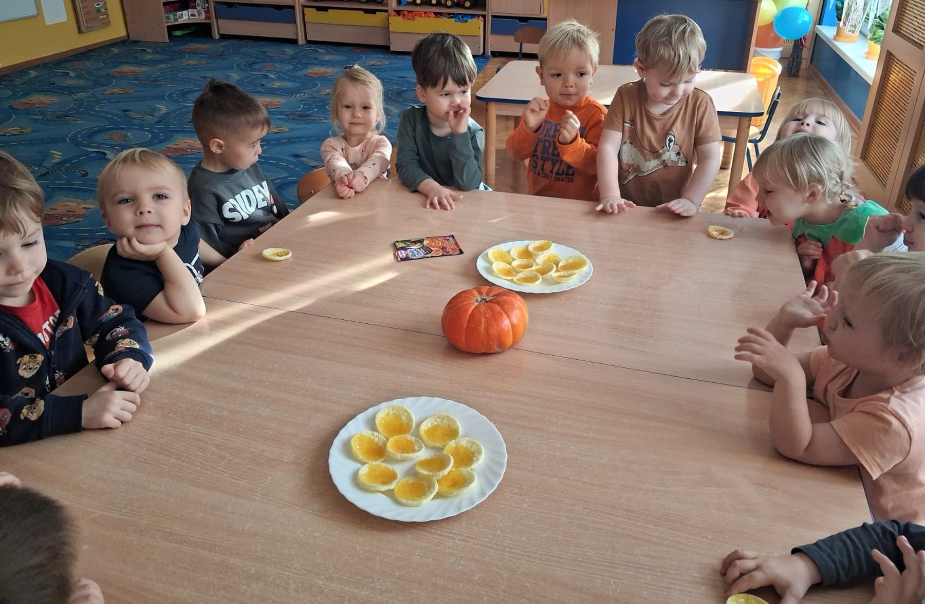 Dnia 30 października 2025 r. obchodziliśmy w naszym przedszkolu Dzień Dyni! Dzień ten upłynął nam w ciepłej, jesiennej atmosferze pełnej dyniowych uśmiechów i pomarańczowych barw! Podczas zajęć dzieci poznały ciekawostki o dyniach, wykonywały różnorodne zadania oraz tworzyły fantastyczne prace plastyczne inspirowane tym jesiennym warzywem. nie zabrakło również przepysznego ciasta dyniowego. To był dzień pełen radości, kreatywności i wspaniałej wspólnej zabawy!
