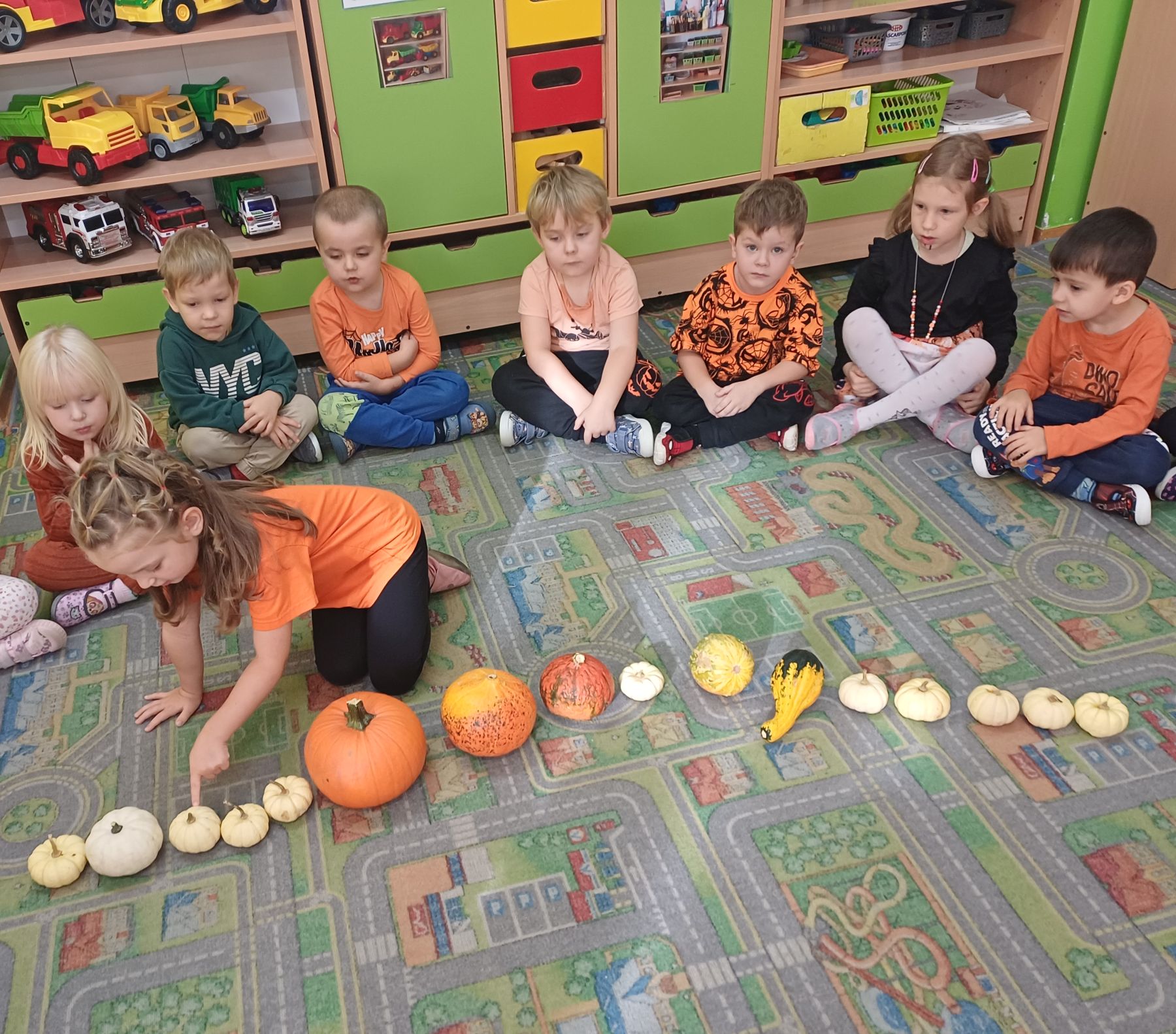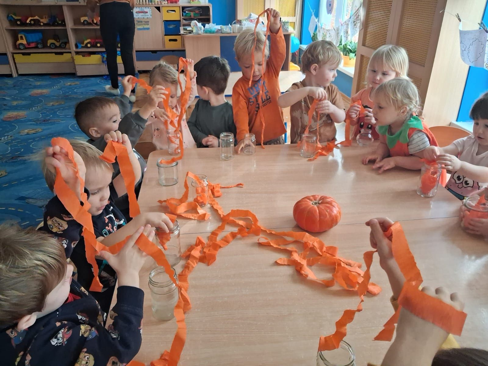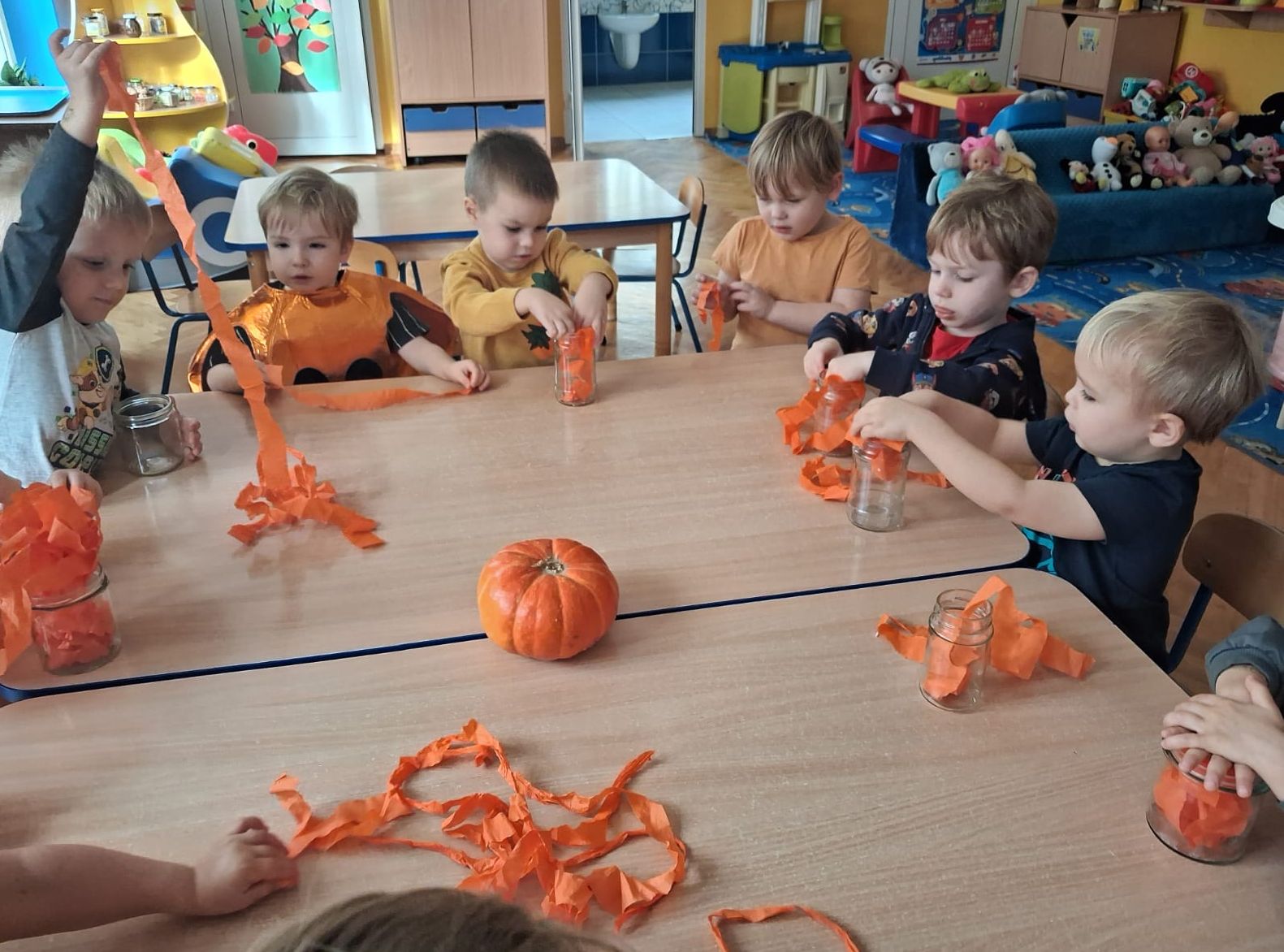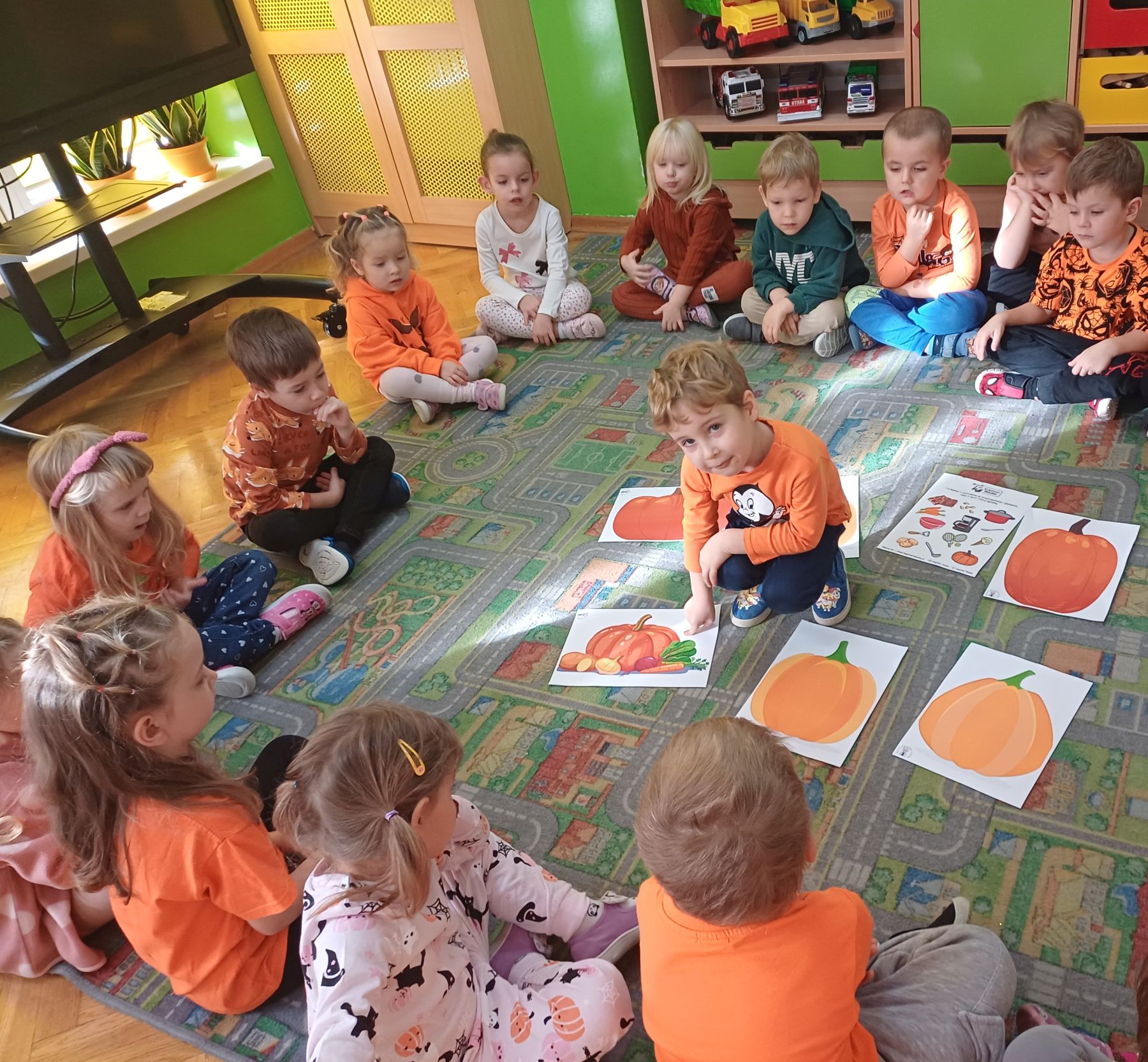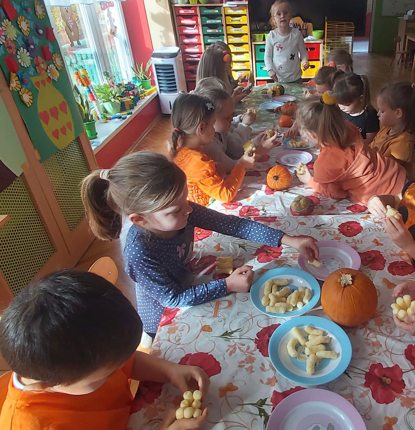 Dnia 30 października 2025 r. obchodziliśmy w naszym przedszkolu Dzień Dyni! Dzień ten upłynął nam w ciepłej, jesiennej atmosferze pełnej dyniowych uśmiechów i pomarańczowych barw! Podczas zajęć dzieci poznały ciekawostki o dyniach, wykonywały różnorodne zadania oraz tworzyły fantastyczne prace plastyczne inspirowane tym jesiennym warzywem. nie zabrakło również przepysznego ciasta dyniowego. To był dzień pełen radości, kreatywności i wspaniałej wspólnej zabawy!