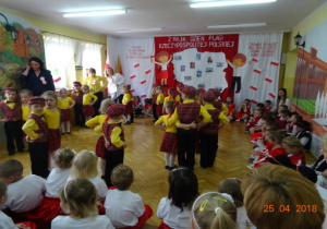 Przedszkolaki pięknie recytowały wiersze o naszej fladze oraz wykonały wspaniałe układy taneczne. Dzieci jak zawsze wypadły wspaniale. Rodzice byli zachwyceni występami najmłodszych i nie kryli łez wzruszenia oglądając przepiękne występy naszych przedszkolaków.