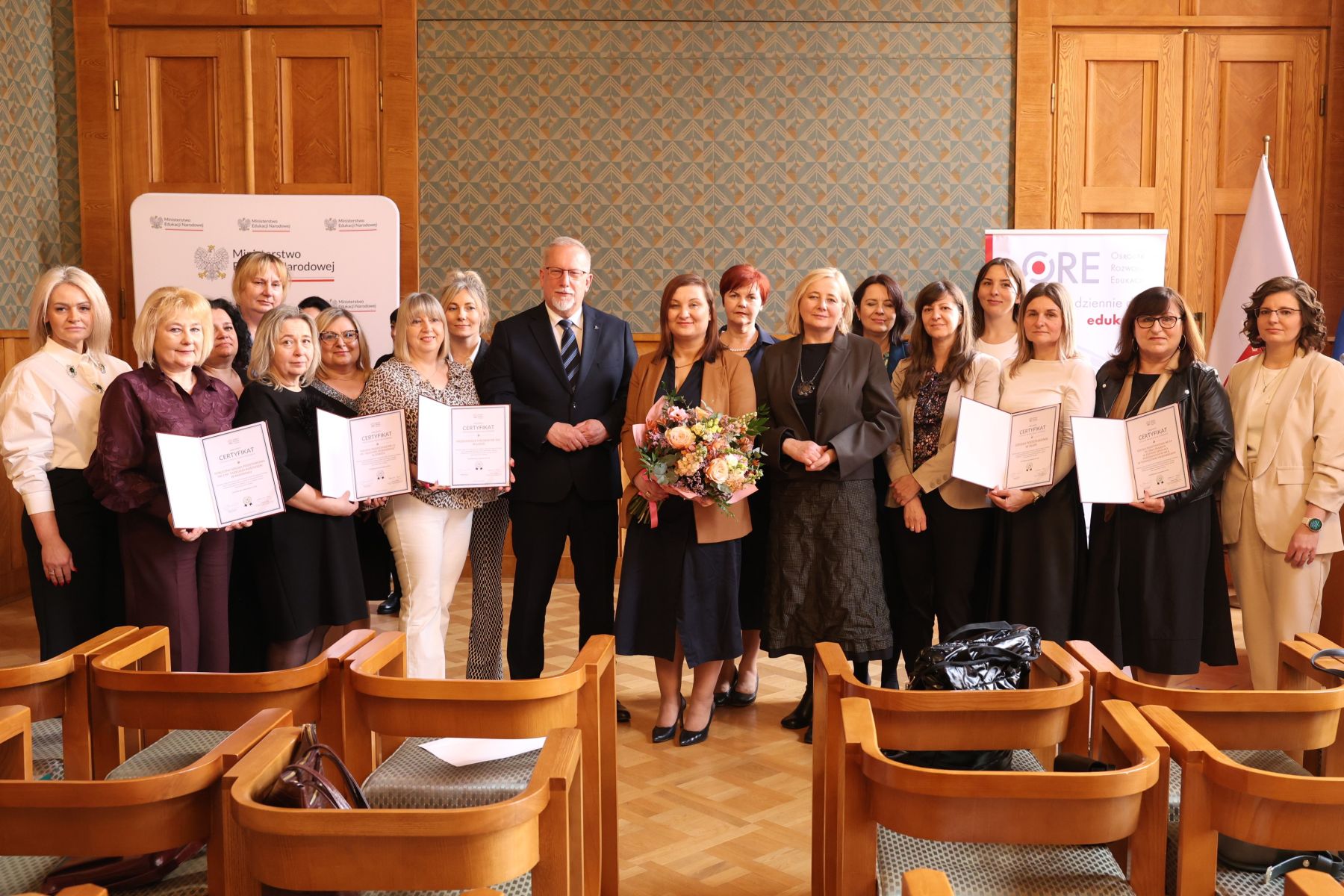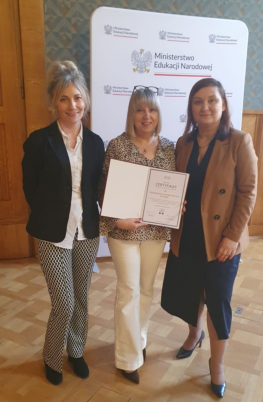 Certyfikat został wręczony przez Podsekretarz Stanu w Ministerstwie Edukacji Narodowej Panią Paulinę Piechnę-Więckiewicz.