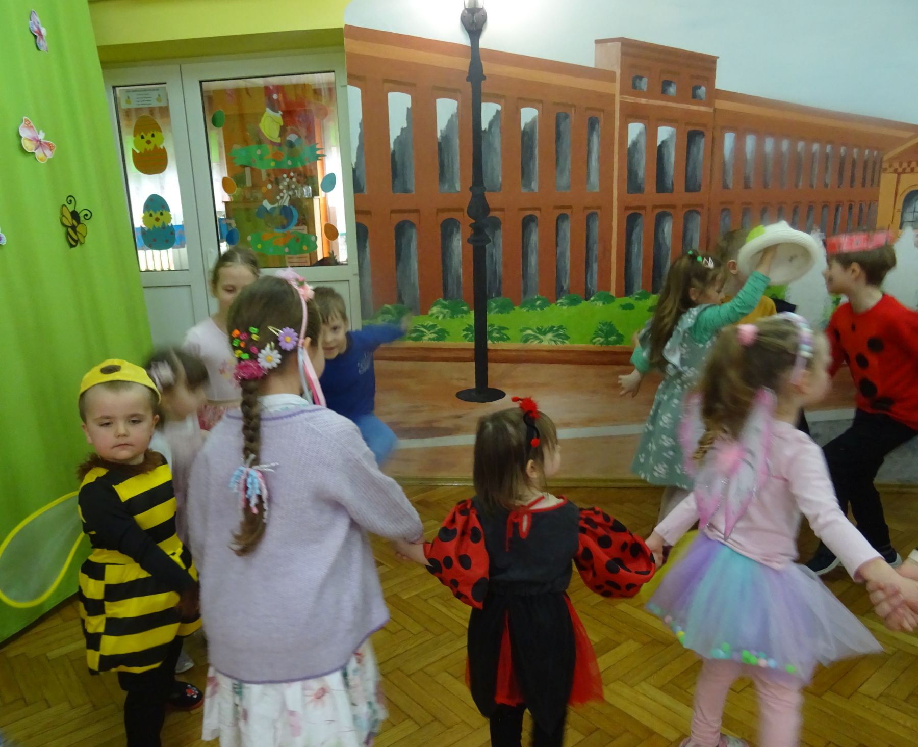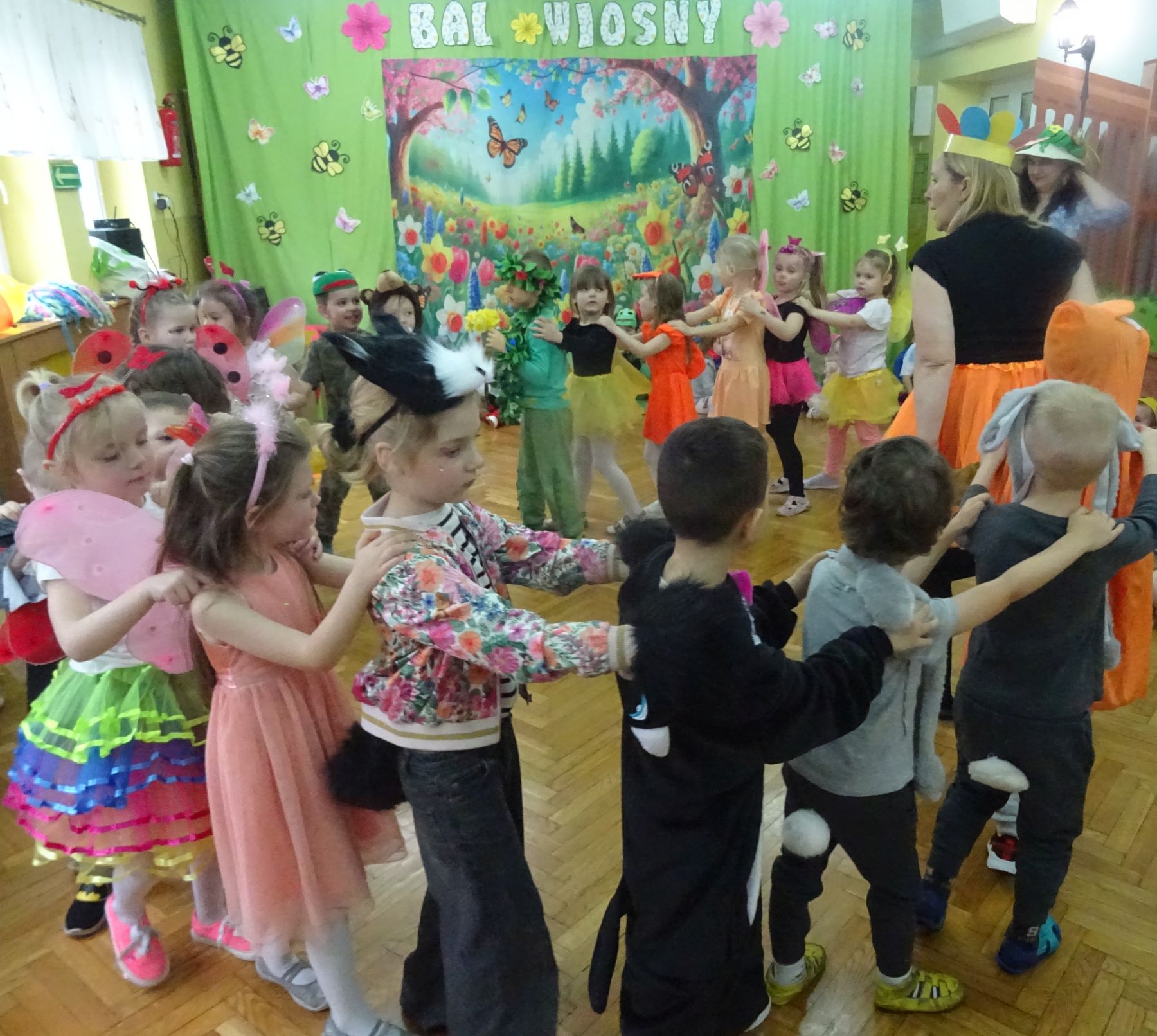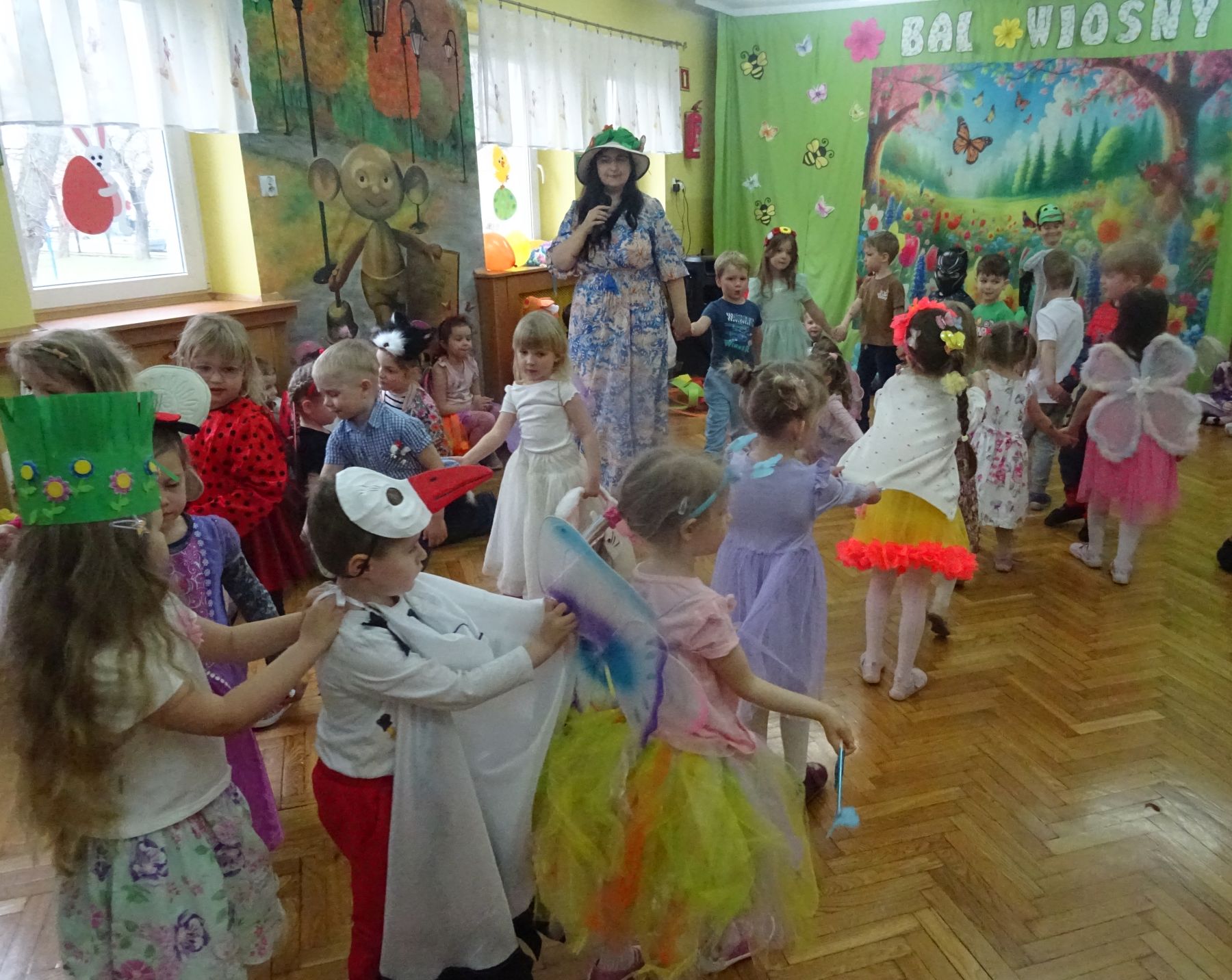 Dnia 27 marca 2025 r.odbył się w naszym przedszkolu Bal Wiosny. W tym dniu dzieci przybyły do przedszkola przebrane w stroje związane z ta piękną porą roku. Wśród nich można było spotkać Panią Wiosnę, żabki, bociany, motylki, biedronki, pszczółki i kolorowe kwiaty. Odbywały się różne wiosenne tańce, zabawy, konkurencje, konkursy, które przysparzały dzieciom wielu wrażeń i zadowolenia. W tym dniu wszędzie królowała Pani Wiosna, można było zauważyć uśmiech i radość na twarzach dzieci.