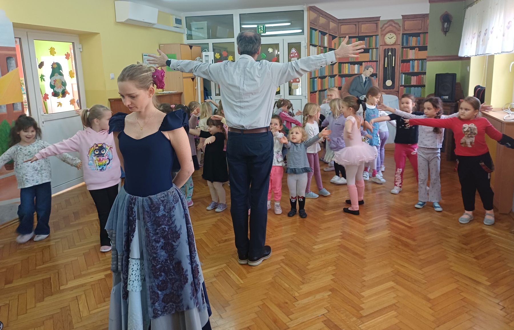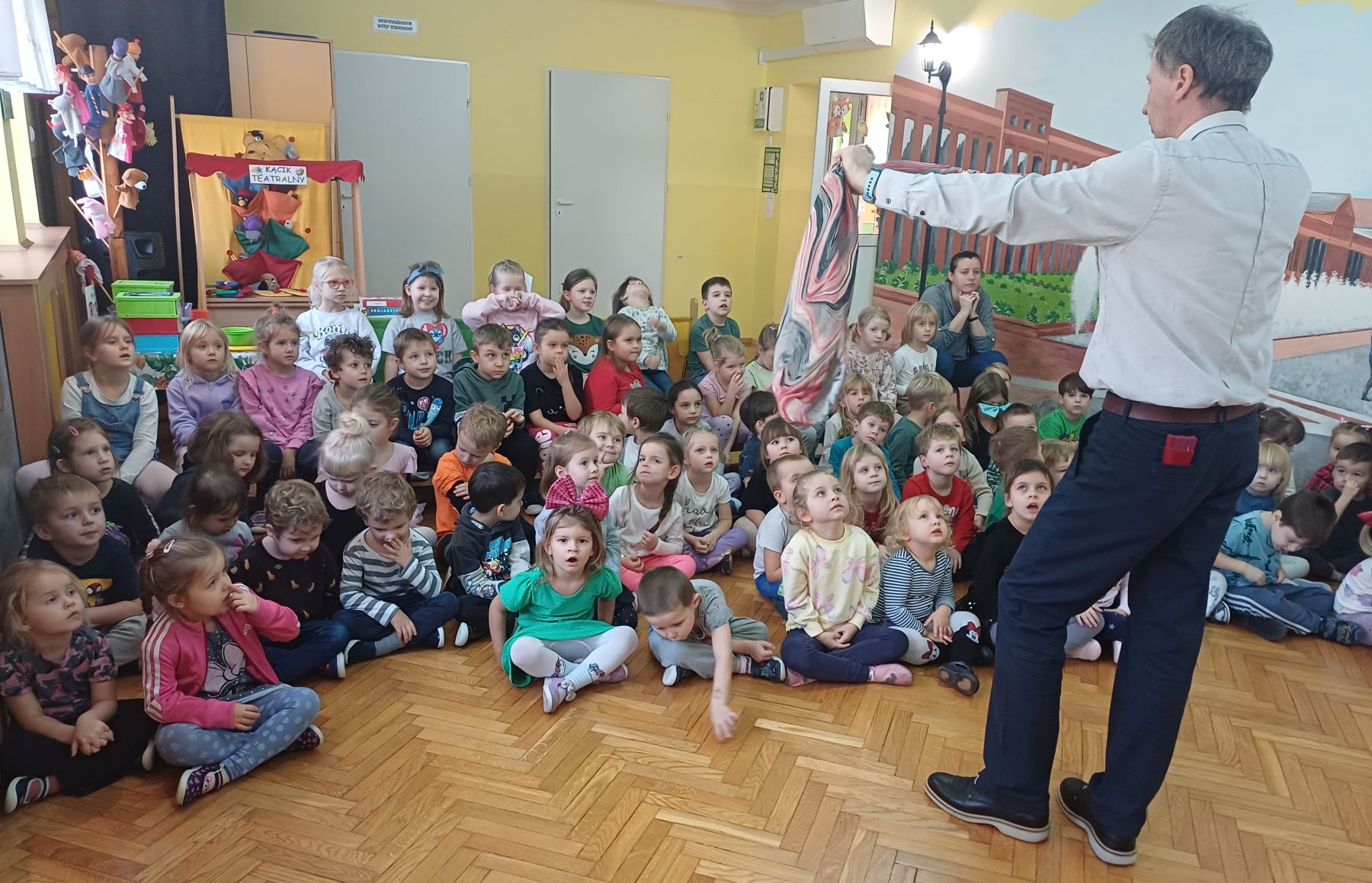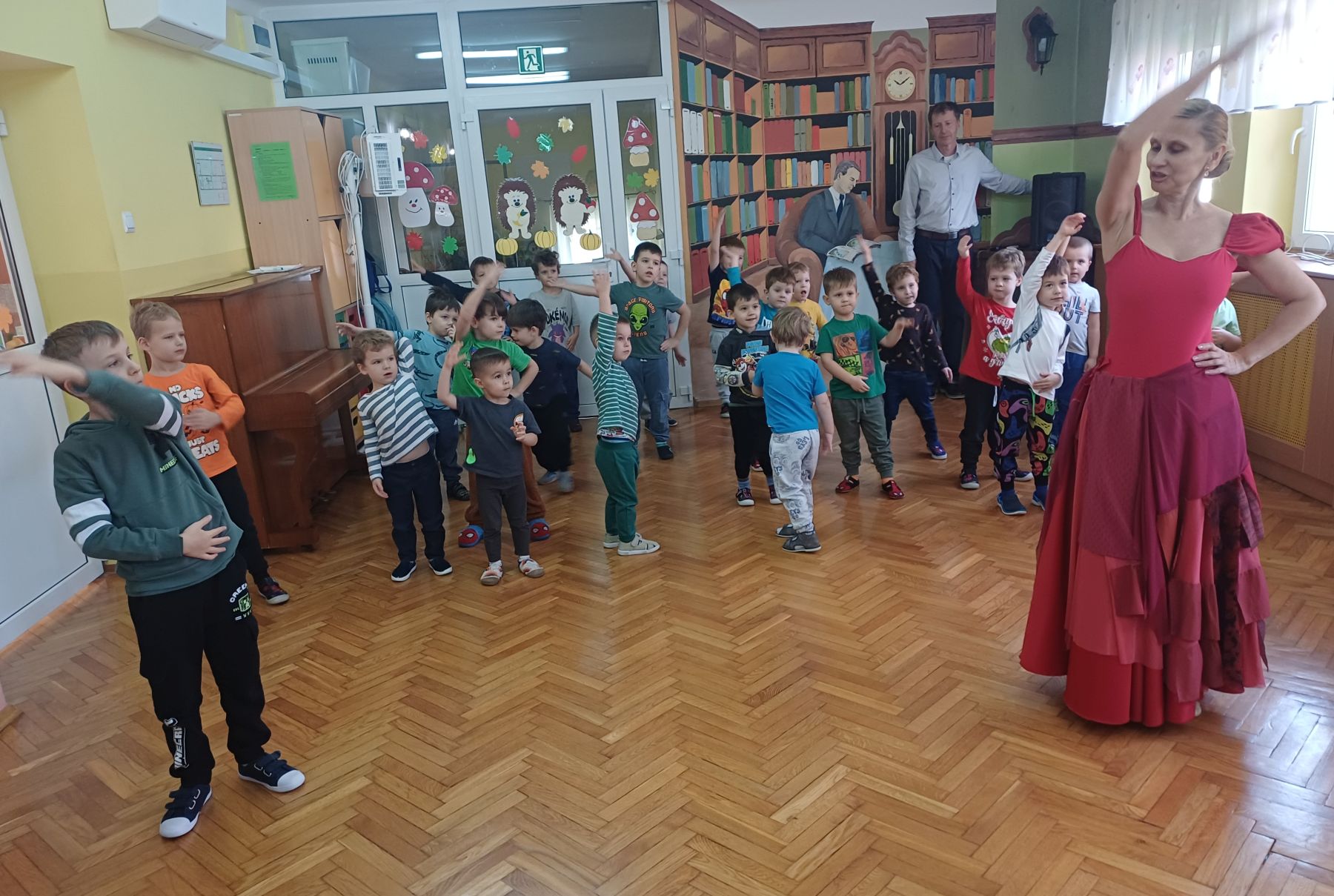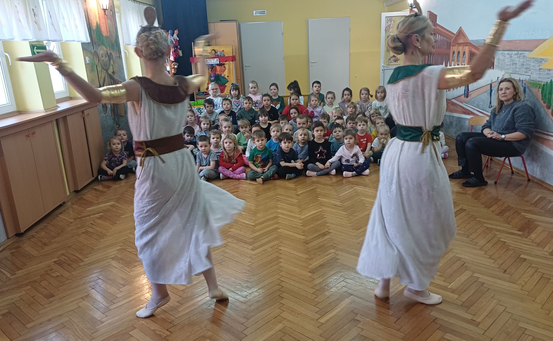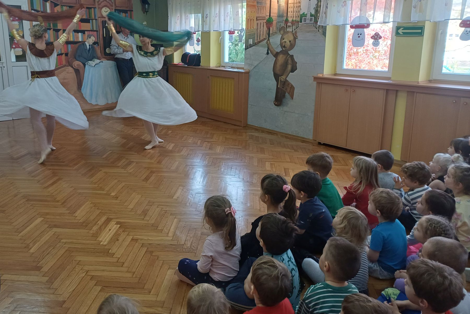 Dnia 13 listopada 2025 r. odbyło się spotkanie baletowe pt. „Tańce z oper”. Artyści baletu wprowadzili nas w zaczarowany świat oper. Podziwialiśmy różne tańce z baletu klasycznego. Baletnice zaprezentowały nam między innymi taniec „Carmen” i „Aidy”, w którym mogliśmy podziwiać różne ewolucje baletowe, piruety i skoki. Dzieci poznały stroje oraz rekwizyty niezbędne do prezentacji wybranych choreografii np. piękne wachlarze. Przedszkolaki miały również możliwość wypróbowania swoich sił w tańcu z chustą. Wspólny taniec sprawił nam wiele radości.