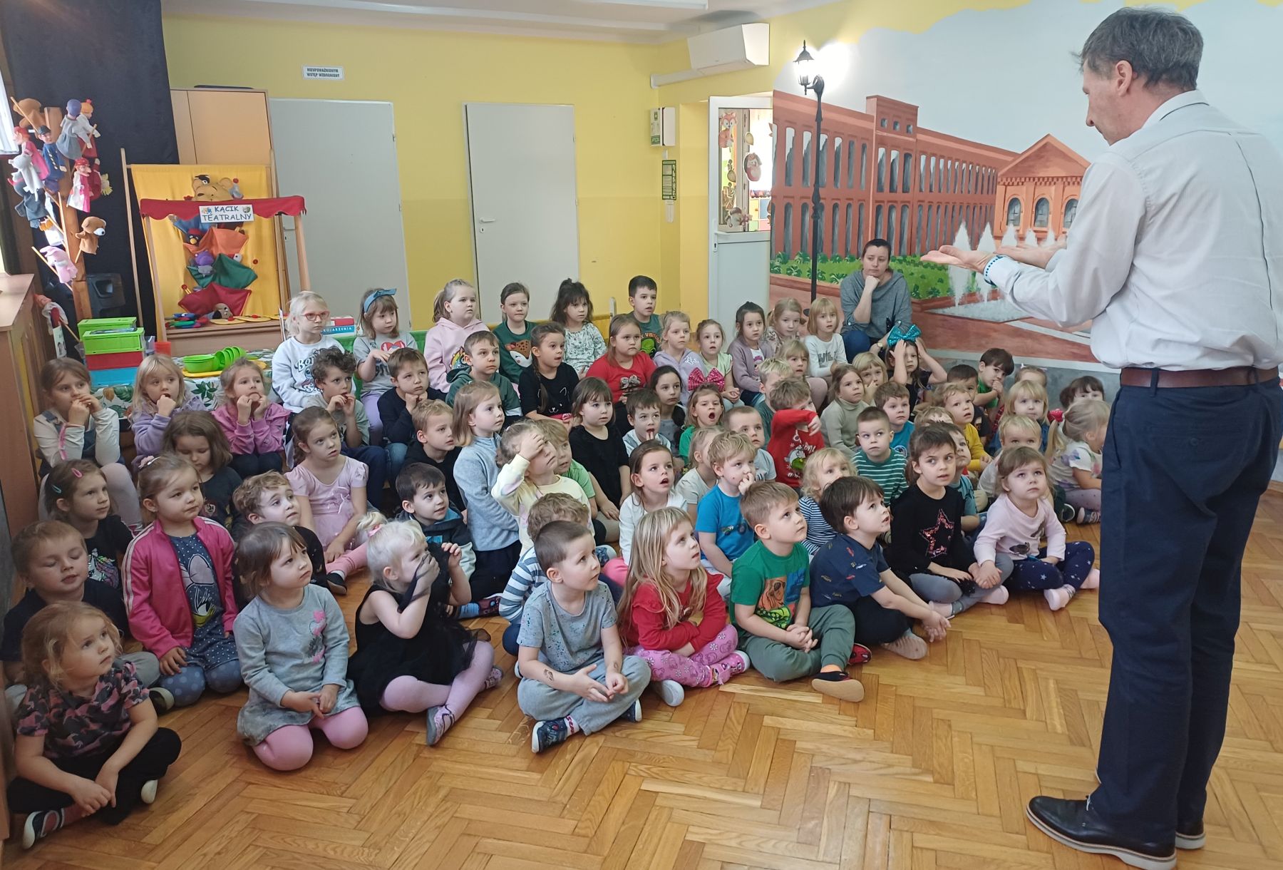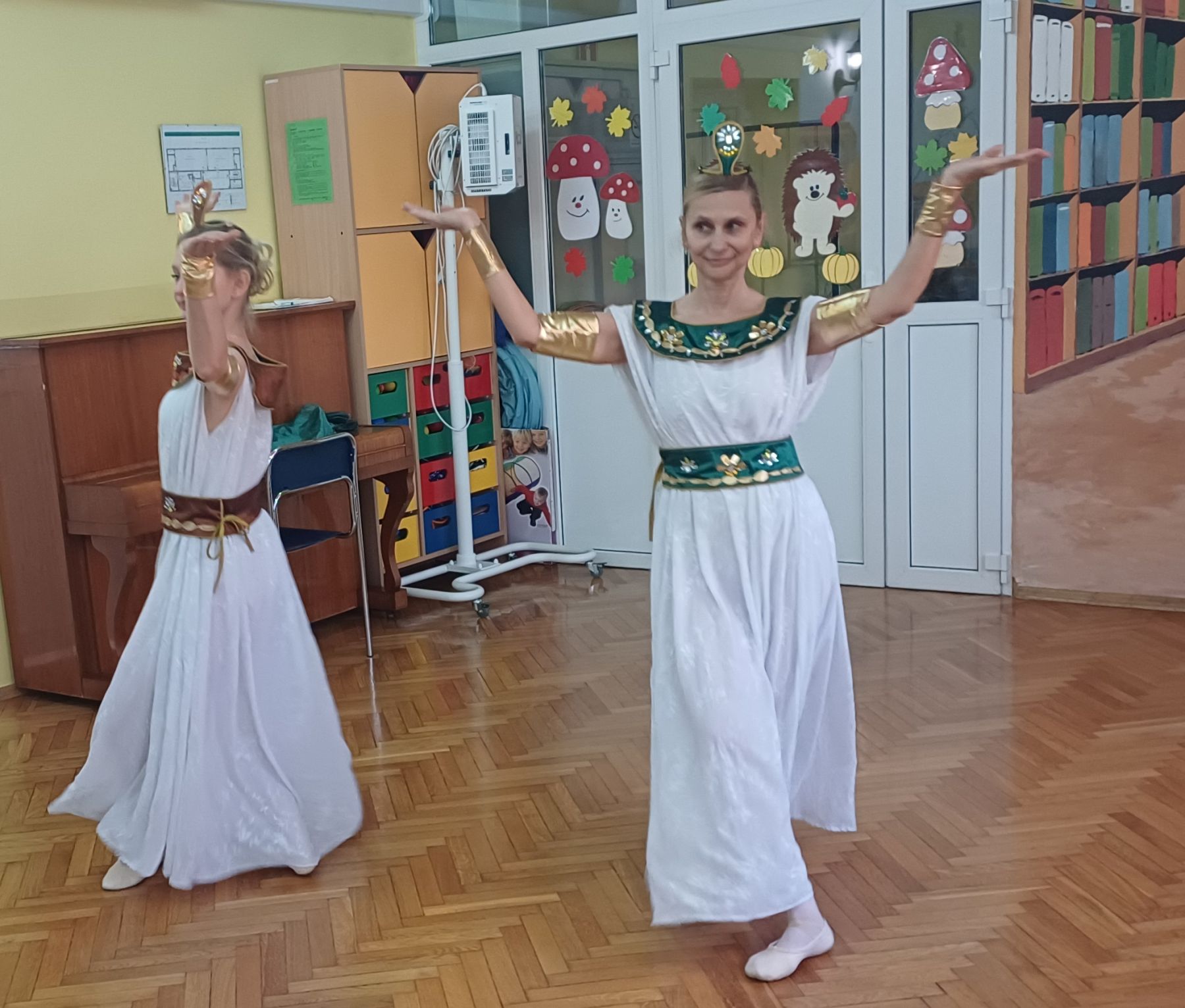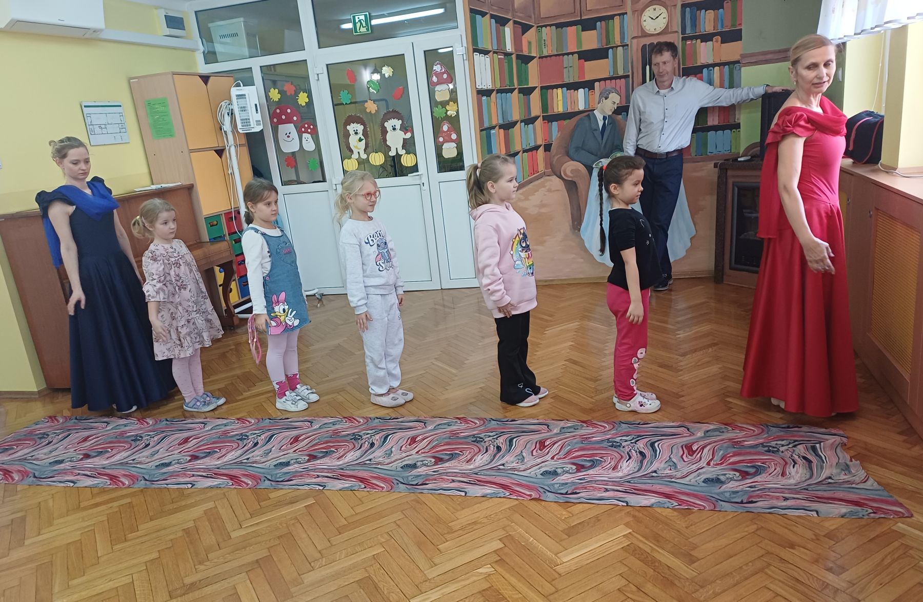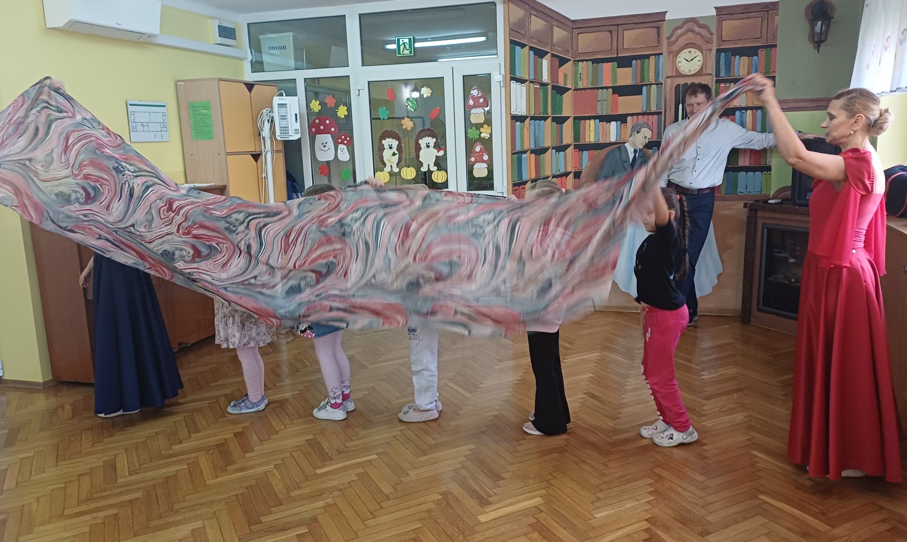 Dnia 13 listopada 2025 r. odbyło się spotkanie baletowe pt. „Tańce z oper”. Artyści baletu wprowadzili nas w zaczarowany świat oper. Podziwialiśmy różne tańce z baletu klasycznego. Baletnice zaprezentowały nam między innymi taniec „Carmen” i „Aidy”, w którym mogliśmy podziwiać różne ewolucje baletowe, piruety i skoki. Dzieci poznały stroje oraz rekwizyty niezbędne do prezentacji wybranych choreografii np. piękne wachlarze. Przedszkolaki miały również możliwość wypróbowania swoich sił w tańcu z chustą. Wspólny taniec sprawił nam wiele radości.