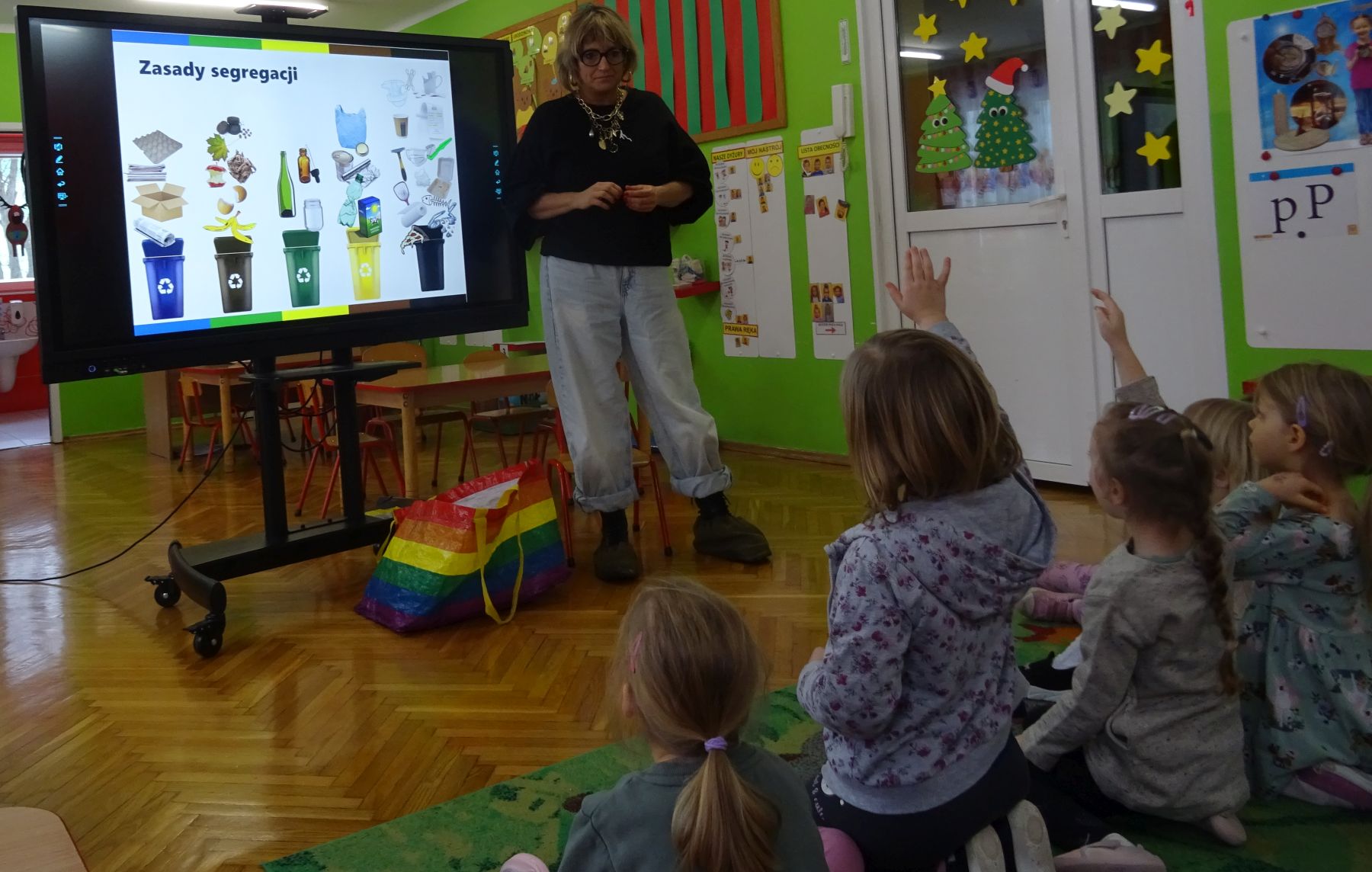 Dnia 13 stycznia 2026 r. przedszkolaki z gr. III i IV uczestniczyły w warsztatach ekologicznych dotyczących selektywnej zbiórki odpadów. dzieci w formie gier i zabaw uzupełniły wiedzę w dziedzinie ochrony środowiska i ekologii.