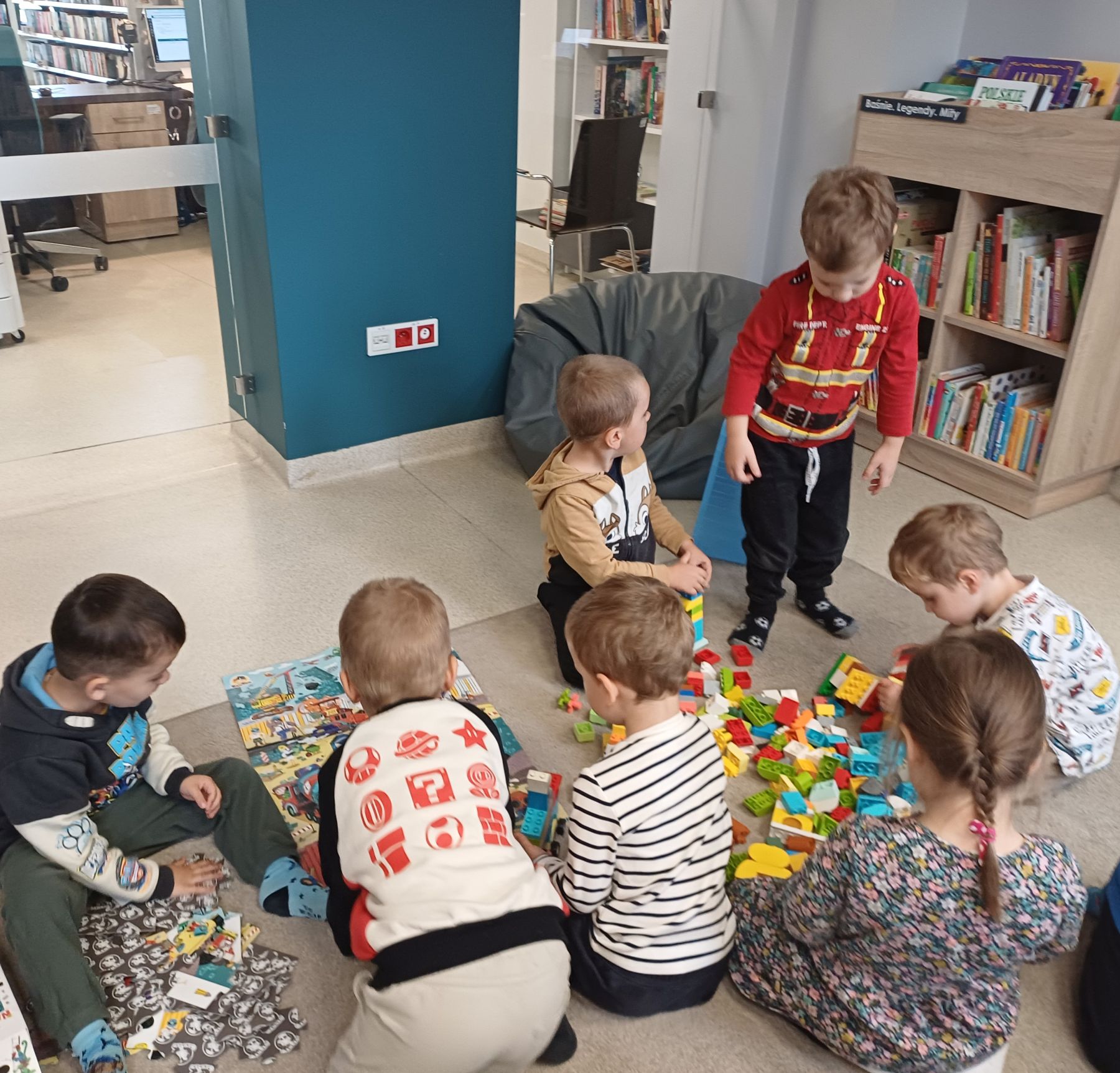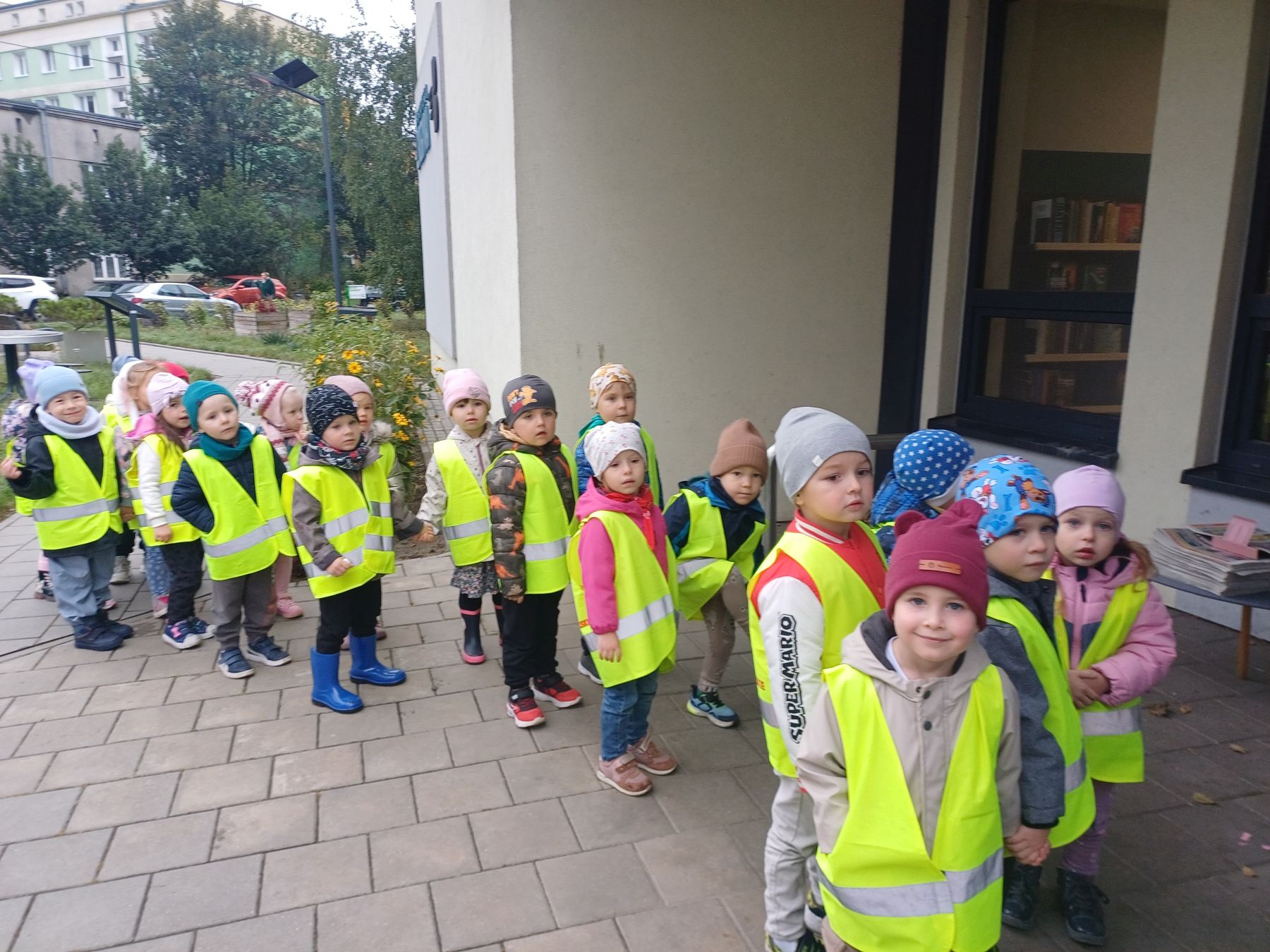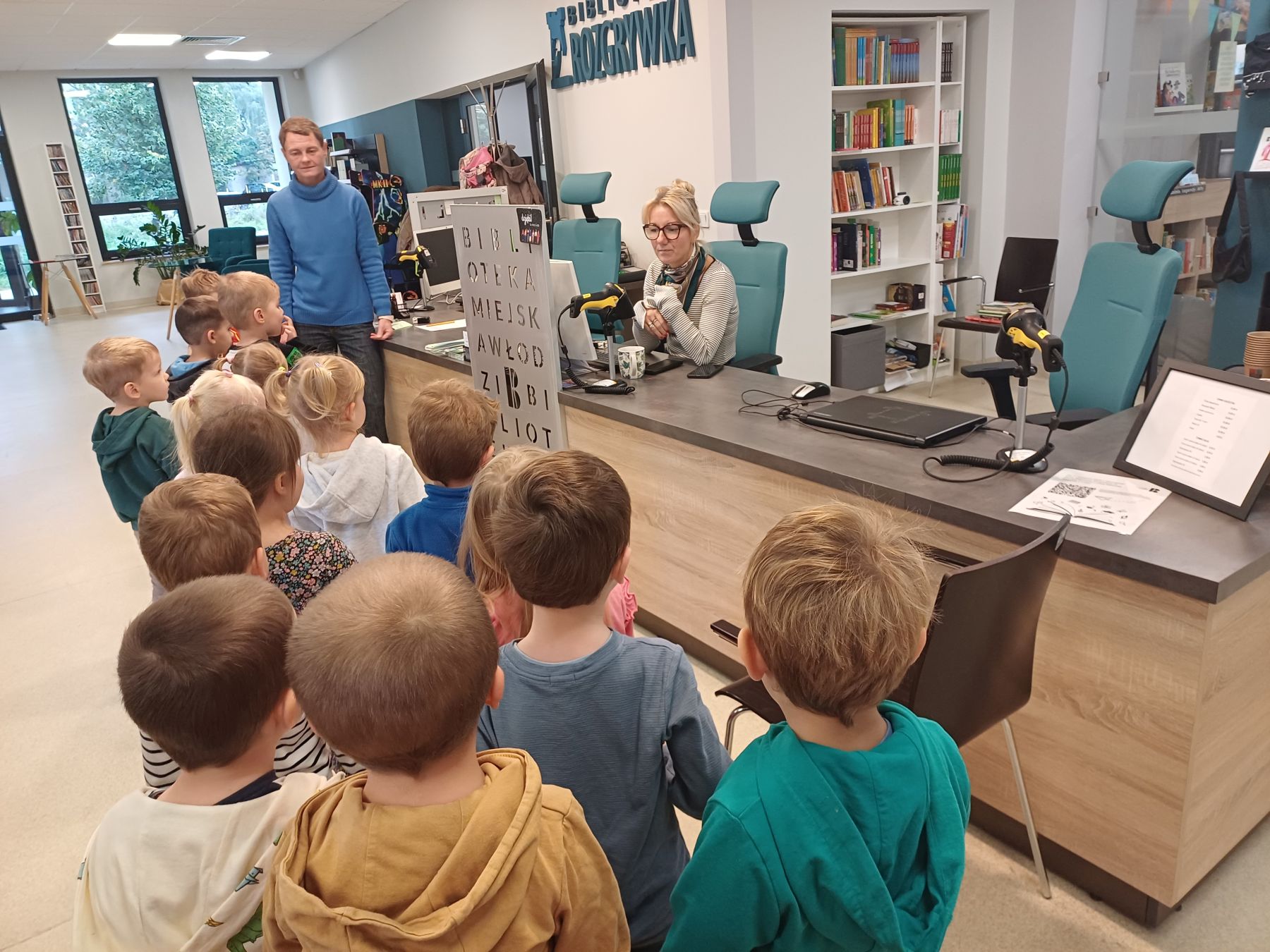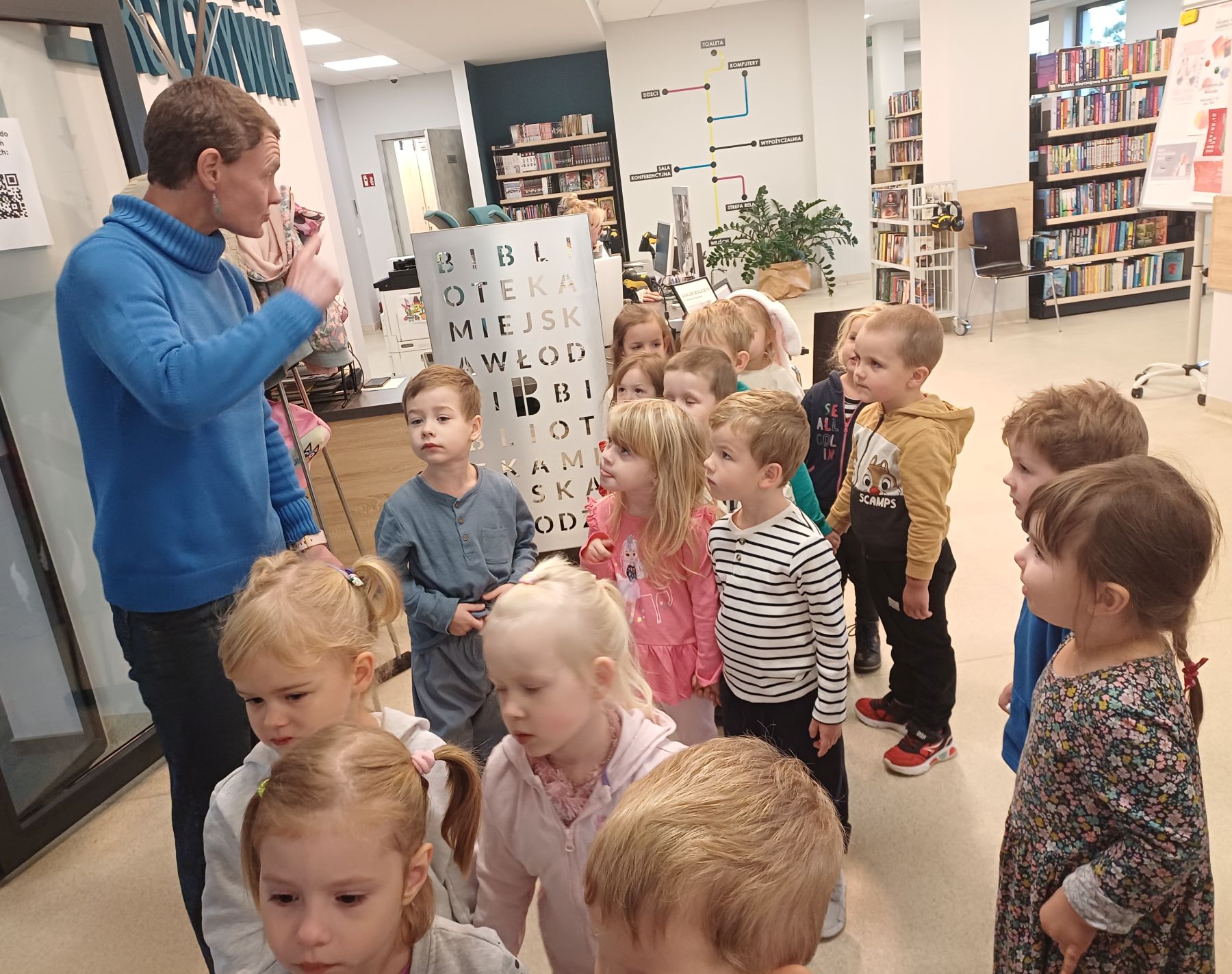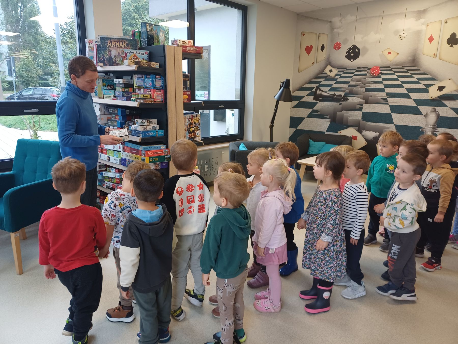 Dnia 01 października 2025 r. przedszkolaki z gr. II udały się do Miejskiej Biblioteki "Rozgrywka". Celem wyjścia było rozbudzenie zainteresowań czytelniczych dzieci oraz kształtowanie poczucia szacunku dla książek. Pani bibliotekarka w przystępny sposób opowiadała o bibliotece i o zbiorach znajdujących się na półkach. Dzieci zobaczyły jak wygląda karta czytelnika oraz poznały zasady wypożyczania książek. Dzieci wzięły również udział w lekcji bibliotecznej podczas której, min. słuchały opowiadania pt. "Opowieści o tym, co w życiu ważne". Przedszkolakom wycieczka do biblioteki bardzo się podobała.