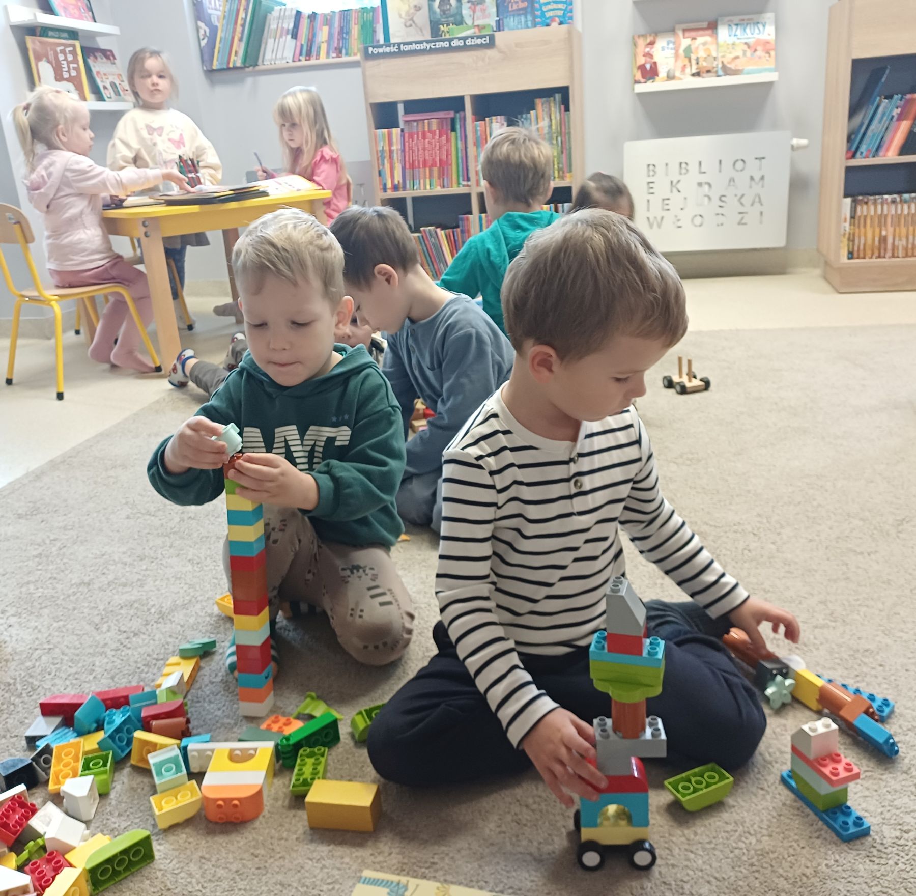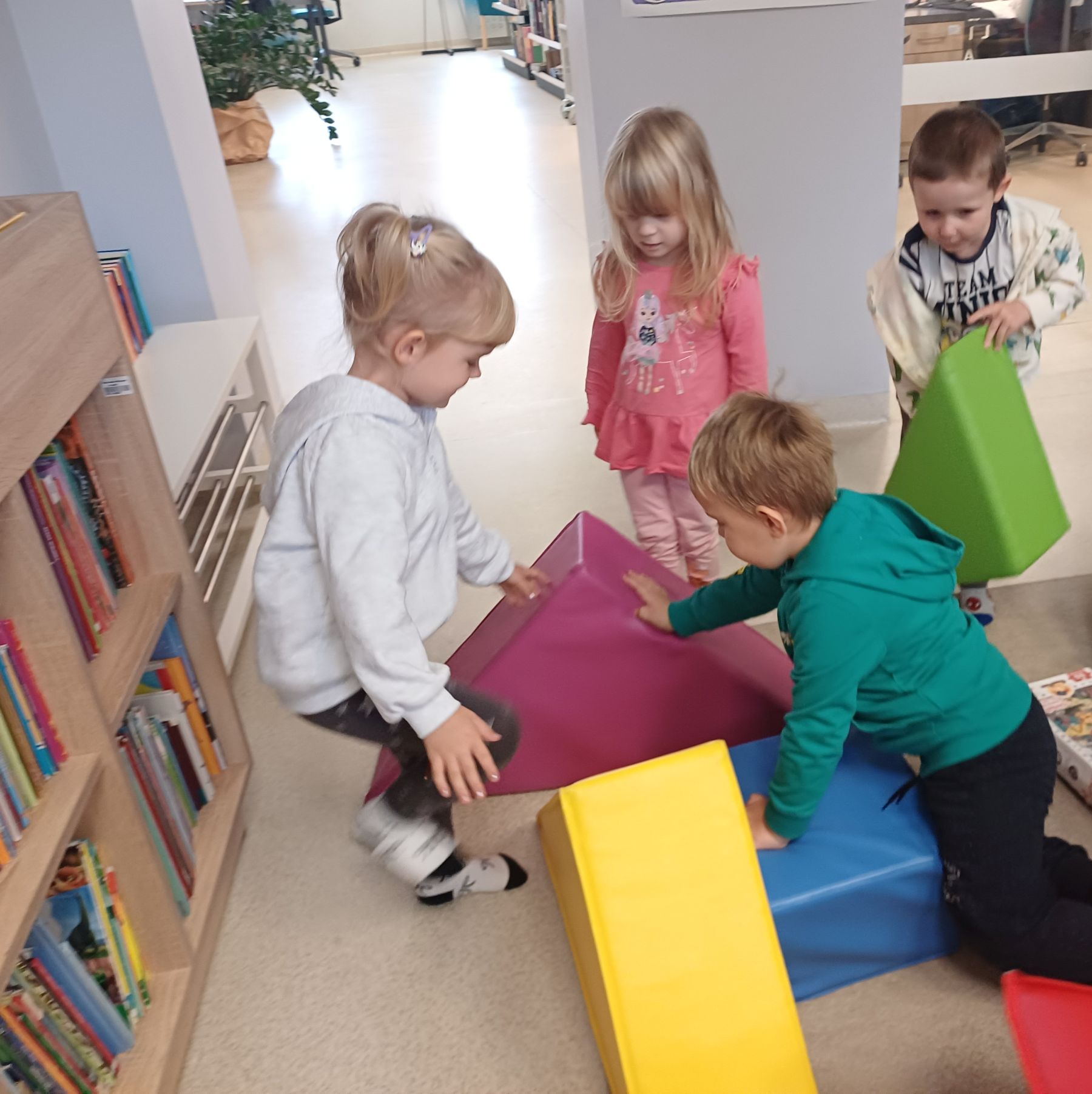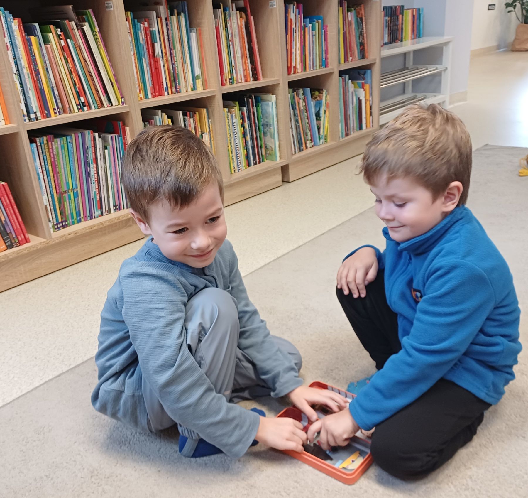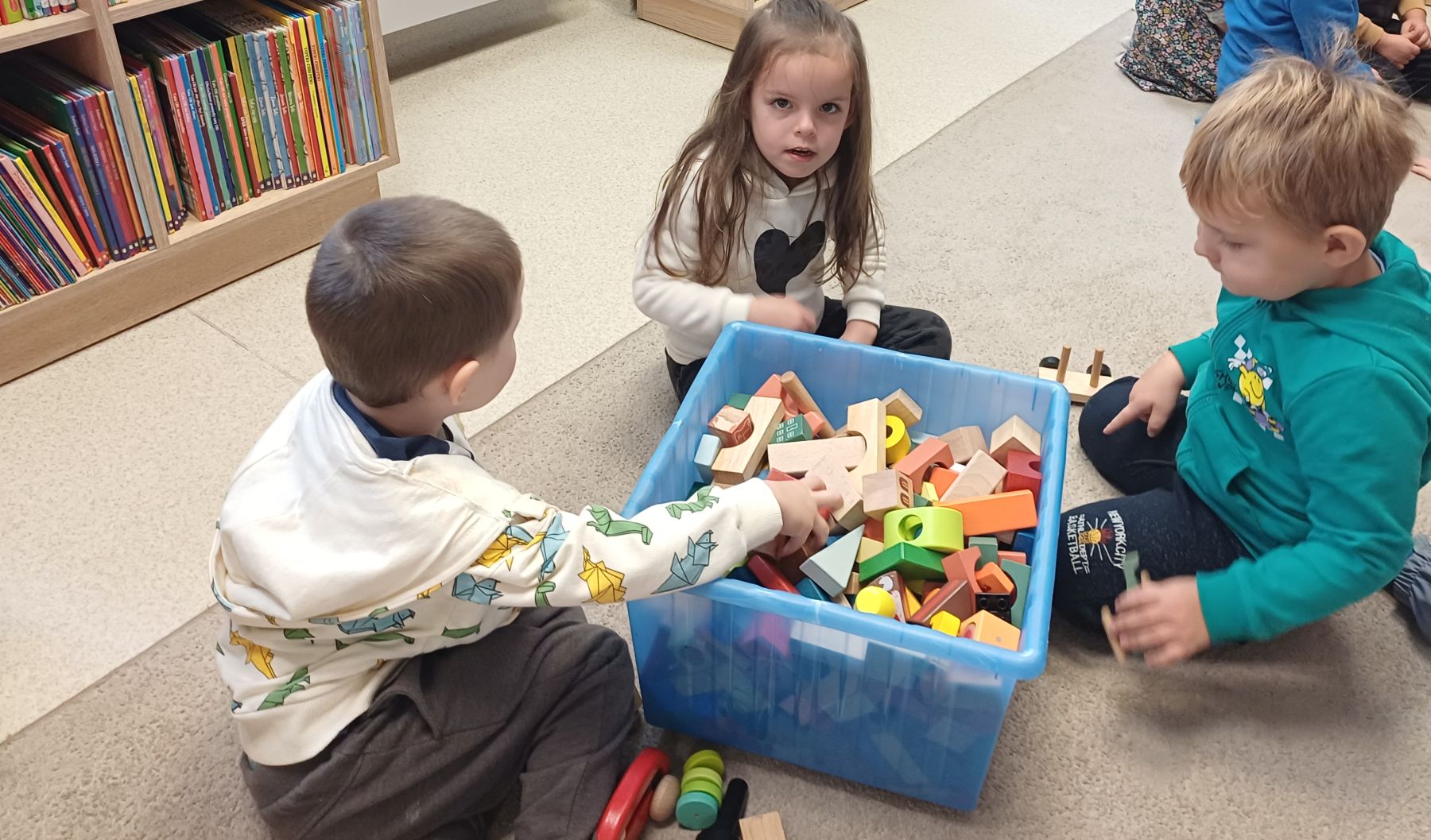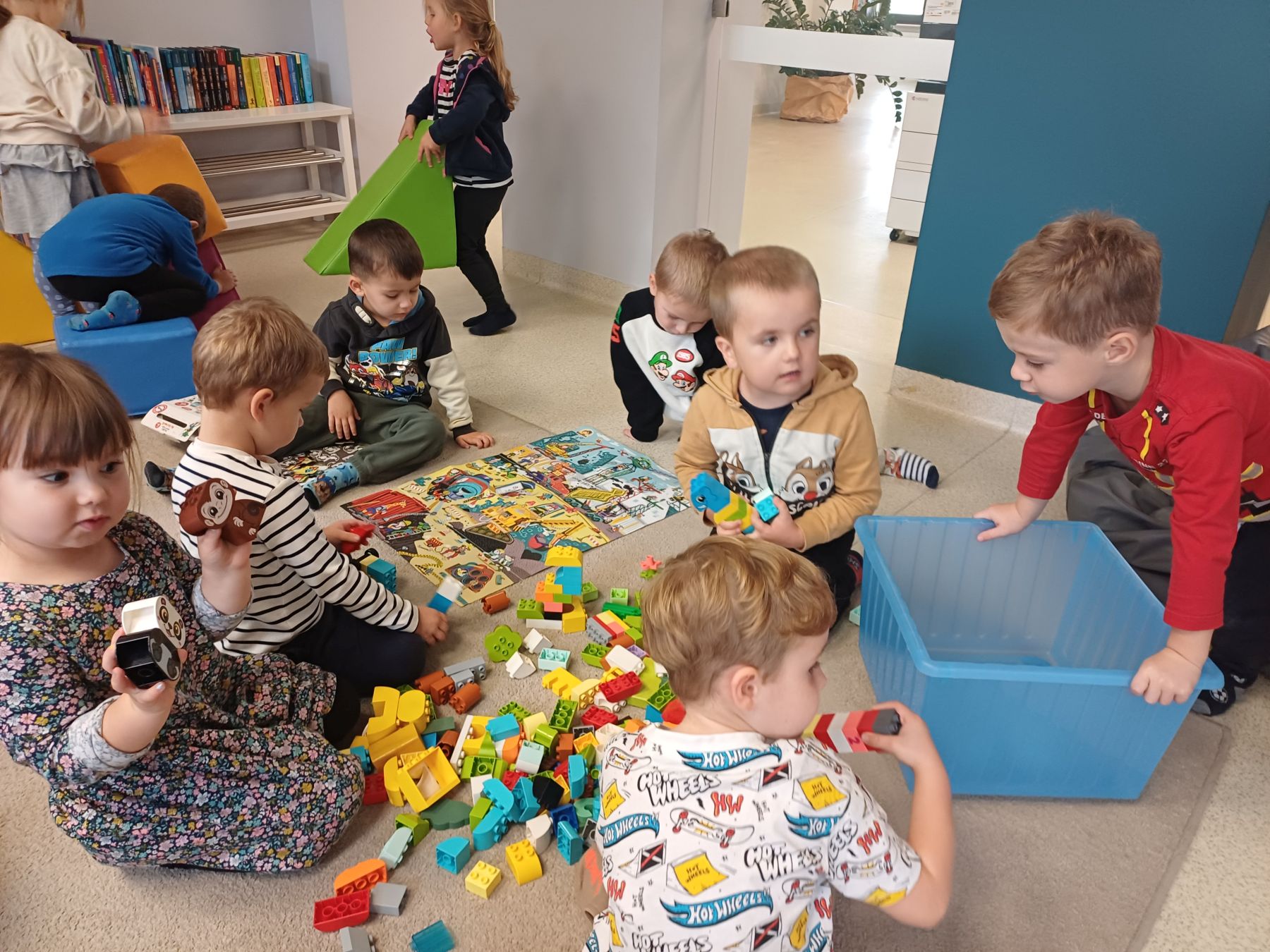 Dnia 01 października 2025 r. przedszkolaki z gr. II udały się do Miejskiej Biblioteki "Rozgrywka". Celem wyjścia było rozbudzenie zainteresowań czytelniczych dzieci oraz kształtowanie poczucia szacunku dla książek. Pani bibliotekarka w przystępny sposób opowiadała o bibliotece i o zbiorach znajdujących się na półkach. Dzieci zobaczyły jak wygląda karta czytelnika oraz poznały zasady wypożyczania książek. Dzieci wzięły również udział w lekcji bibliotecznej podczas której, min. słuchały opowiadania pt. "Opowieści o tym, co w życiu ważne". Przedszkolakom wycieczka do biblioteki bardzo się podobała.