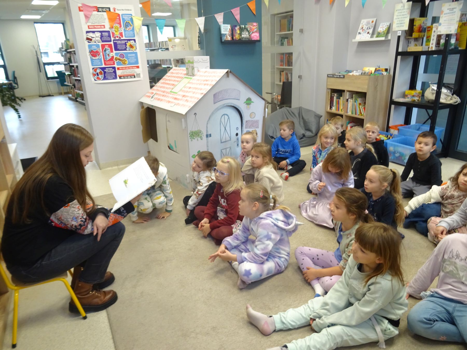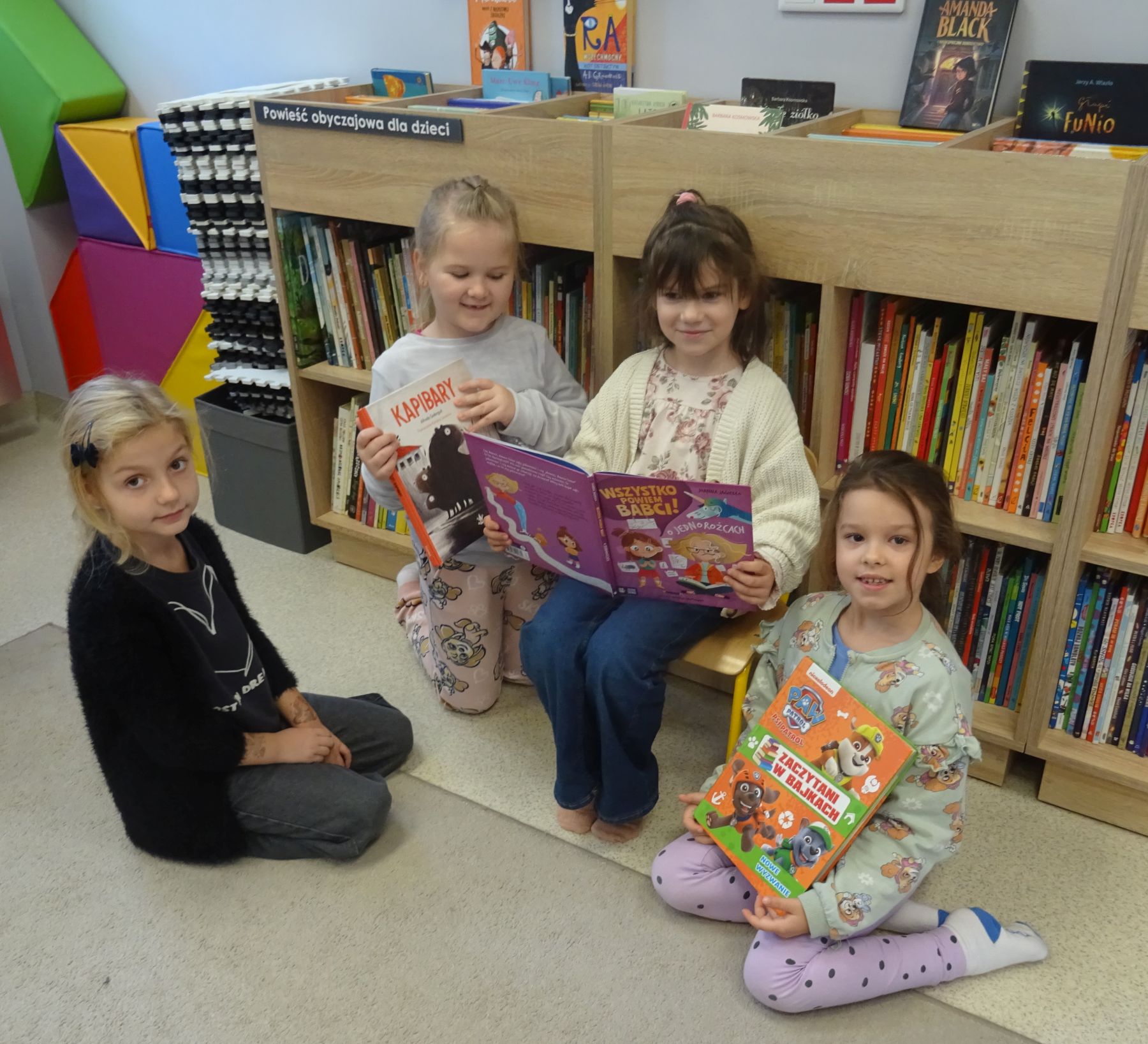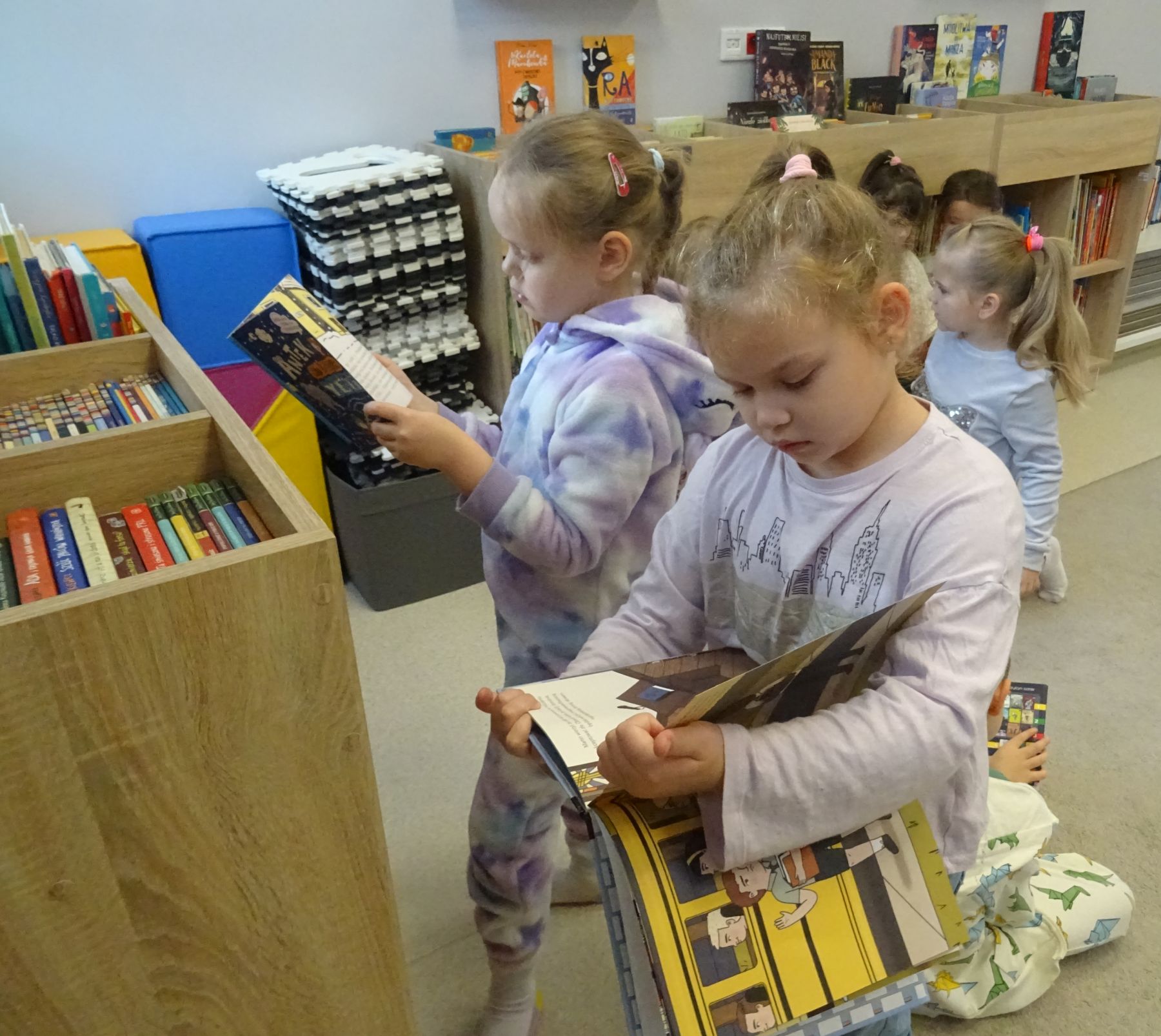 Dnia 22 września 2025 r. grupa IV wybrała się na wycieczkę do Miejskiej Biblioteki "Rozgrywka". Przedszkolaki miały okazję obejrzeć nie tylko pokaźny księgozbiór ale również zapoznały się ze sposobem wypożyczania książek. Dzieci dowiedziały się od Pani Bibliotekarki jak należy zachowywać się w bibliotece i jak chronić książki przed zniszczeniem.