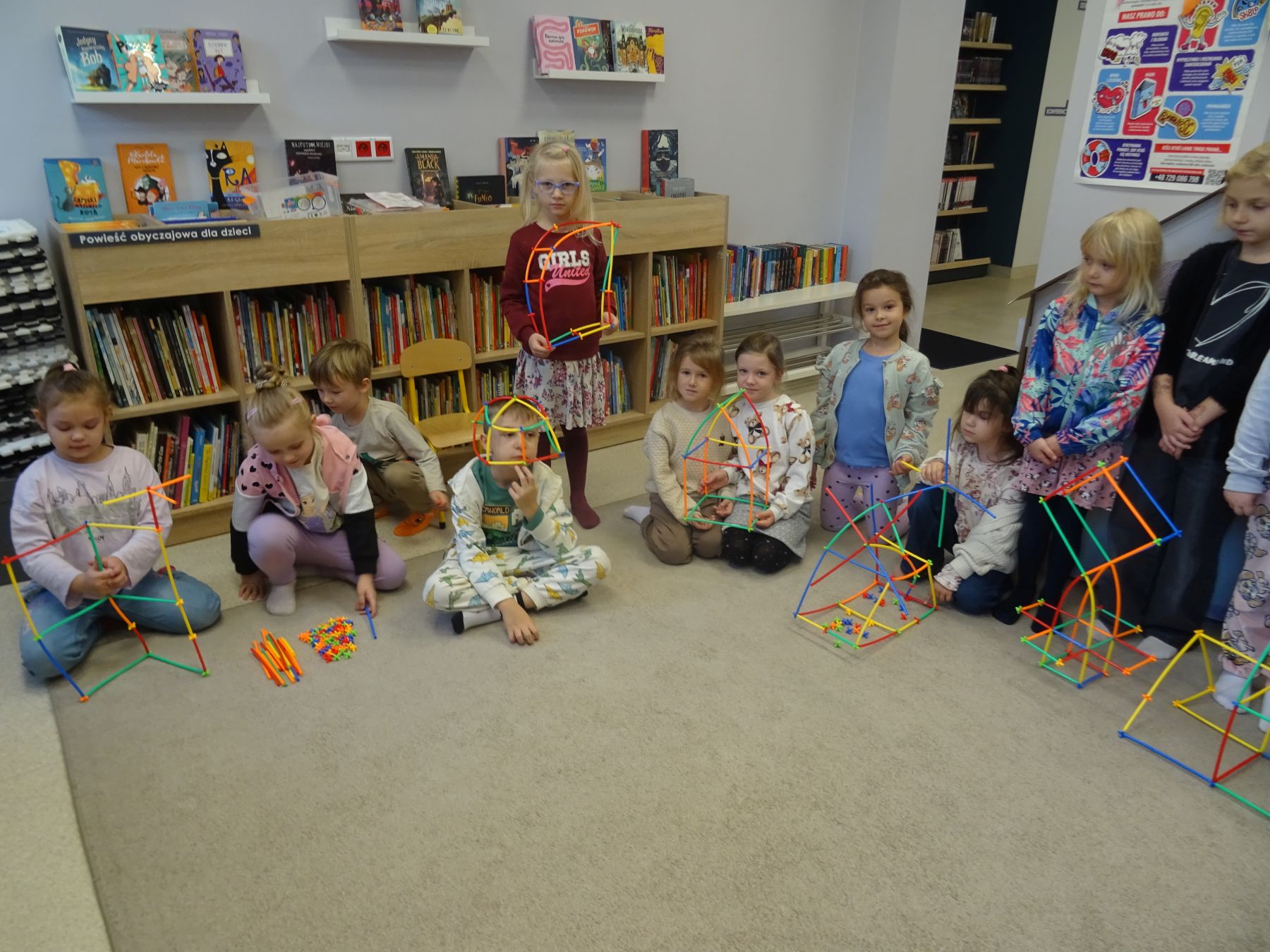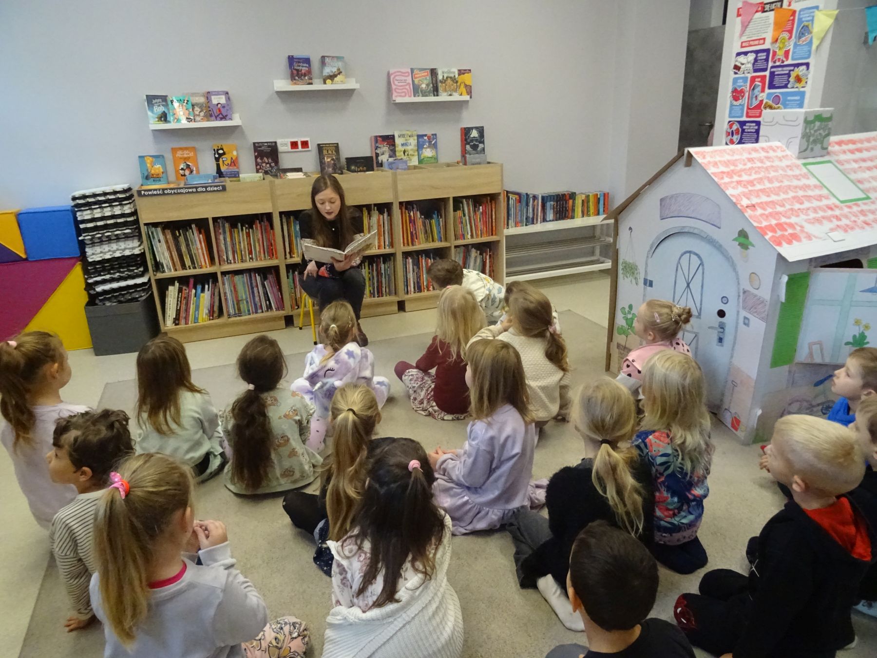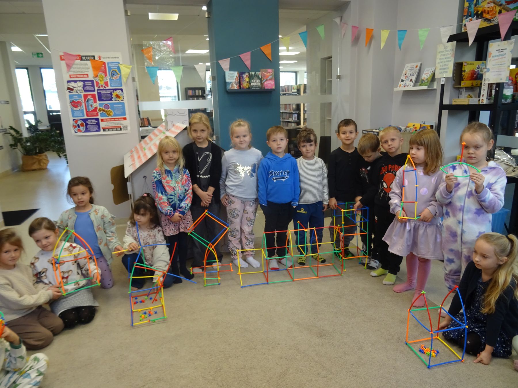 Dnia 22 września 2025 r. grupa IV wybrała się na wycieczkę do Miejskiej Biblioteki "Rozgrywka". Przedszkolaki miały okazję obejrzeć nie tylko pokaźny księgozbiór ale również zapoznały się ze sposobem wypożyczania książek. Dzieci dowiedziały się od Pani Bibliotekarki jak należy zachowywać się w bibliotece i jak chronić książki przed zniszczeniem.