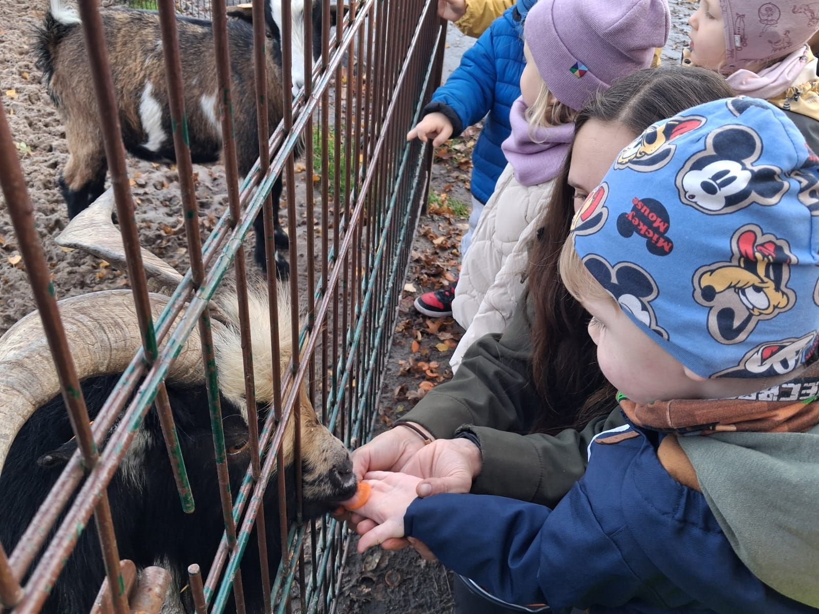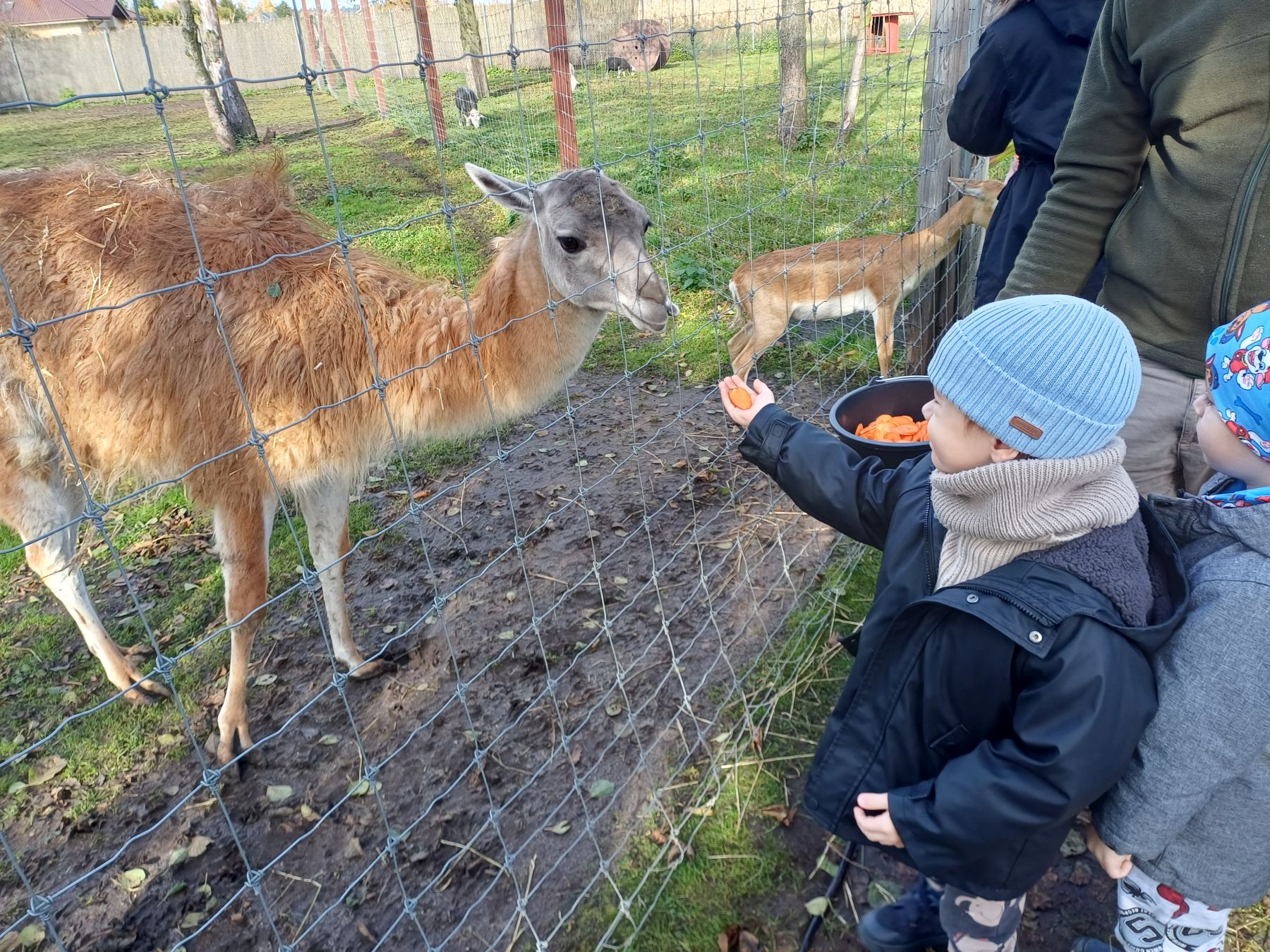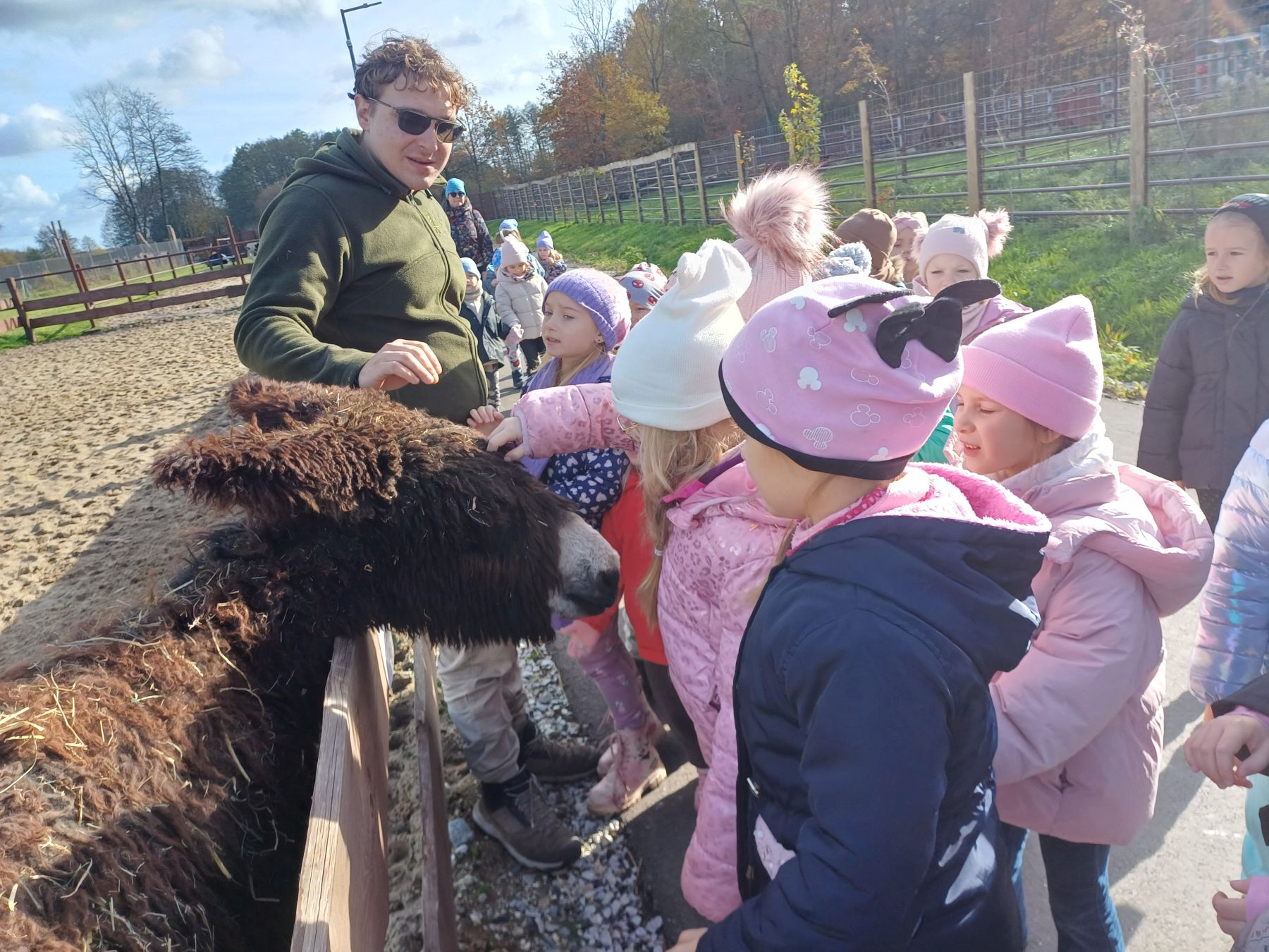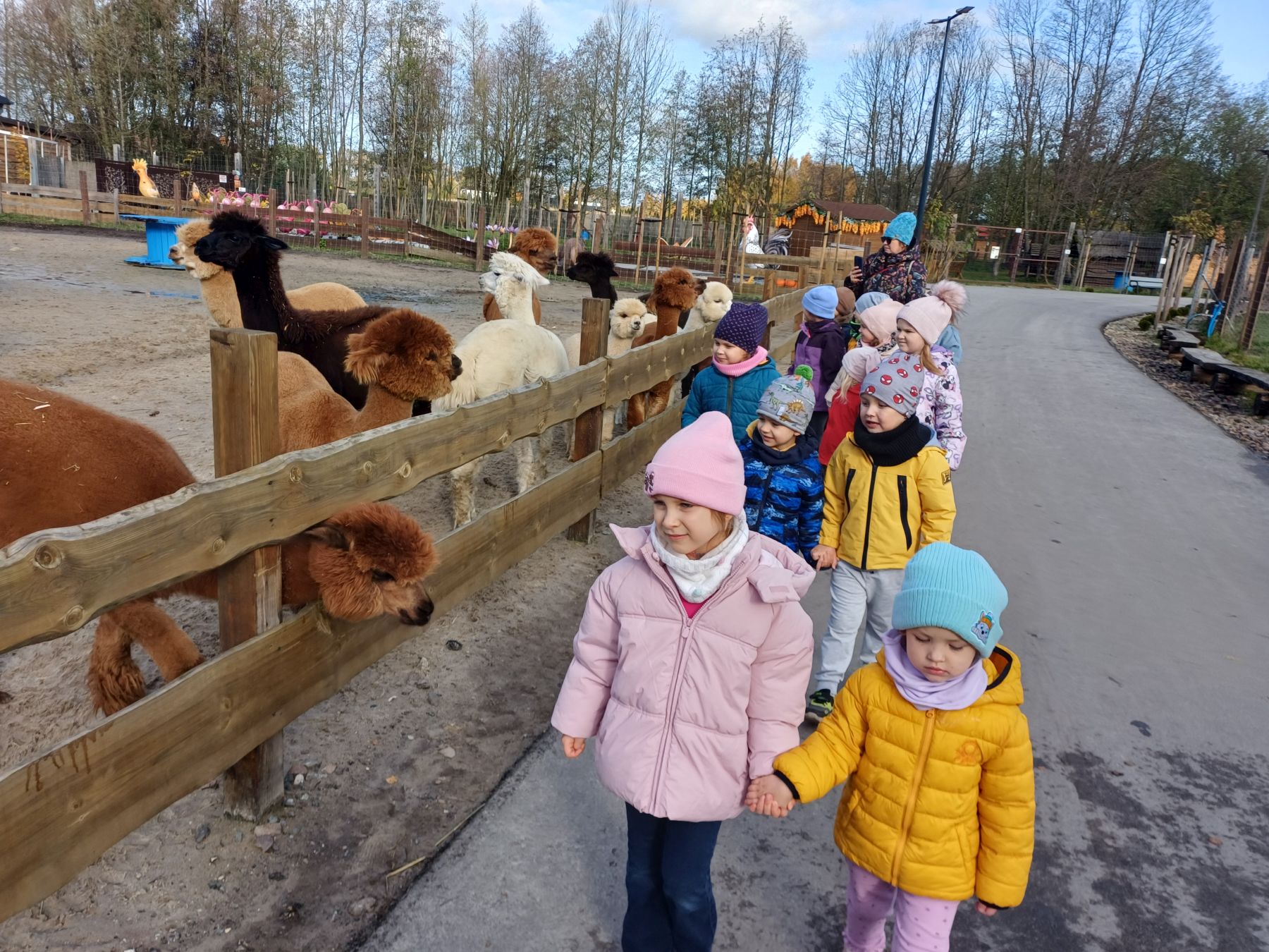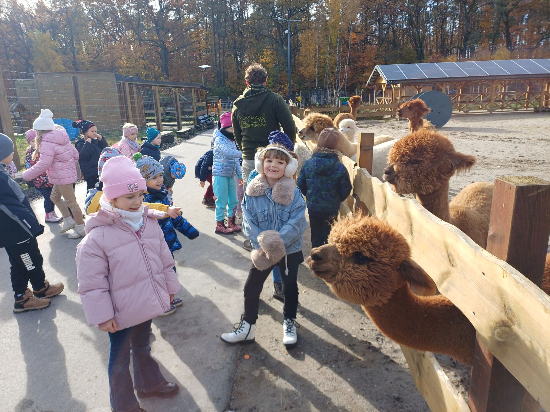 W dniu 29 października 2025 r. dzieci wybrały się na wycieczkę do Mini Zoo Dobronianka w Dobroniu. Celem wycieczki były: obserwacja i czerpanie pozytywnych wrażeń w kontakcie z przyrodą, zainteresowanie różnorodnością gatunków świata zwierząt oraz kształtowanie świadomości ekologicznej. Przedszkolaki miały możliwość poznać różne zwierzęta np. alpaki, kozy, konie, wielbłądy, osły, mary, króliki, pawie i wiele innych, a także karmić niektóre z nich marchewkami oraz wysłuchać ciekawostek na ich temat od przewodników. Po zwiedzaniu zoo udaliśmy się na smaczny posiłek. Pobyt w zoo dostarczył najmłodszym wiele radości oraz był wspaniałą lekcją przyrody przeżytą w ciekawym i atrakcyjnym miejscu. Ach... cóż to był za dzień!