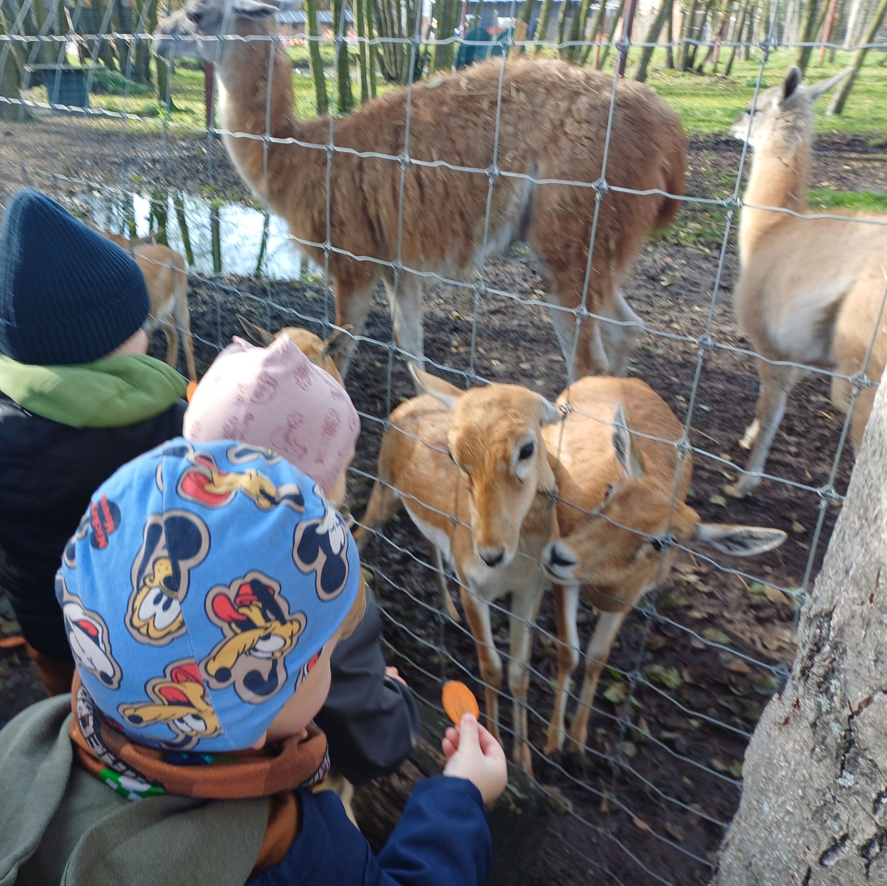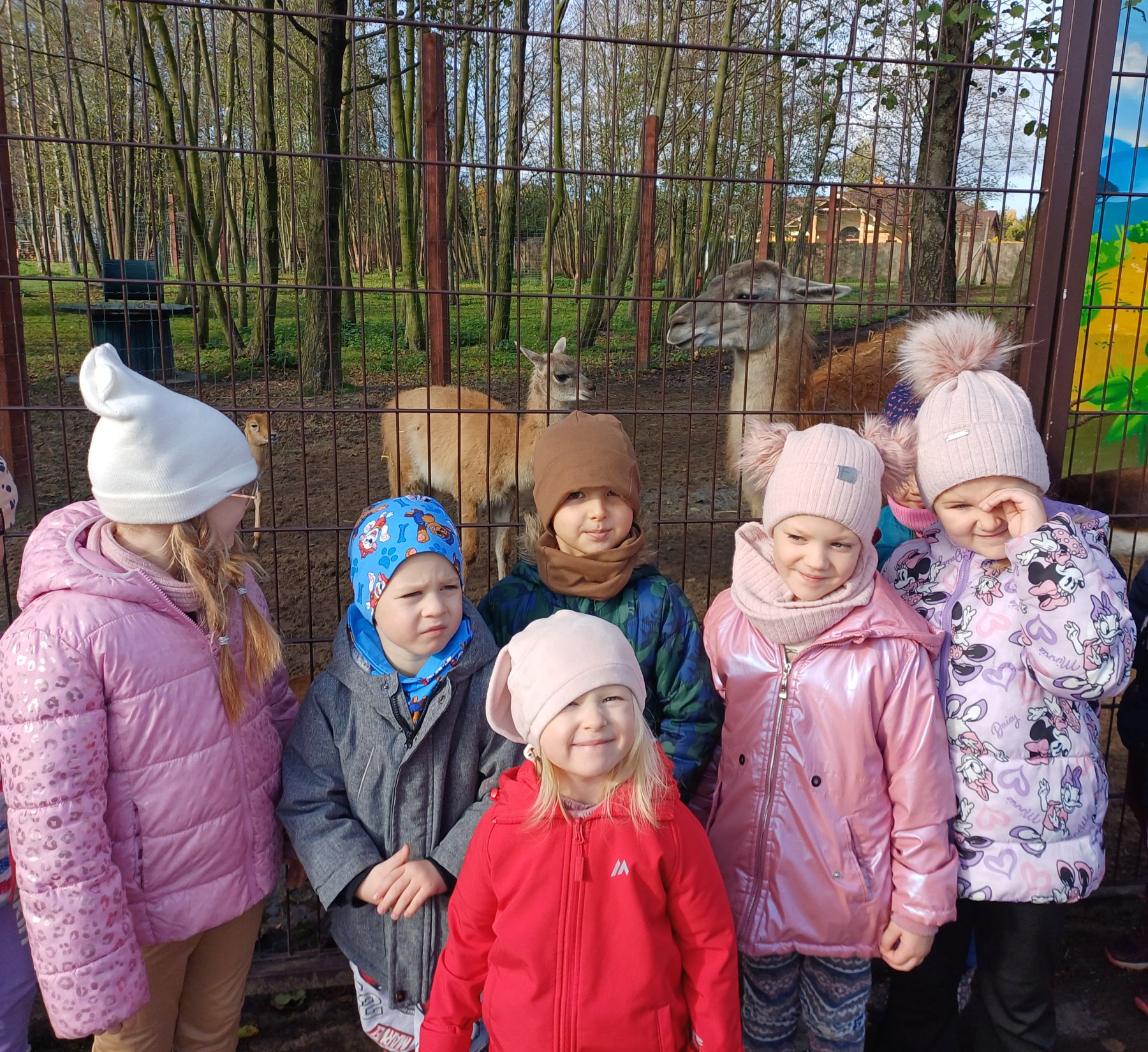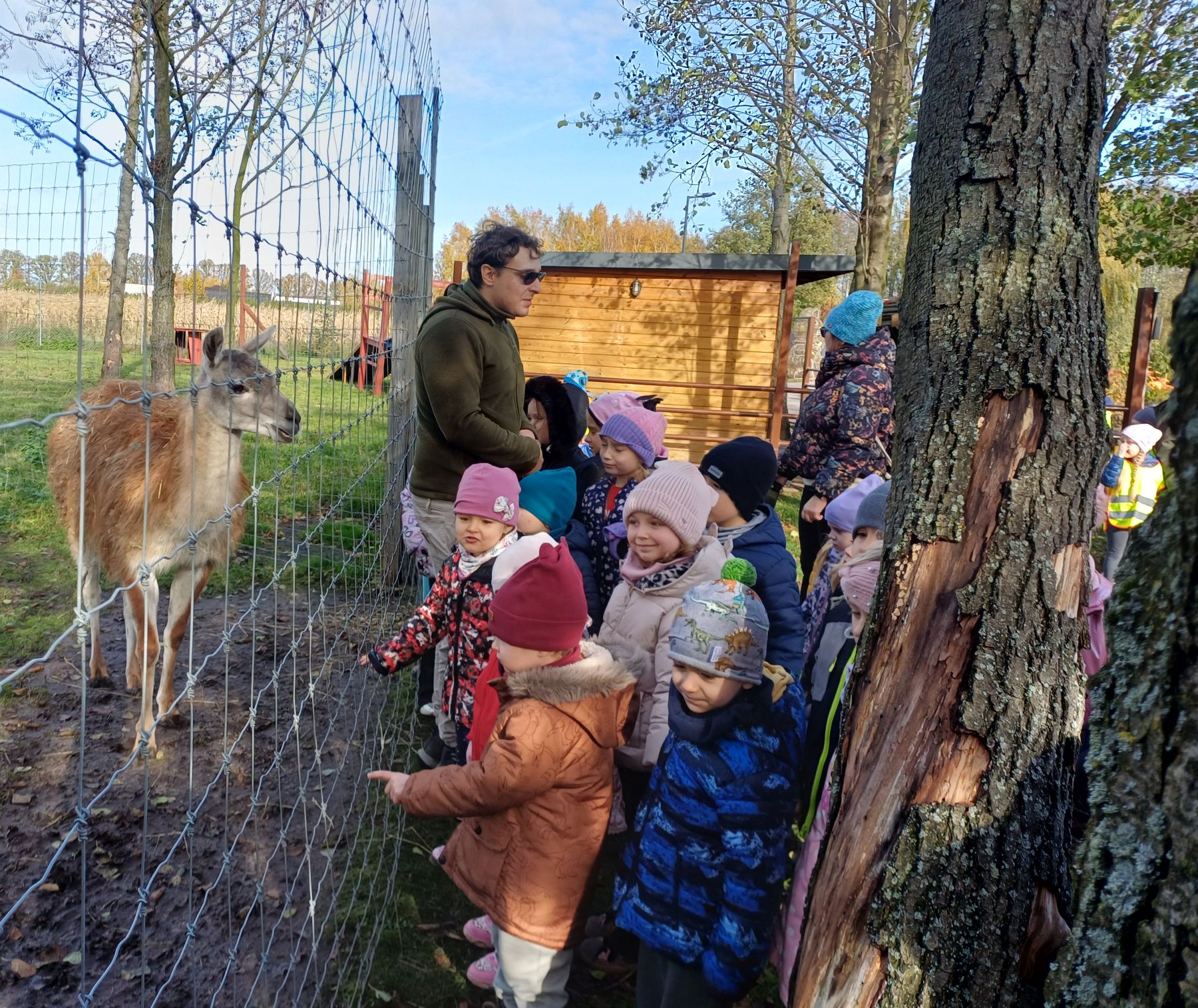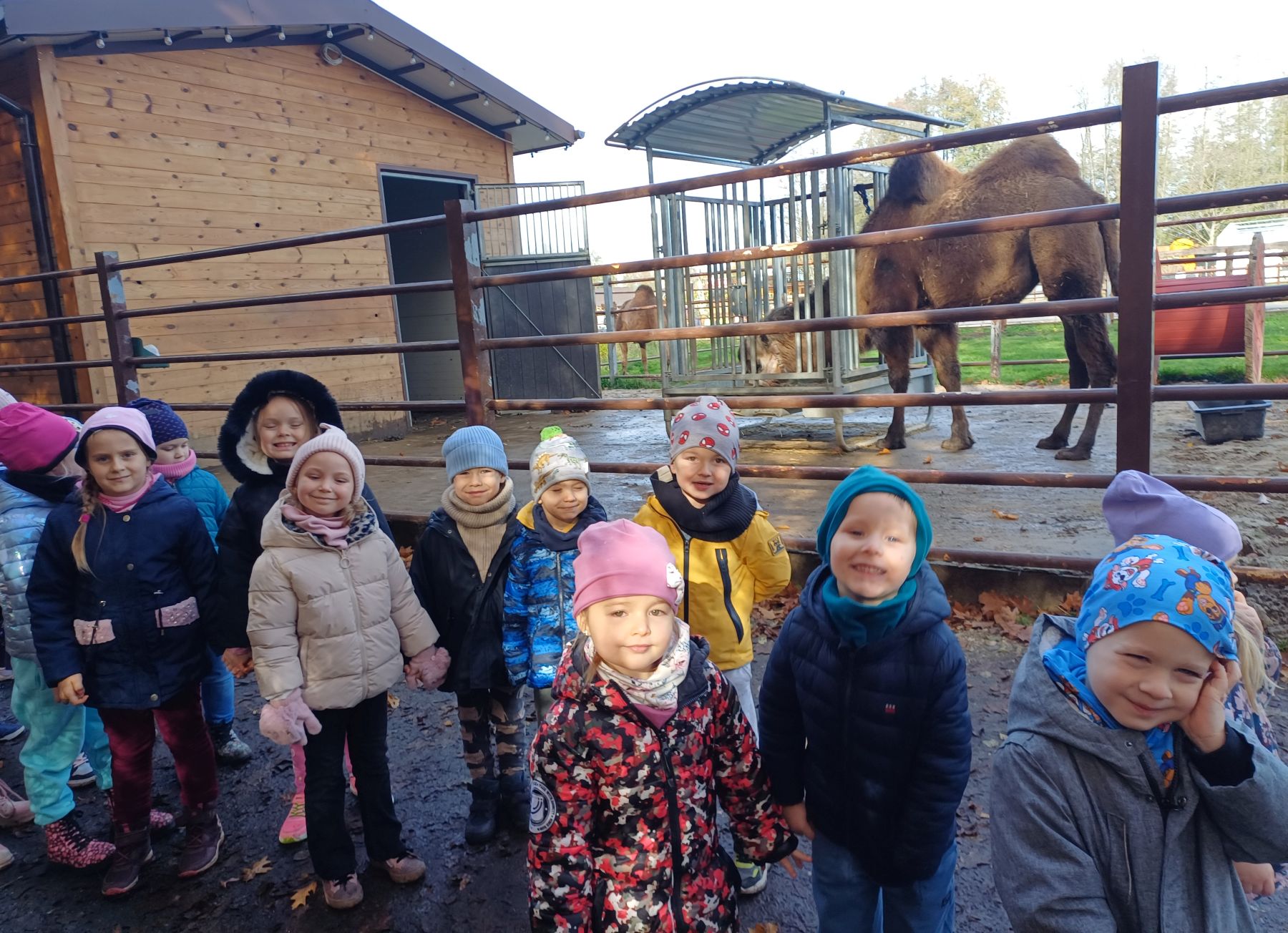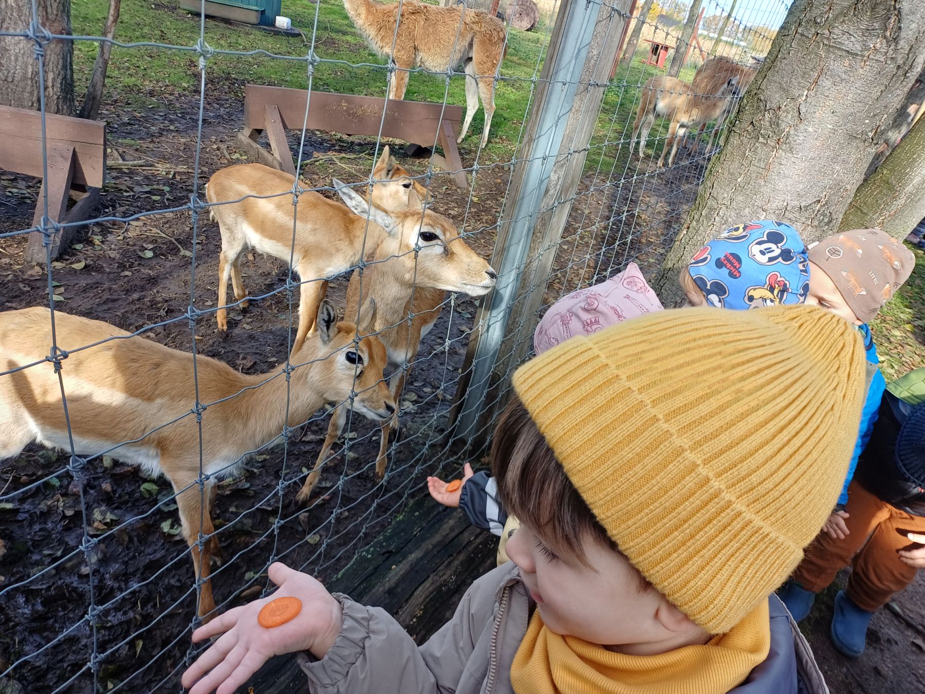 W dniu 29 października 2025 r. dzieci wybrały się na wycieczkę do Mini Zoo Dobronianka w Dobroniu. Celem wycieczki były: obserwacja i czerpanie pozytywnych wrażeń w kontakcie z przyrodą, zainteresowanie różnorodnością gatunków świata zwierząt oraz kształtowanie świadomości ekologicznej. Przedszkolaki miały możliwość poznać różne zwierzęta np. alpaki, kozy, konie, wielbłądy, osły, mary, króliki, pawie i wiele innych, a także karmić niektóre z nich marchewkami oraz wysłuchać ciekawostek na ich temat od przewodników. Po zwiedzaniu zoo udaliśmy się na smaczny posiłek. Pobyt w zoo dostarczył najmłodszym wiele radości oraz był wspaniałą lekcją przyrody przeżytą w ciekawym i atrakcyjnym miejscu. Ach... cóż to był za dzień!