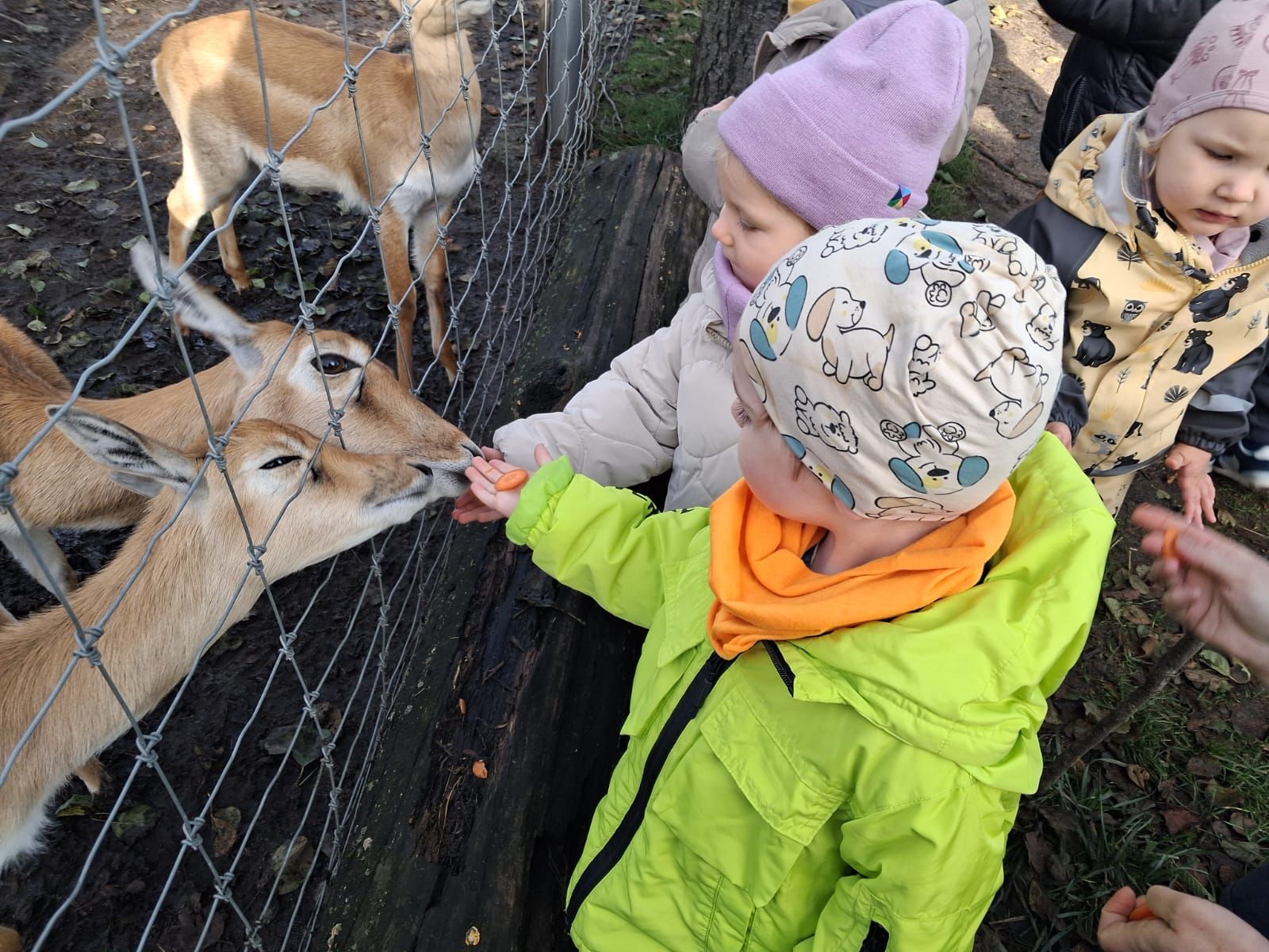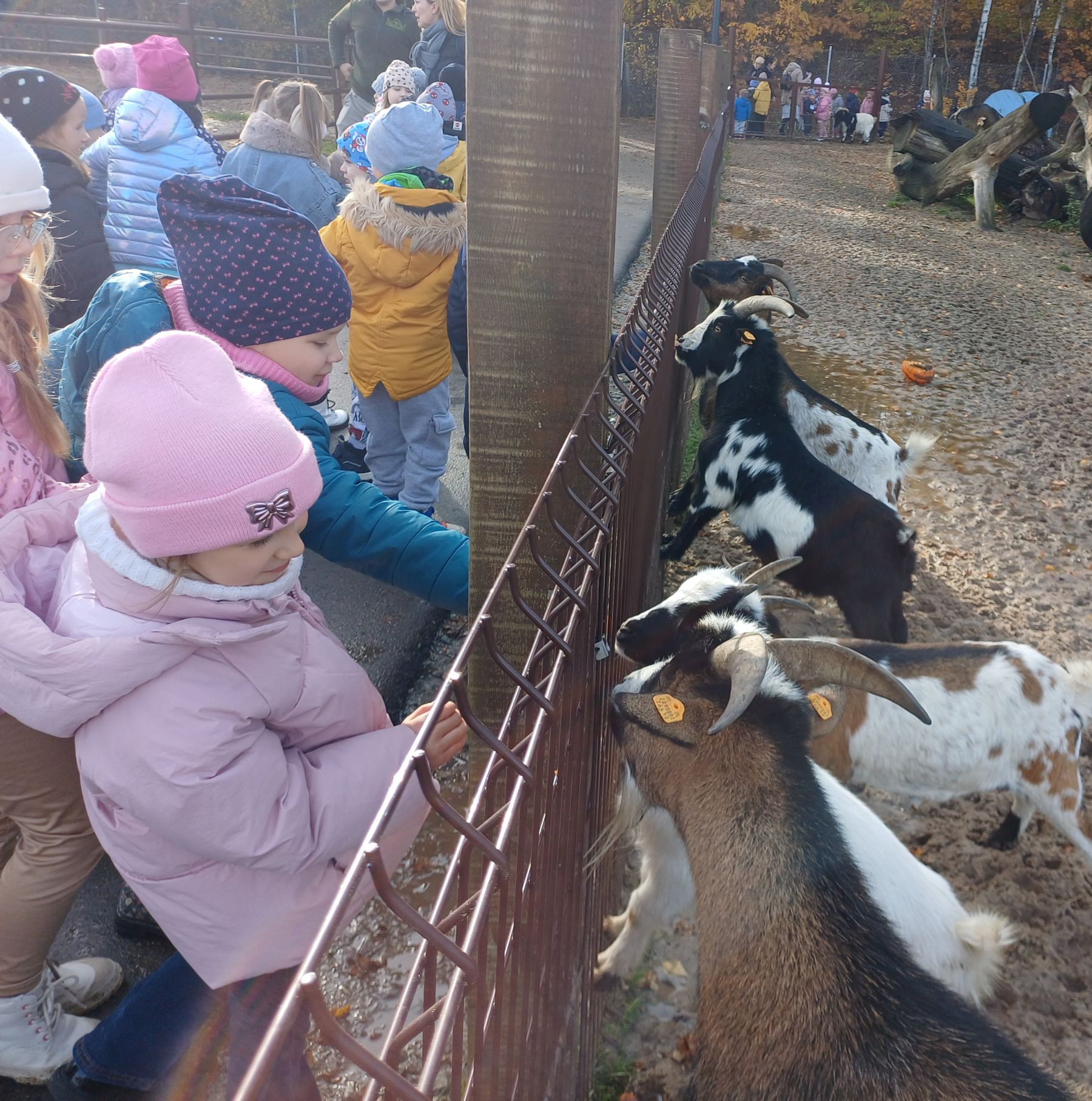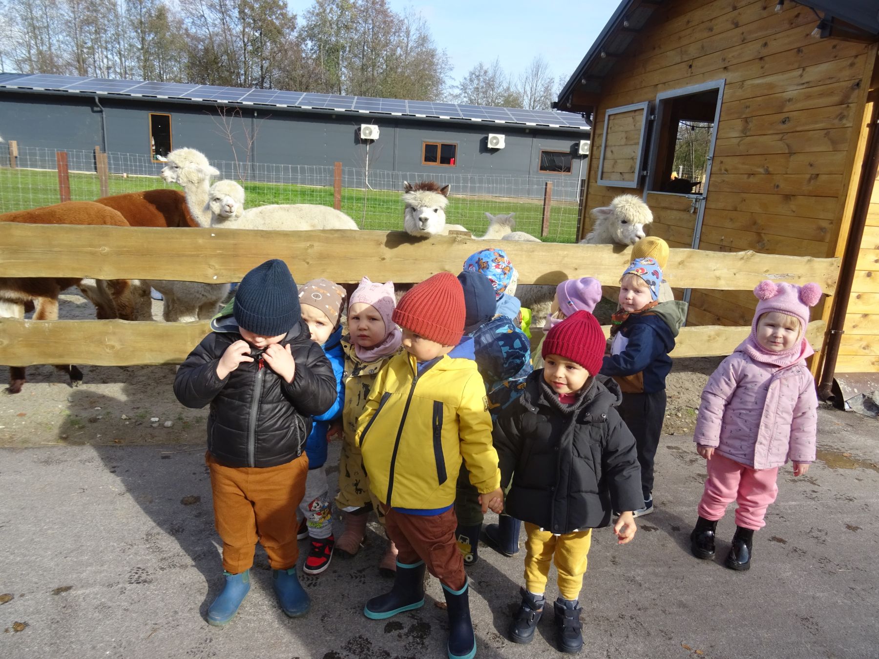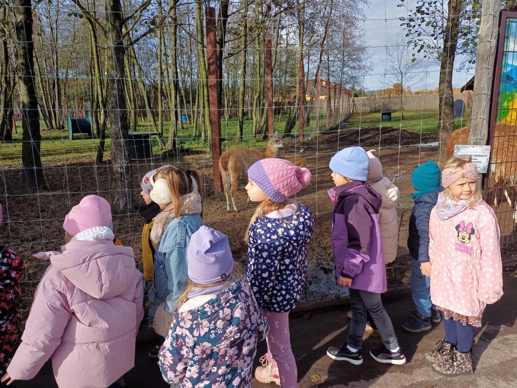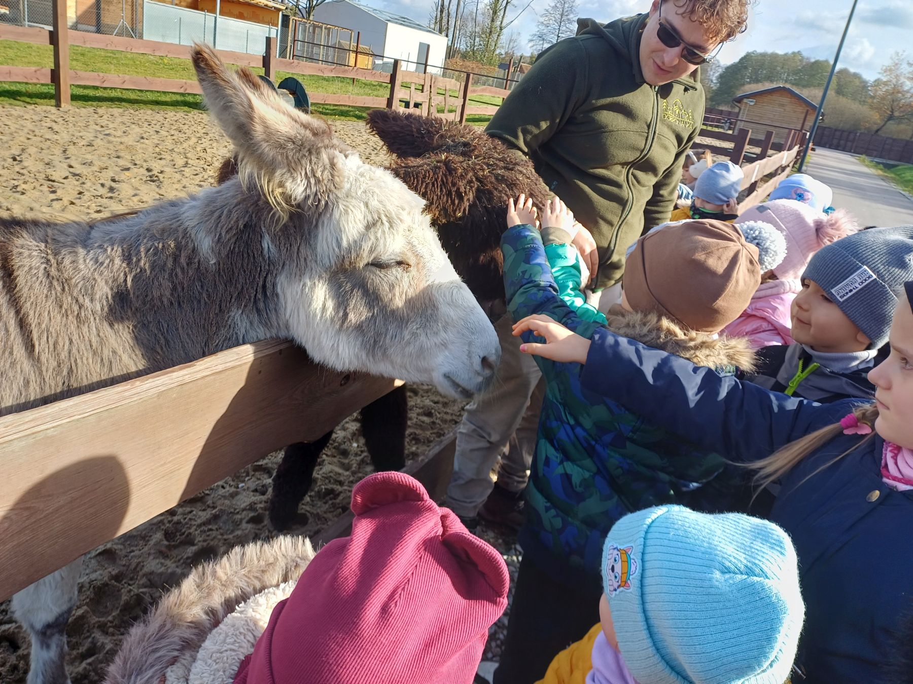 W dniu 29 października 2025 r. dzieci wybrały się na wycieczkę do Mini Zoo Dobronianka w Dobroniu. Celem wycieczki były: obserwacja i czerpanie pozytywnych wrażeń w kontakcie z przyrodą, zainteresowanie różnorodnością gatunków świata zwierząt oraz kształtowanie świadomości ekologicznej. Przedszkolaki miały możliwość poznać różne zwierzęta np. alpaki, kozy, konie, wielbłądy, osły, mary, króliki, pawie i wiele innych, a także karmić niektóre z nich marchewkami oraz wysłuchać ciekawostek na ich temat od przewodników. Po zwiedzaniu zoo udaliśmy się na smaczny posiłek. Pobyt w zoo dostarczył najmłodszym wiele radości oraz był wspaniałą lekcją przyrody przeżytą w ciekawym i atrakcyjnym miejscu. Ach... cóż to był za dzień!