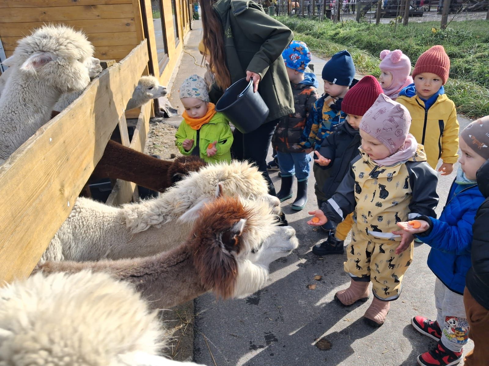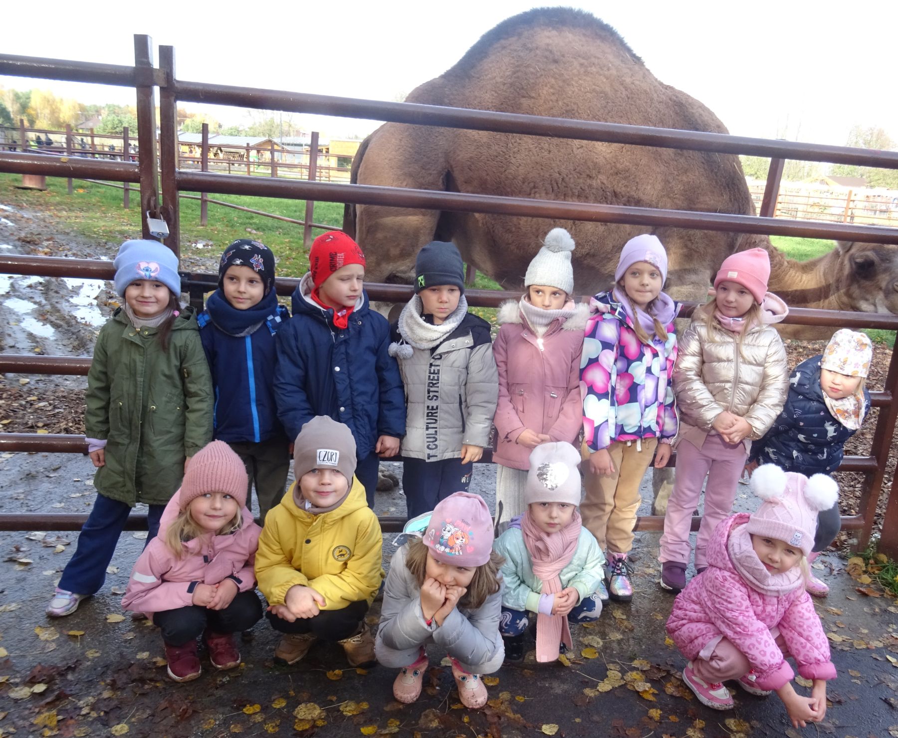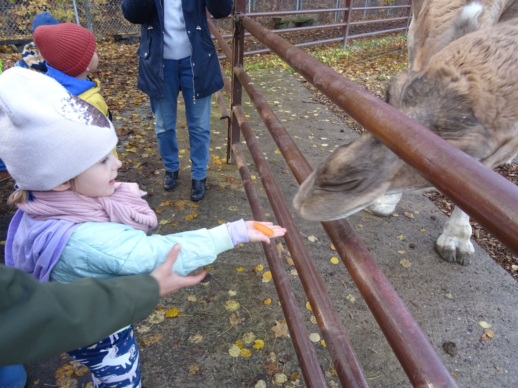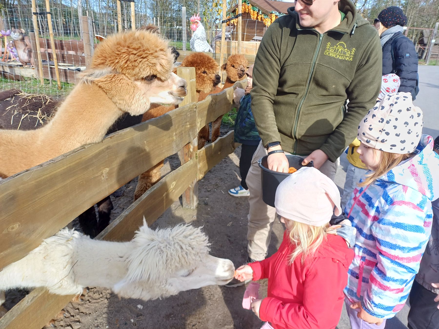 W dniu 29 października 2025 r. dzieci wybrały się na wycieczkę do Mini Zoo Dobronianka w Dobroniu. Celem wycieczki były: obserwacja i czerpanie pozytywnych wrażeń w kontakcie z przyrodą, zainteresowanie różnorodnością gatunków świata zwierząt oraz kształtowanie świadomości ekologicznej. Przedszkolaki miały możliwość poznać różne zwierzęta np. alpaki, kozy, konie, wielbłądy, osły, mary, króliki, pawie i wiele innych, a także karmić niektóre z nich marchewkami oraz wysłuchać ciekawostek na ich temat od przewodników. Po zwiedzaniu zoo udaliśmy się na smaczny posiłek. Pobyt w zoo dostarczył najmłodszym wiele radości oraz był wspaniałą lekcją przyrody przeżytą w ciekawym i atrakcyjnym miejscu. Ach... cóż to był za dzień!
