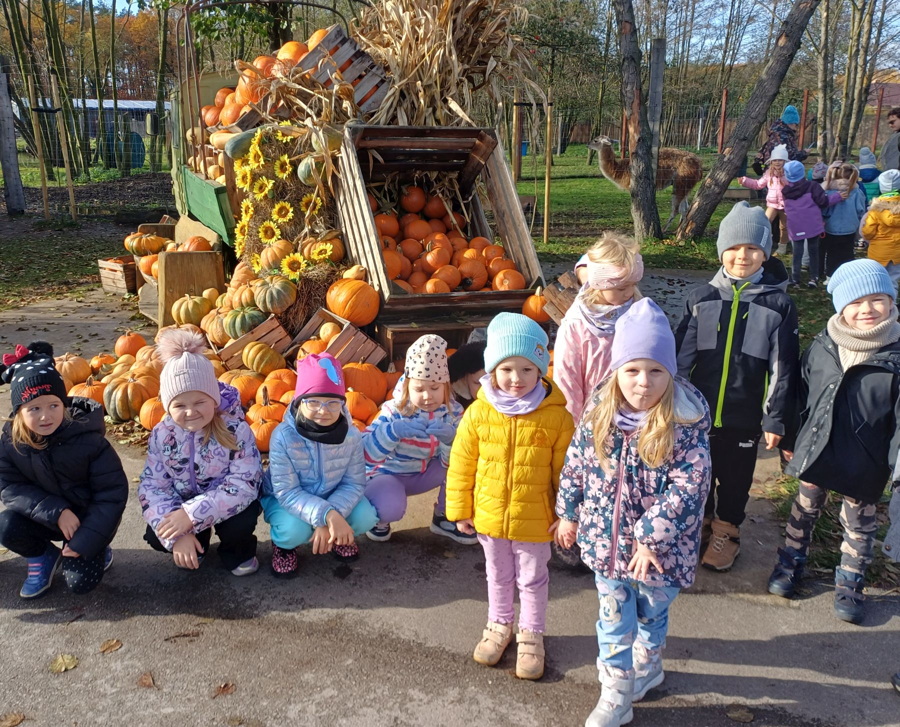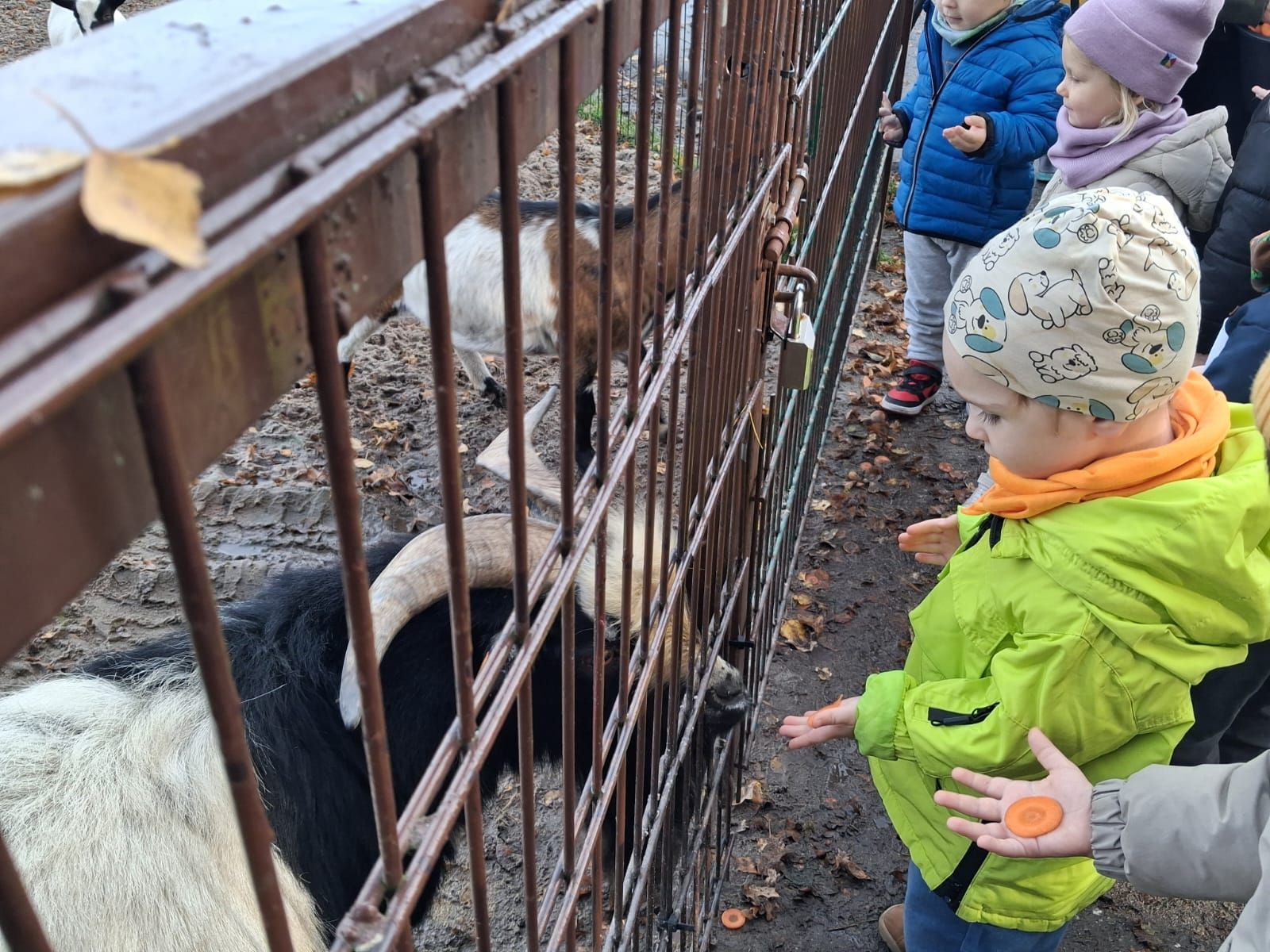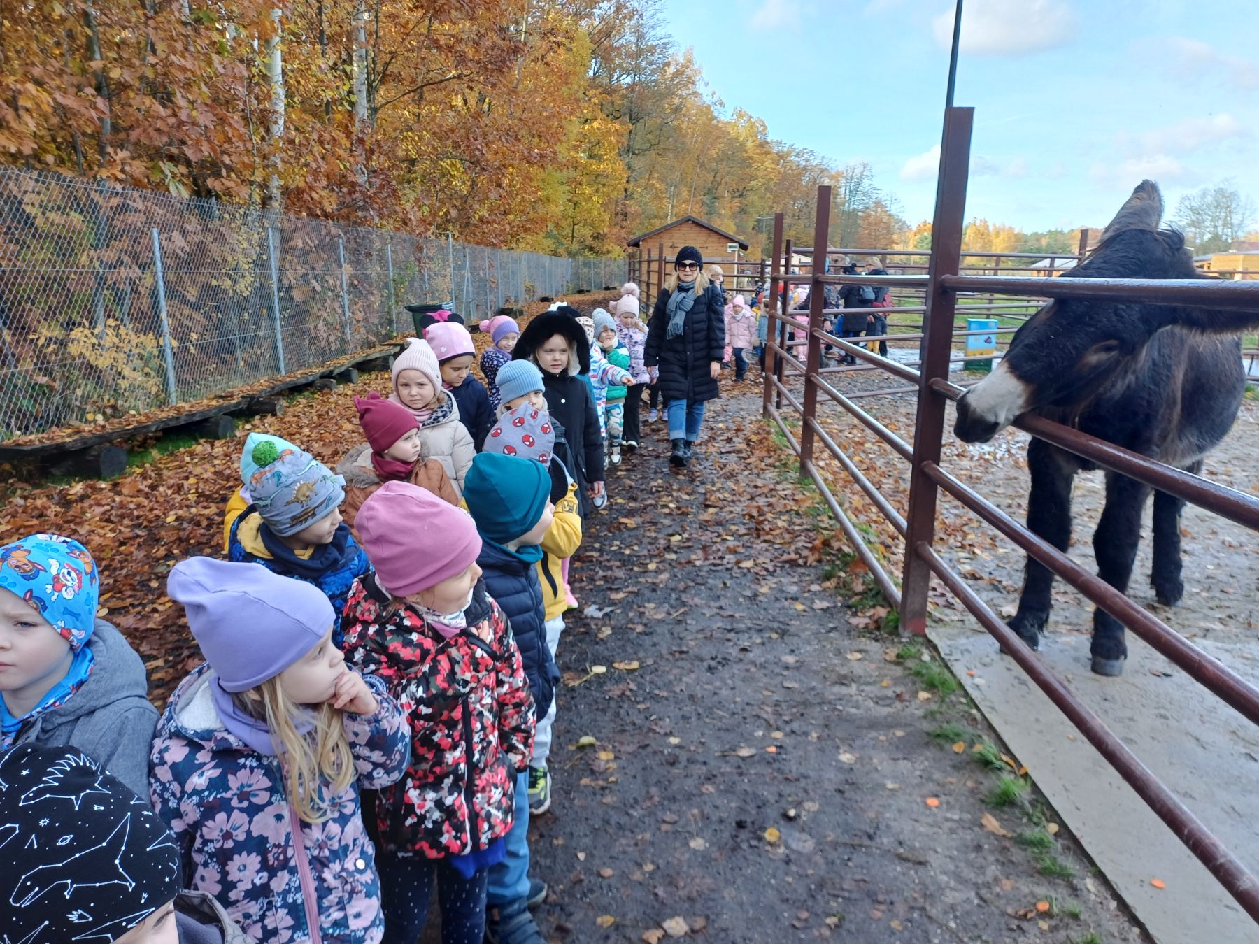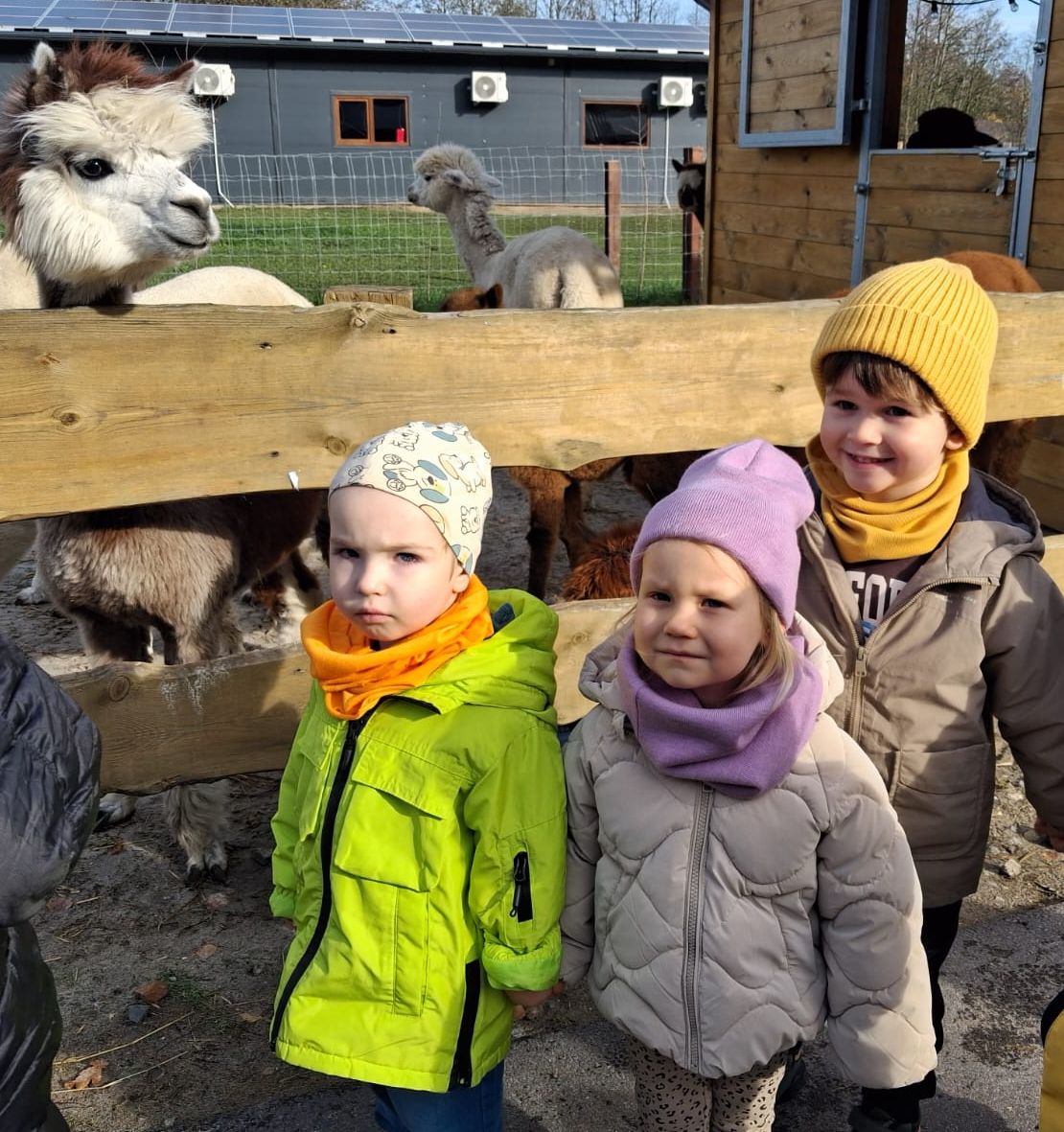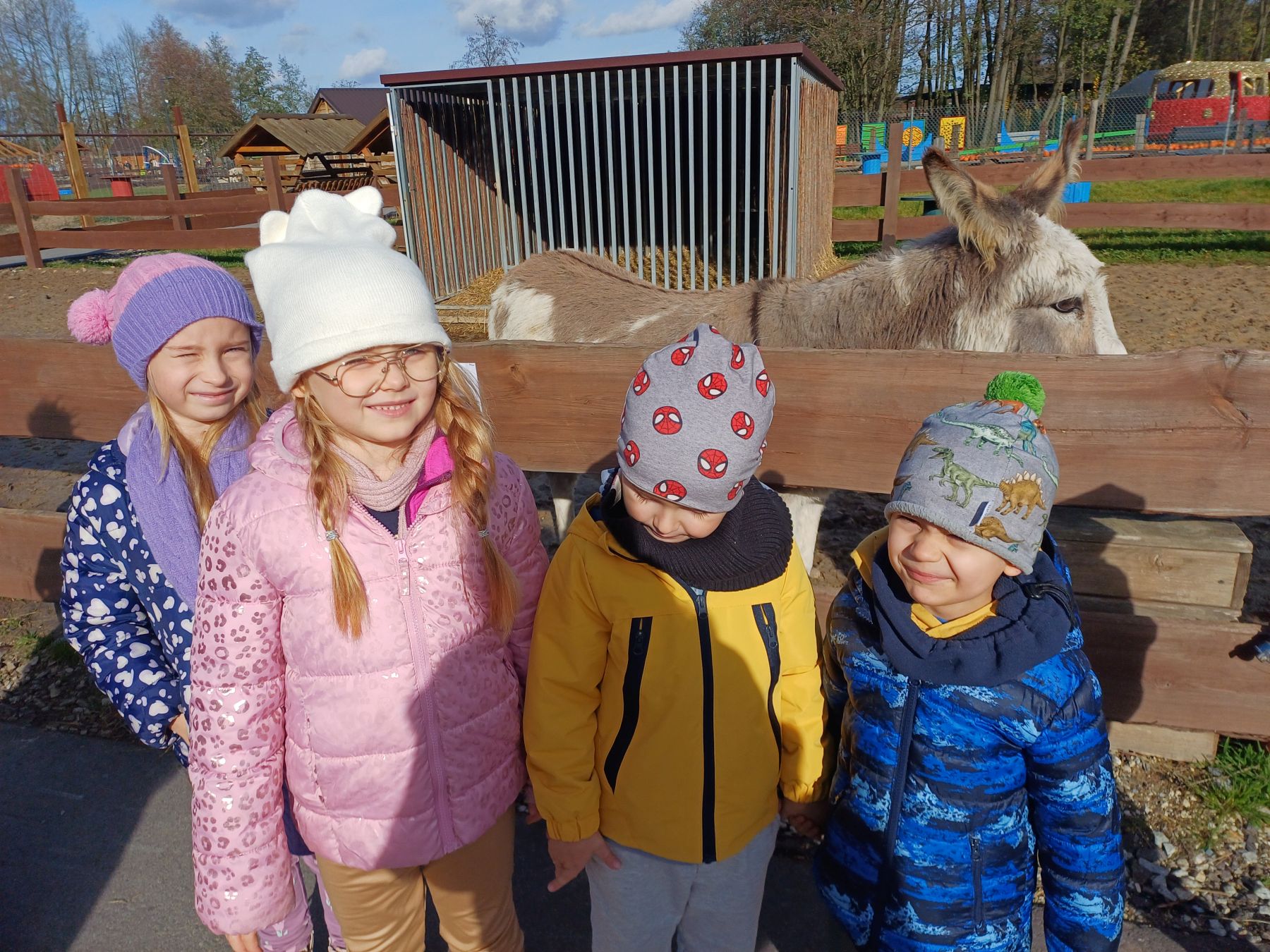 W dniu 29 października 2025 r. dzieci wybrały się na wycieczkę do Mini Zoo Dobronianka w Dobroniu. Celem wycieczki były: obserwacja i czerpanie pozytywnych wrażeń w kontakcie z przyrodą, zainteresowanie różnorodnością gatunków świata zwierząt oraz kształtowanie świadomości ekologicznej. Przedszkolaki miały możliwość poznać różne zwierzęta np. alpaki, kozy, konie, wielbłądy, osły, mary, króliki, pawie i wiele innych, a także karmić niektóre z nich marchewkami oraz wysłuchać ciekawostek na ich temat od przewodników. Po zwiedzaniu zoo udaliśmy się na smaczny posiłek. Pobyt w zoo dostarczył najmłodszym wiele radości oraz był wspaniałą lekcją przyrody przeżytą w ciekawym i atrakcyjnym miejscu. Ach... cóż to był za dzień!
