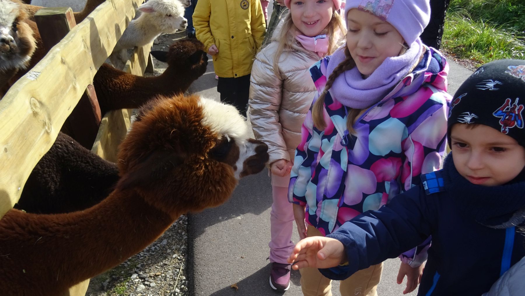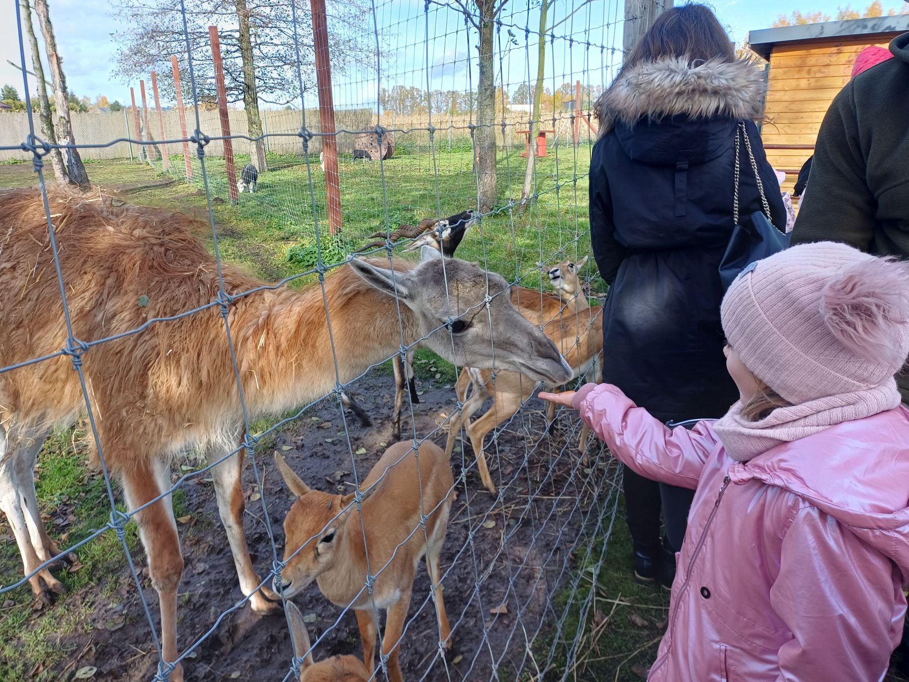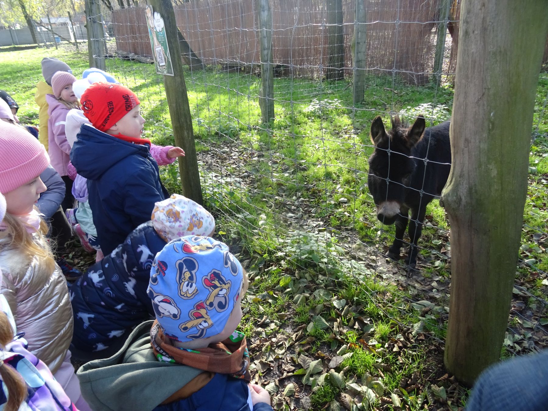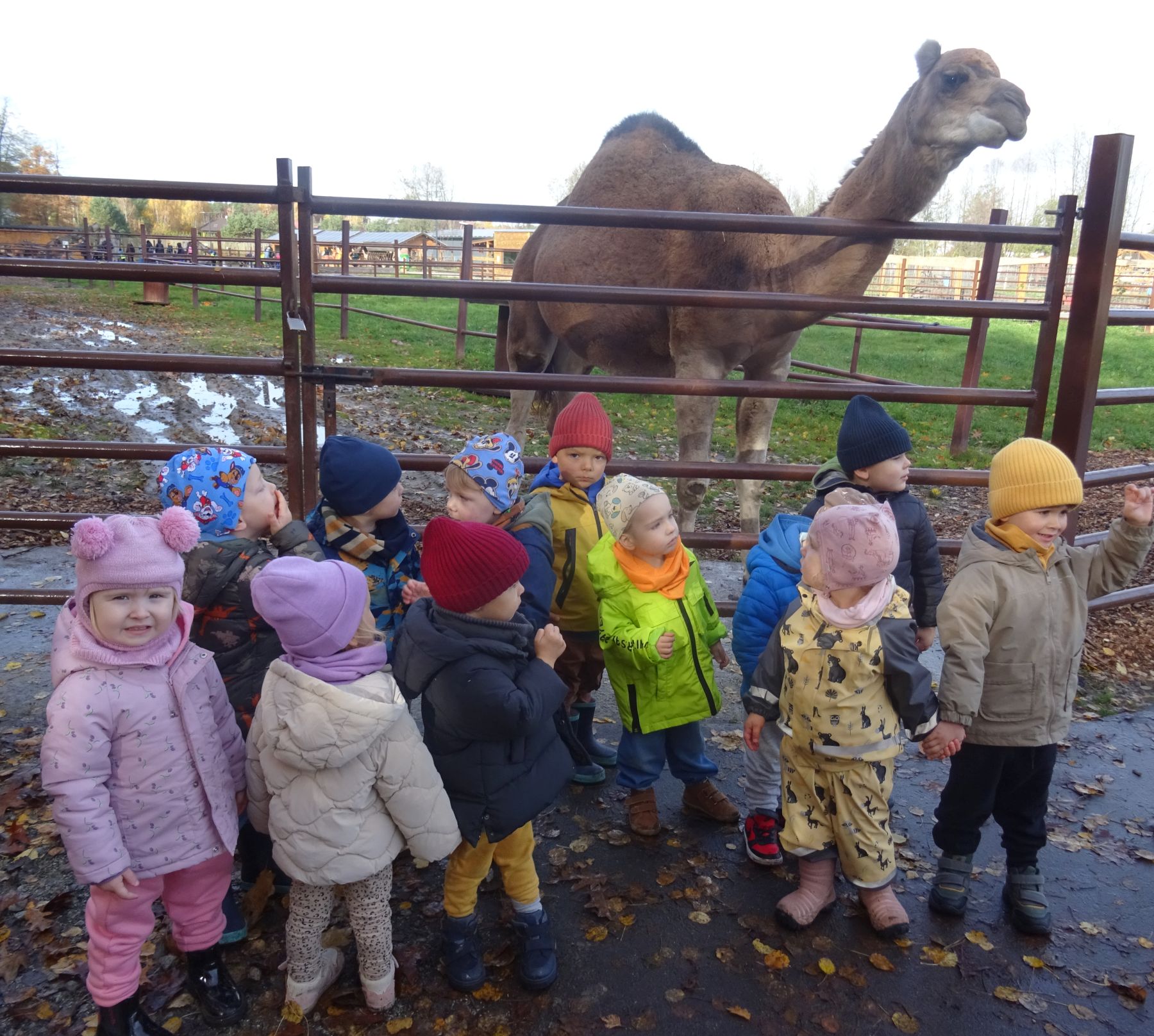W dniu 29 października 2025 r. dzieci wybrały się na wycieczkę do Mini Zoo Dobronianka w Dobroniu. Celem wycieczki były: obserwacja i czerpanie pozytywnych wrażeń w kontakcie z przyrodą, zainteresowanie różnorodnością gatunków świata zwierząt oraz kształtowanie świadomości ekologicznej. Przedszkolaki miały możliwość poznać różne zwierzęta np. alpaki, kozy, konie, wielbłądy, osły, mary, króliki, pawie i wiele innych, a także karmić niektóre z nich marchewkami oraz wysłuchać ciekawostek na ich temat od przewodników. Po zwiedzaniu zoo udaliśmy się na smaczny posiłek. Pobyt w zoo dostarczył najmłodszym wiele radości oraz był wspaniałą lekcją przyrody przeżytą w ciekawym i atrakcyjnym miejscu. Ach... cóż to był za dzień!