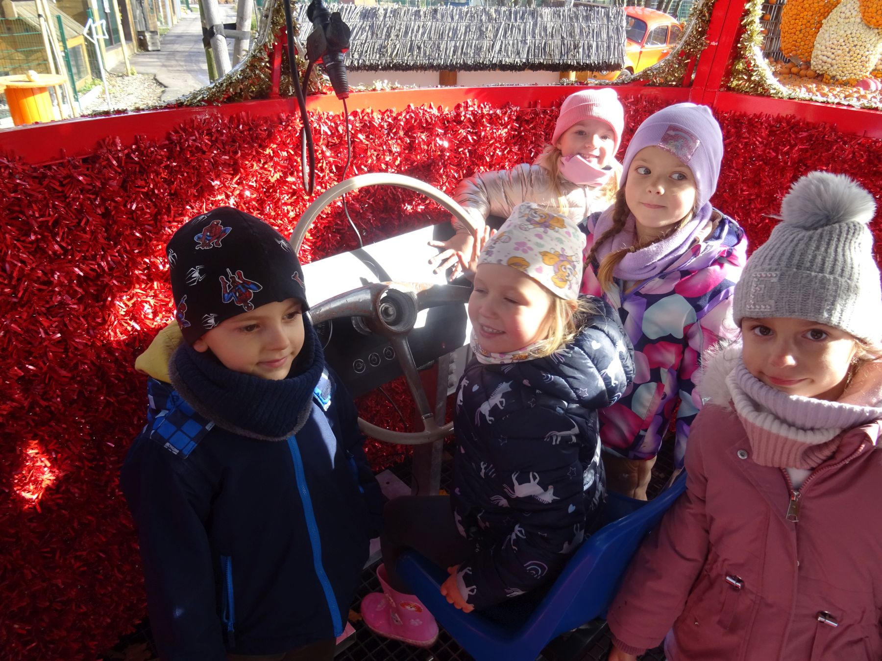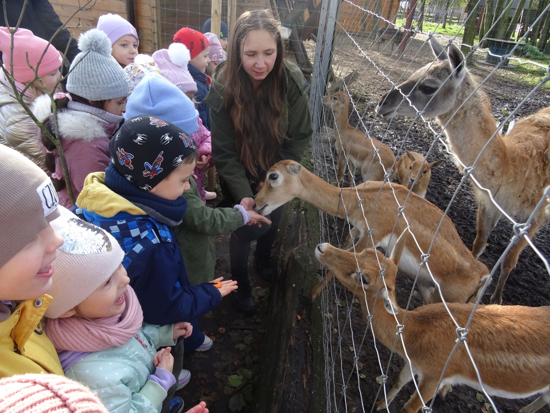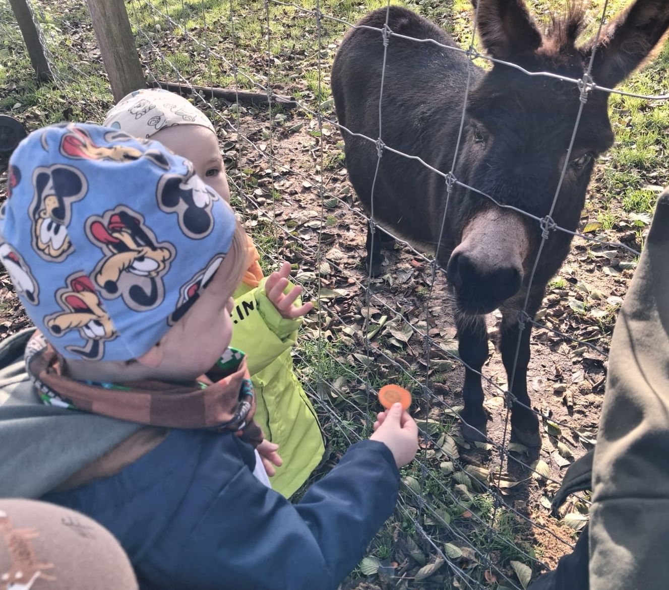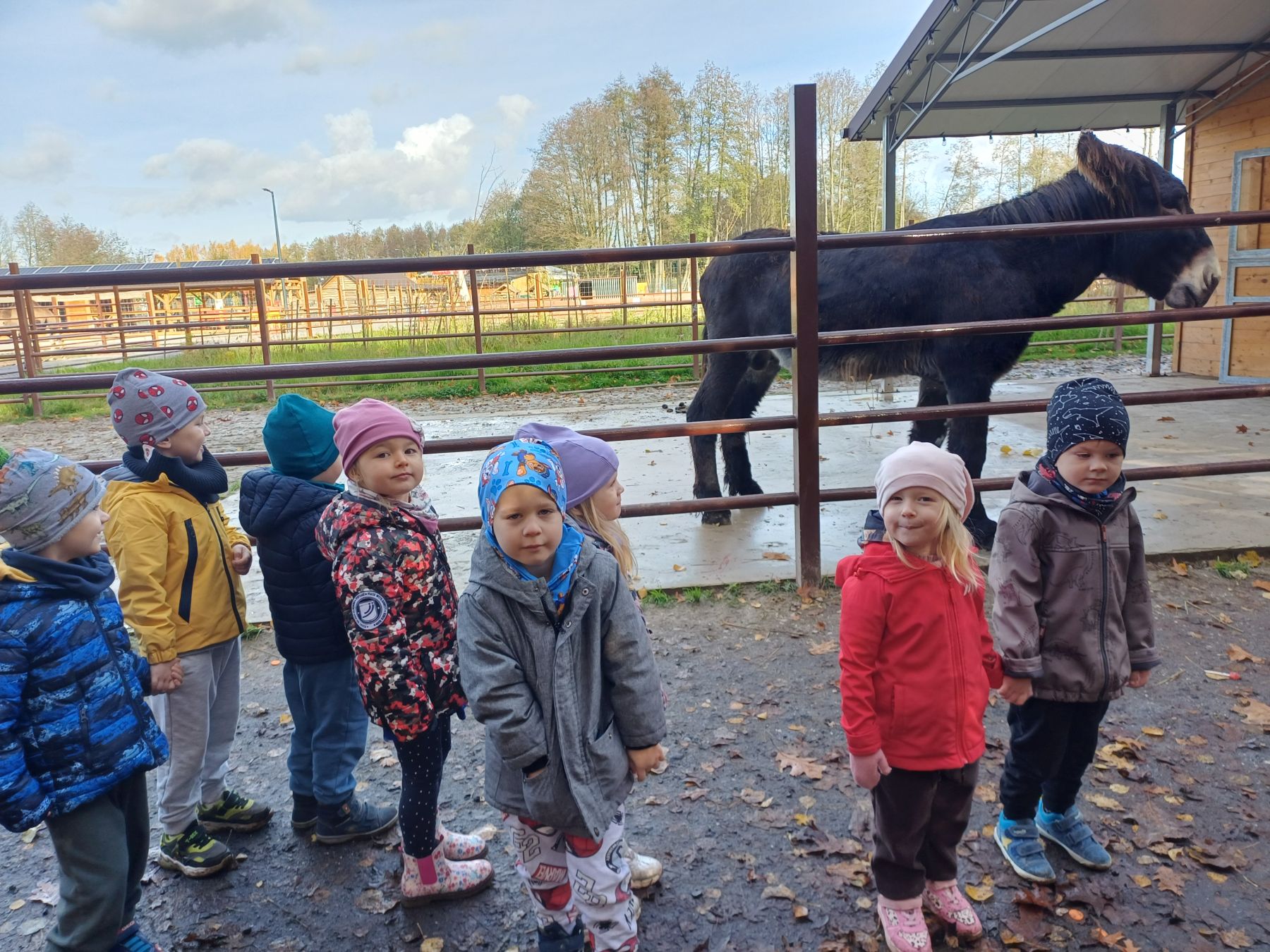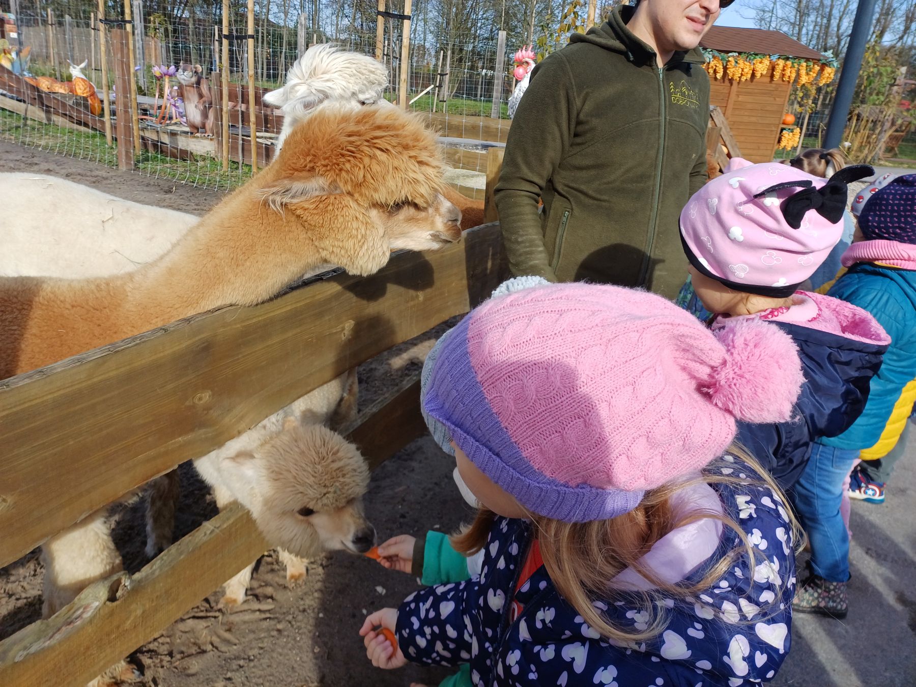 W dniu 29 października 2025 r. dzieci wybrały się na wycieczkę do Mini Zoo Dobronianka w Dobroniu. Celem wycieczki były: obserwacja i czerpanie pozytywnych wrażeń w kontakcie z przyrodą, zainteresowanie różnorodnością gatunków świata zwierząt oraz kształtowanie świadomości ekologicznej. Przedszkolaki miały możliwość poznać różne zwierzęta np. alpaki, kozy, konie, wielbłądy, osły, mary, króliki, pawie i wiele innych, a także karmić niektóre z nich marchewkami oraz wysłuchać ciekawostek na ich temat od przewodników. Po zwiedzaniu zoo udaliśmy się na smaczny posiłek. Pobyt w zoo dostarczył najmłodszym wiele radości oraz był wspaniałą lekcją przyrody przeżytą w ciekawym i atrakcyjnym miejscu. Ach... cóż to był za dzień!